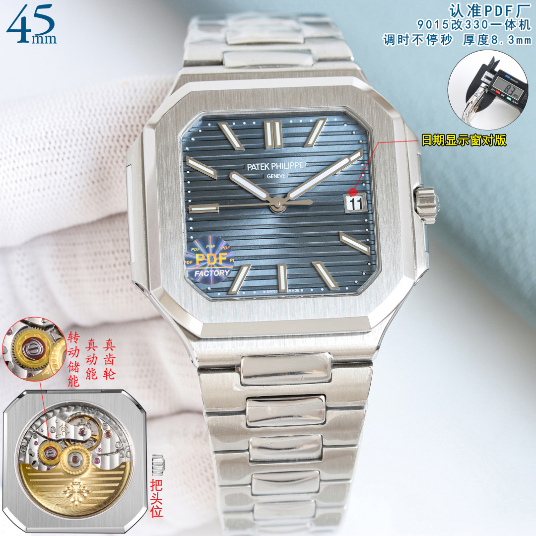 這款手錶是AAAAA 1:1 質量(非常棒). 使用了和原版一模一樣的材料. 商標部分也保持了和百達翡麗/Patek Philippe一樣. 圖片拍攝是實物手錶拍攝, 您所收到的實物保證和我們圖片一模一樣.