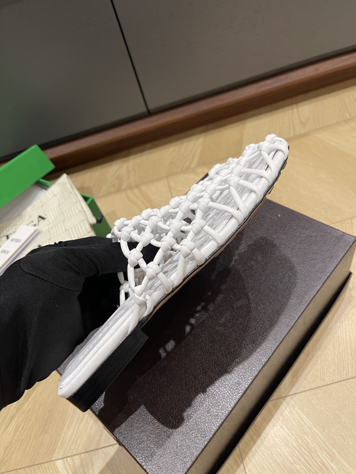 這款鞋子是AAAAA 1:1 質量(非常棒). 使用了和原版一模一樣的材料. 商標部分也保持了和葆蝶家/Bottega Veneta一樣. 圖片拍攝是實物鞋子拍攝, 您所收到的實物保證和我們圖片一模一樣.