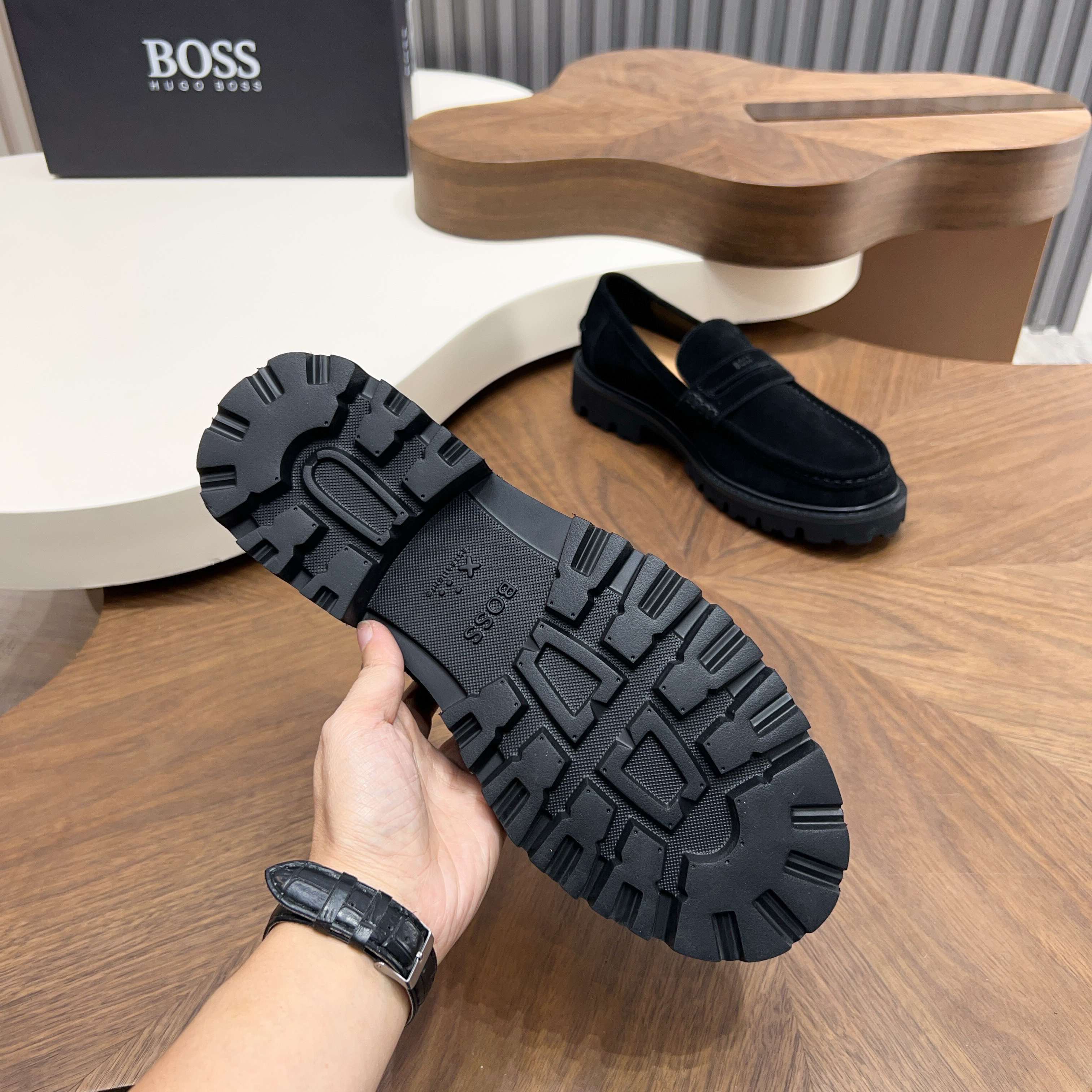 這款鞋子是AAAAA 1:1 質量(非常棒). 使用了和原版一模一樣的材料. 商標部分也保持了和BOSS一樣. 圖片拍攝是實物鞋子拍攝, 您所收到的實物保證和我們圖片一模一樣.