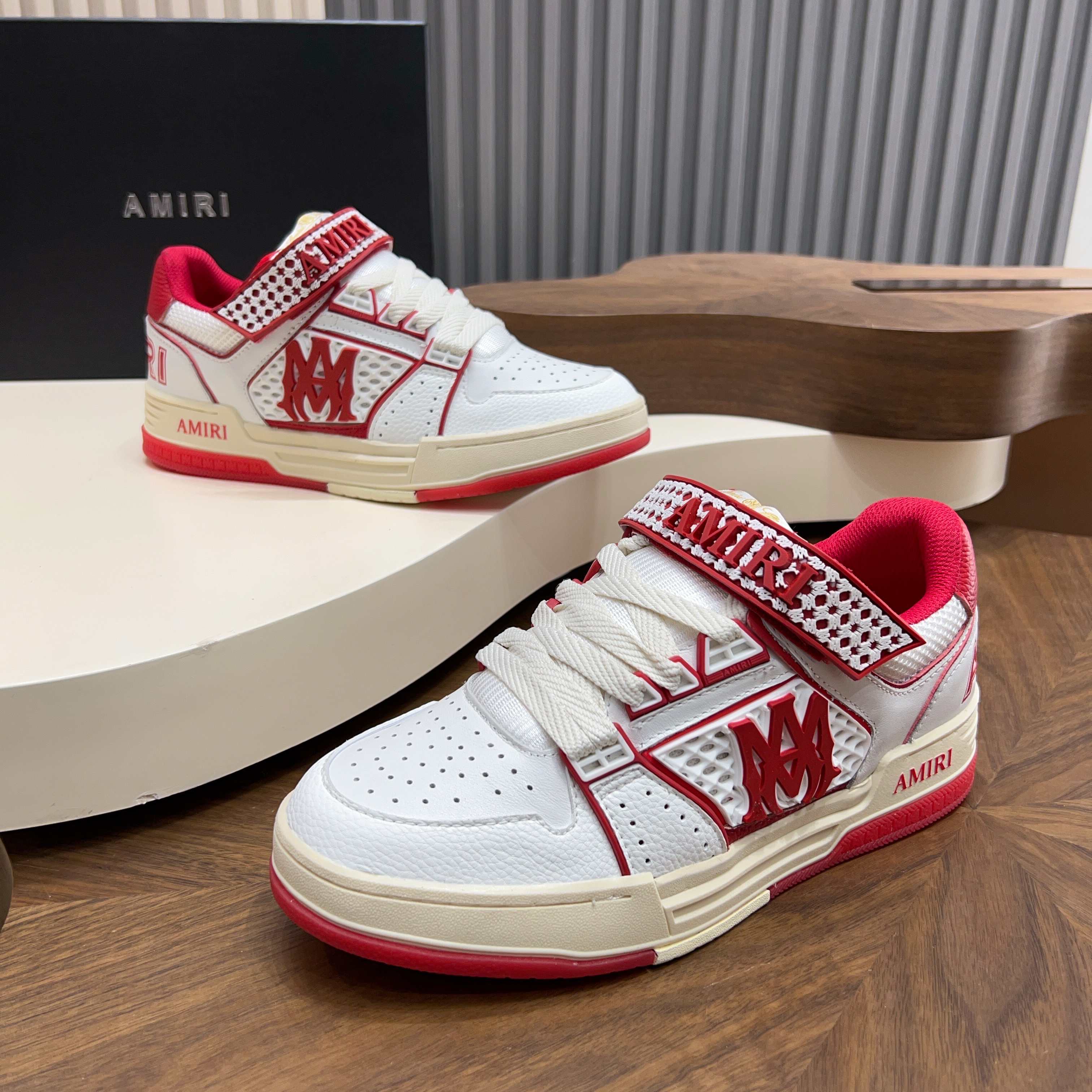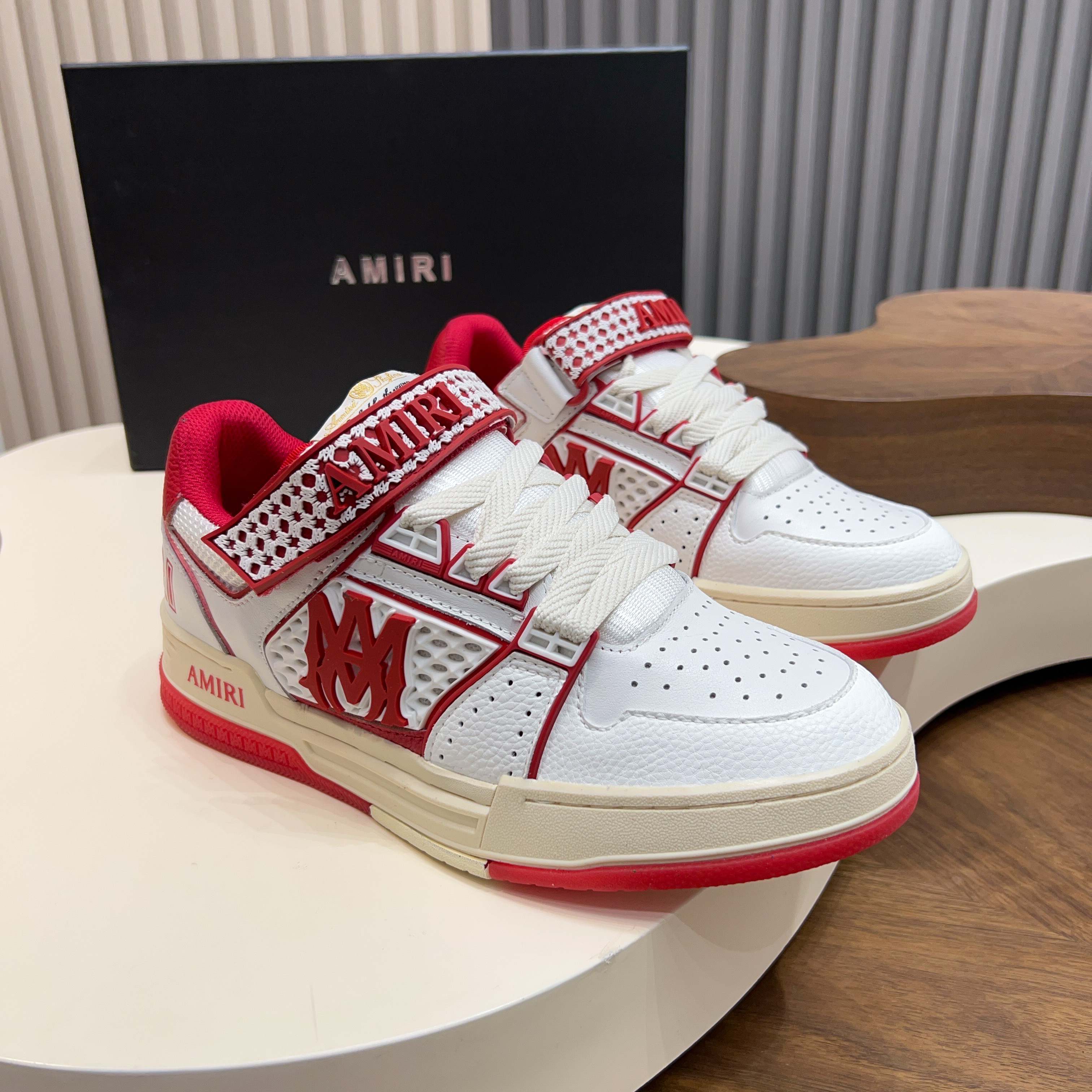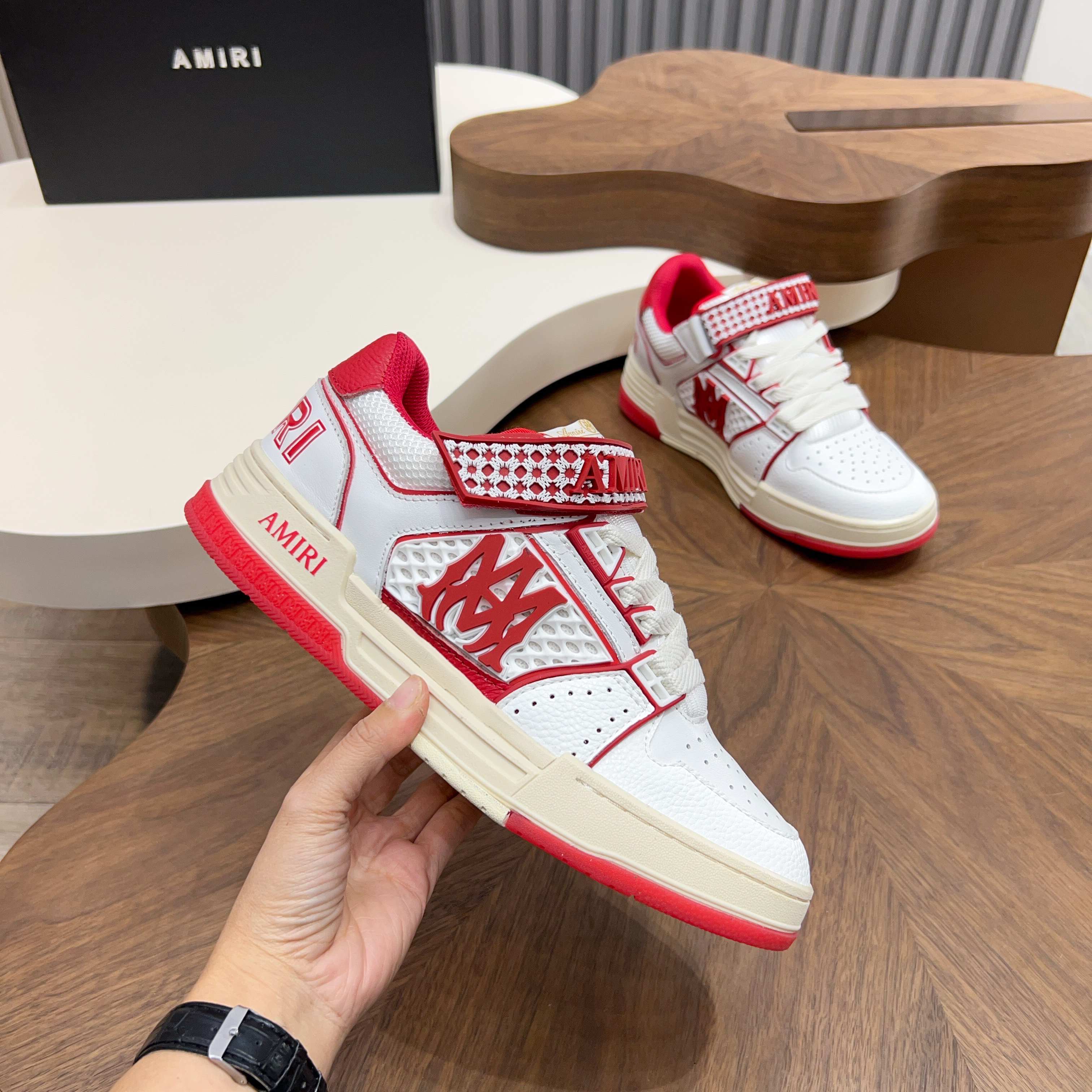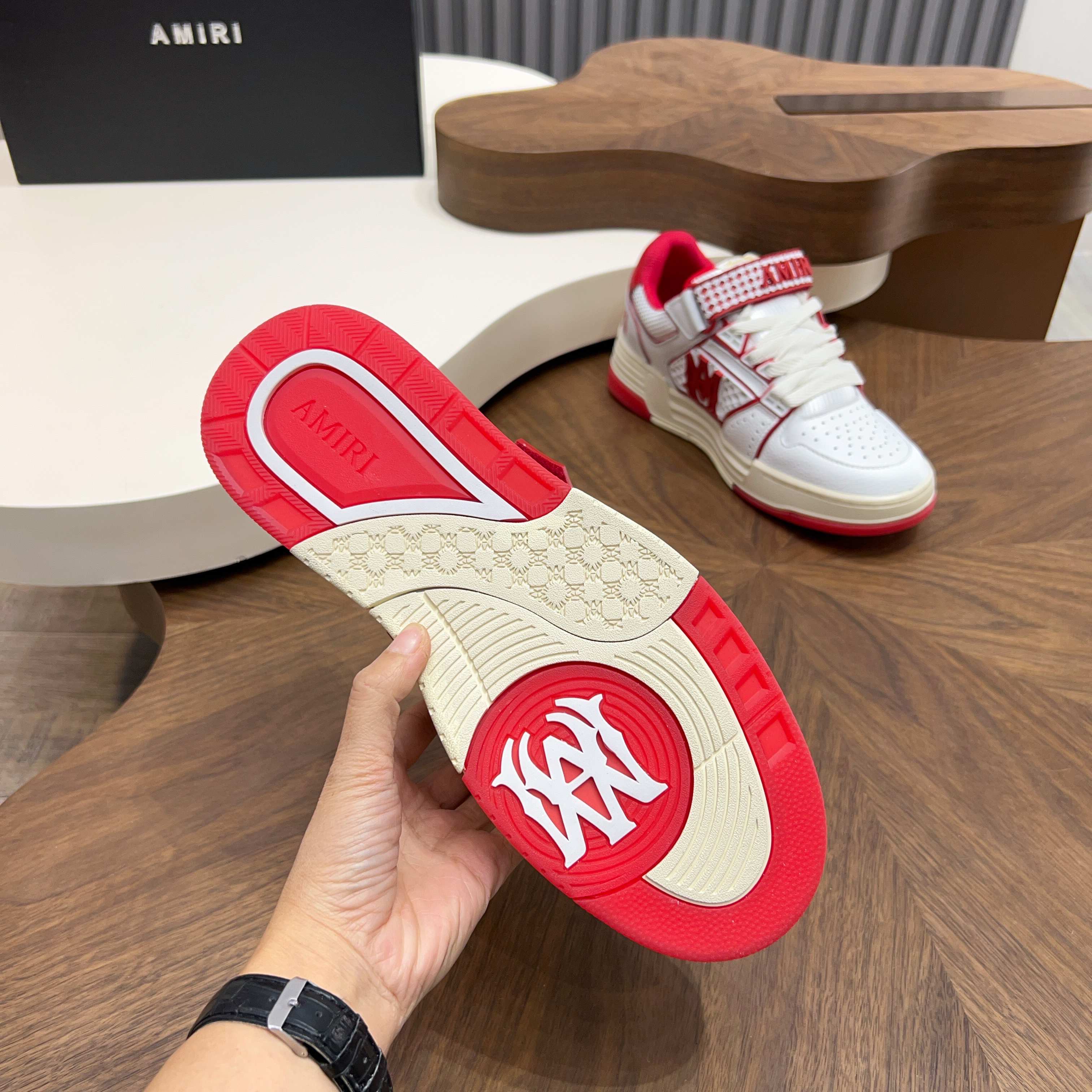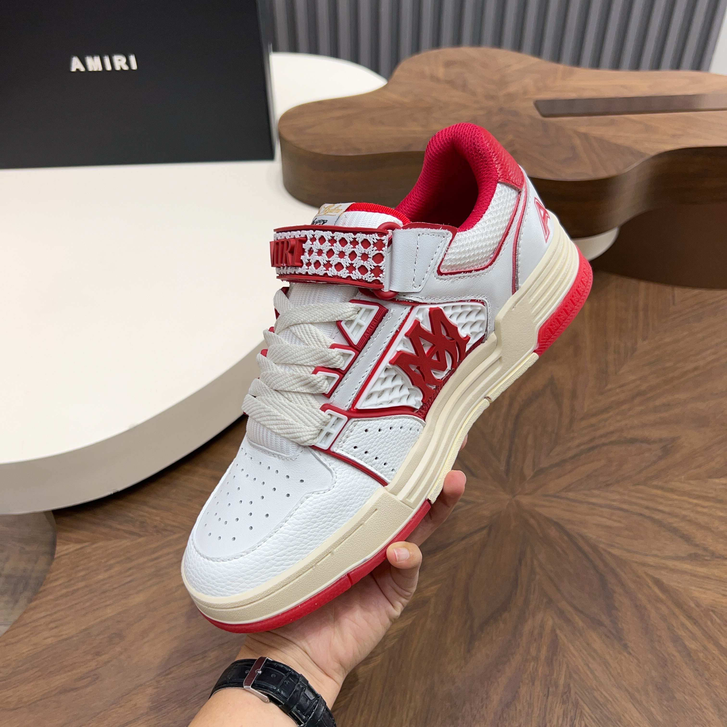 這款鞋子是AAAAA 1:1 質量(非常棒). 使用了和原版一模一樣的材料. 商標部分也保持了和AMIRI一樣. 圖片拍攝是實物鞋子拍攝, 您所收到的實物保證和我們圖片一模一樣.