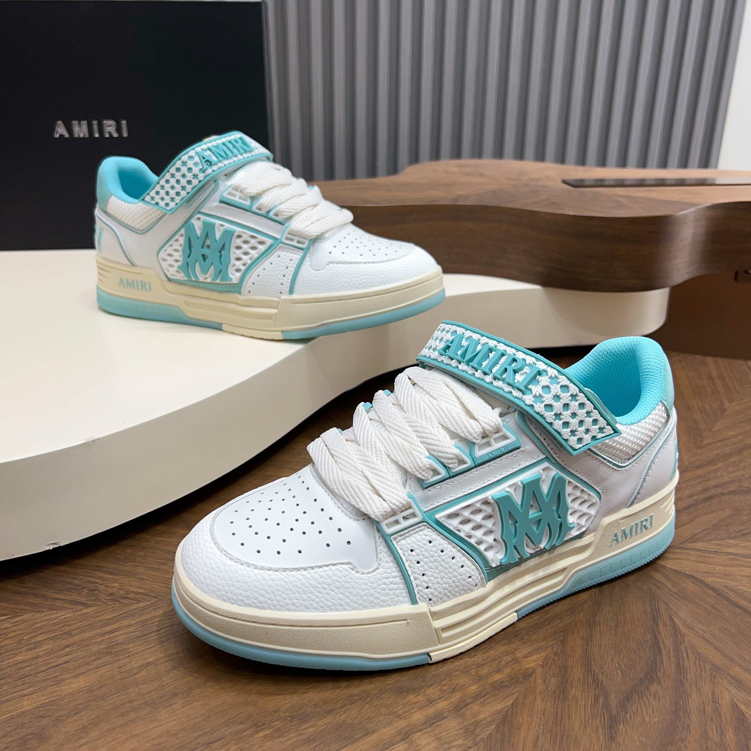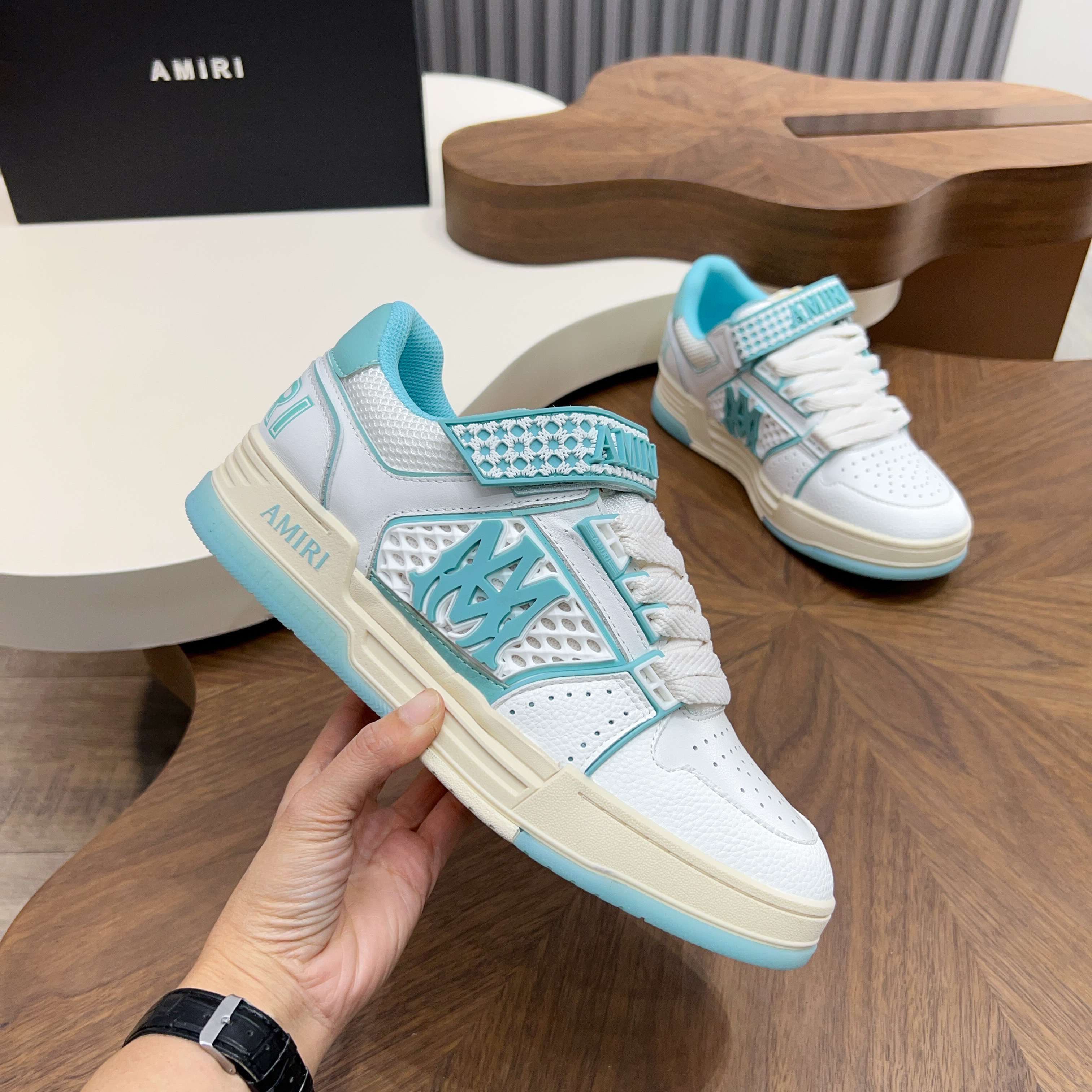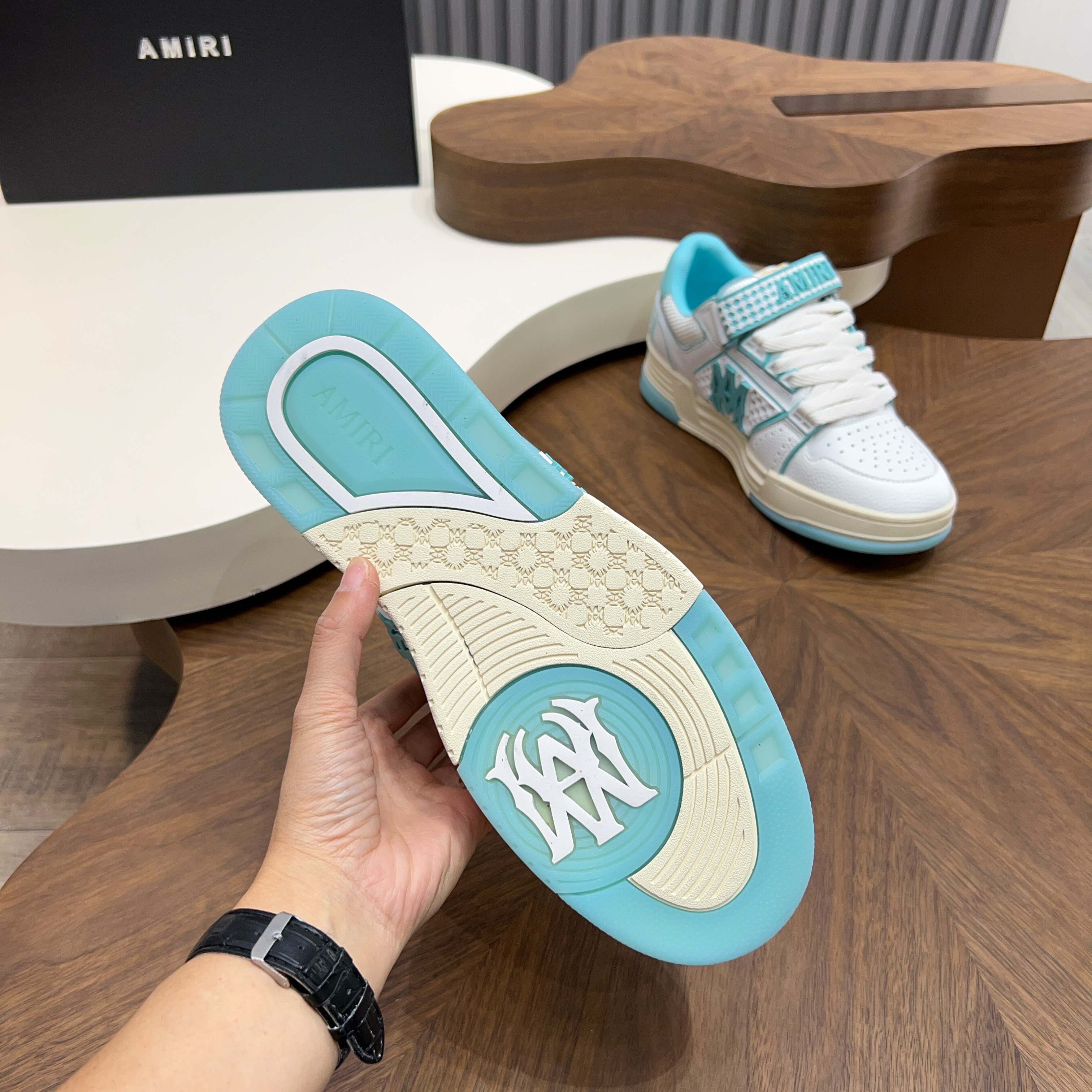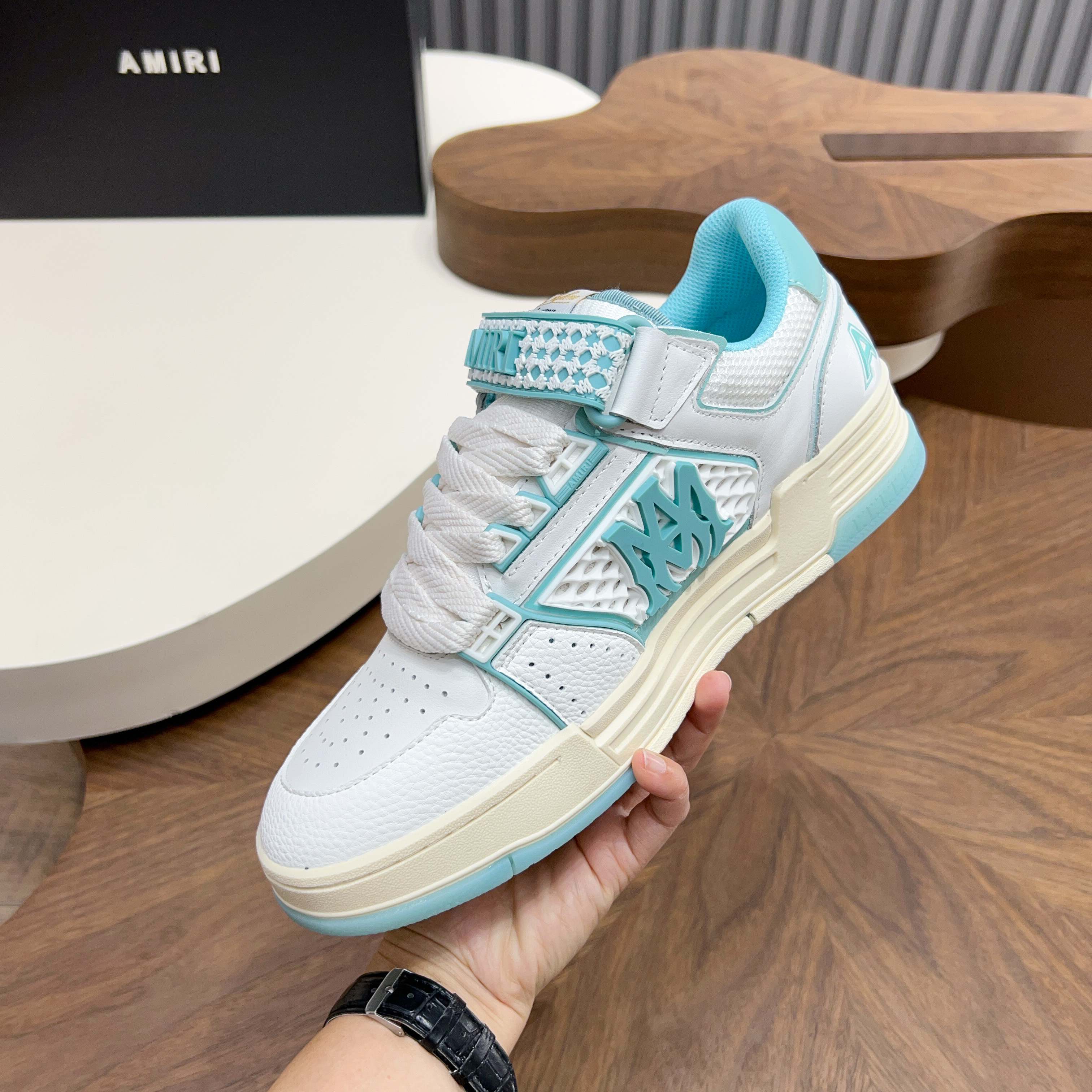 這款鞋子是AAAAA 1:1 質量(非常棒). 使用了和原版一模一樣的材料. 商標部分也保持了和AMIRI一樣. 圖片拍攝是實物鞋子拍攝, 您所收到的實物保證和我們圖片一模一樣.