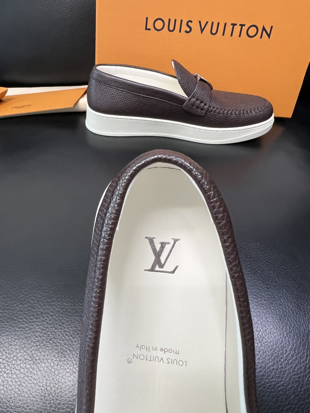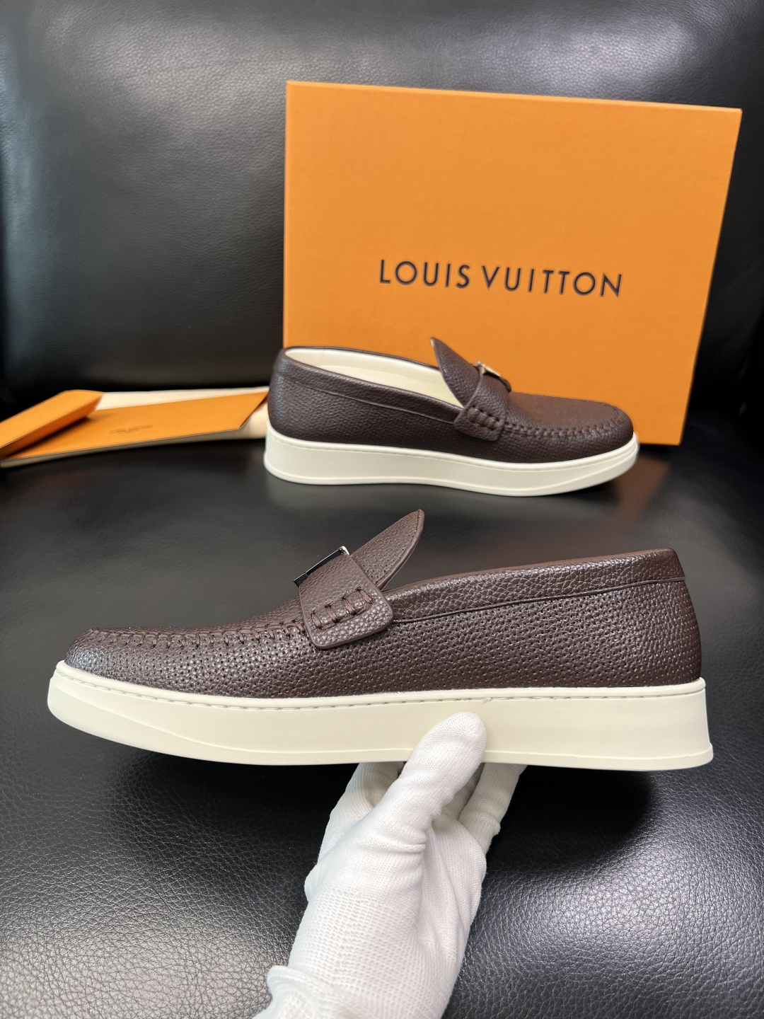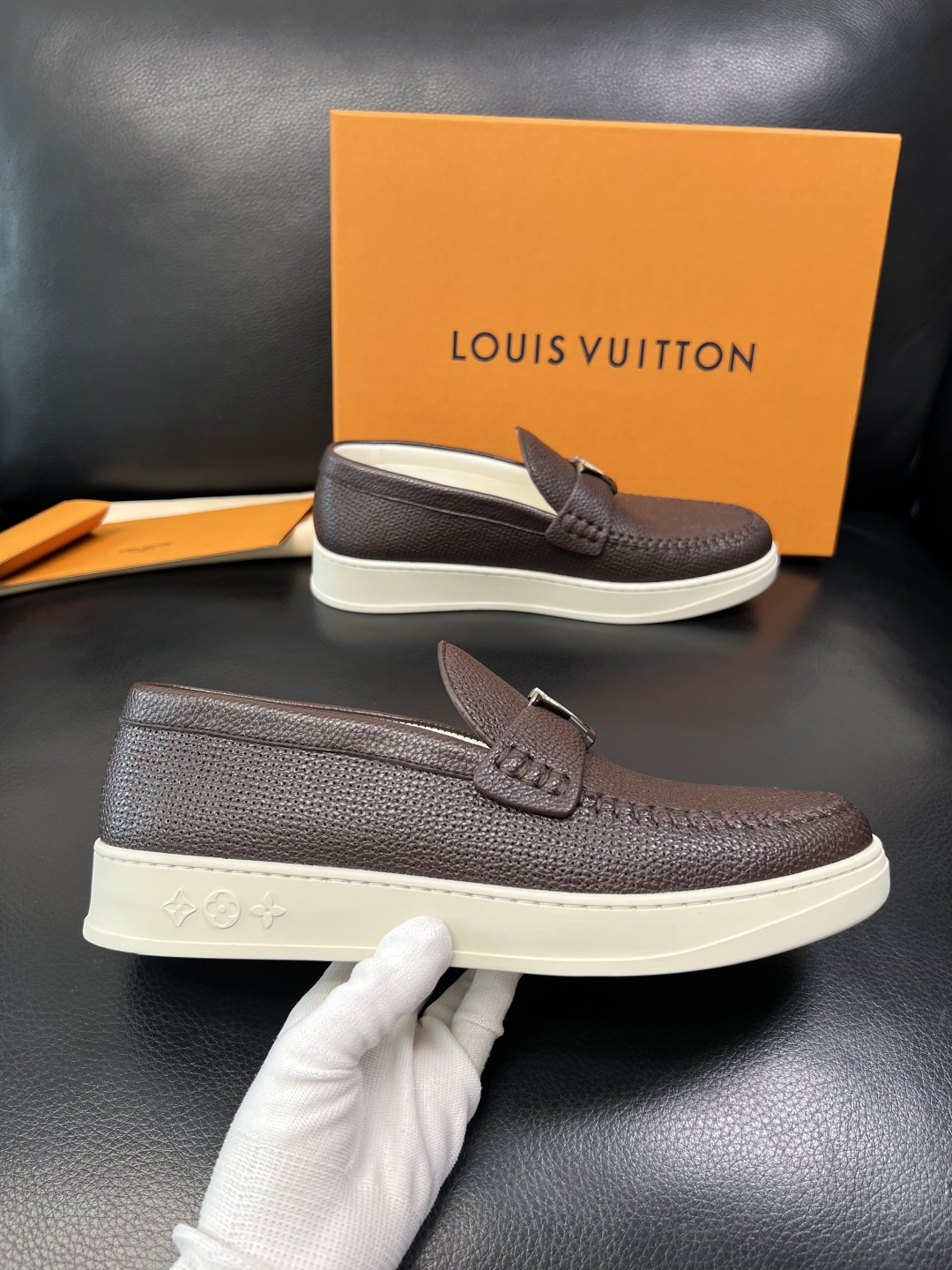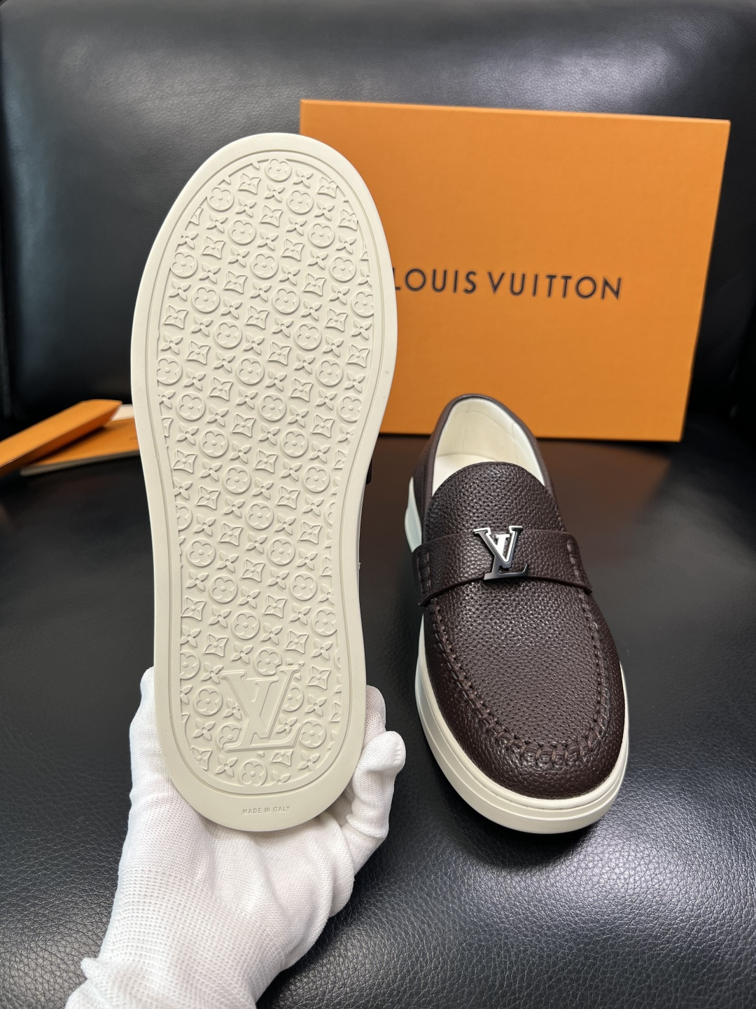 這款鞋子是AAAAA 1:1 質量(非常棒). 使用了和原版一模一樣的材料. 商標部分也保持了和路易威登/Louis Vuitton一樣. 圖片拍攝是實物鞋子拍攝, 您所收到的實物保證和我們圖片一模一樣.