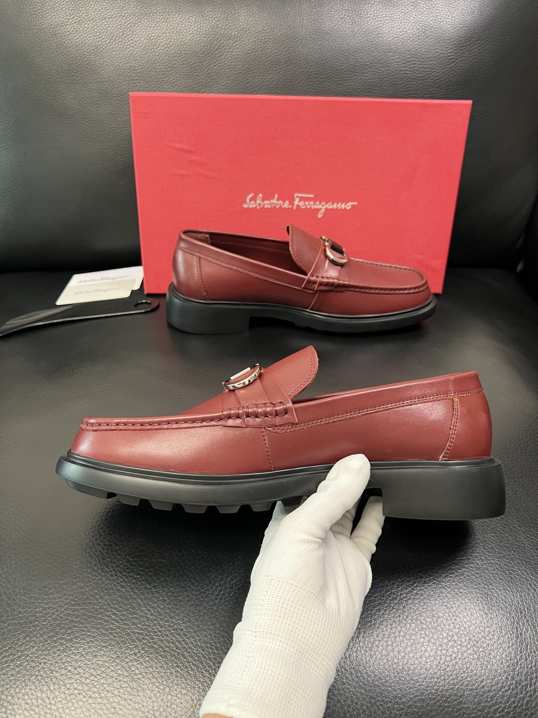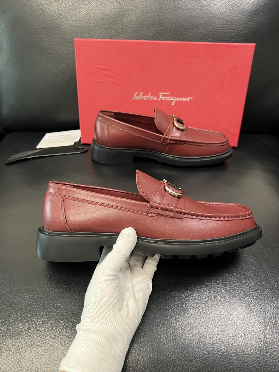 這款鞋子是AAAAA 1:1 質量(非常棒). 使用了和原版一模一樣的材料. 商標部分也保持了和菲拉格慕/Salvatore Ferragamo一樣. 圖片拍攝是實物鞋子拍攝, 您所收到的實物保證和我們圖片一模一樣.