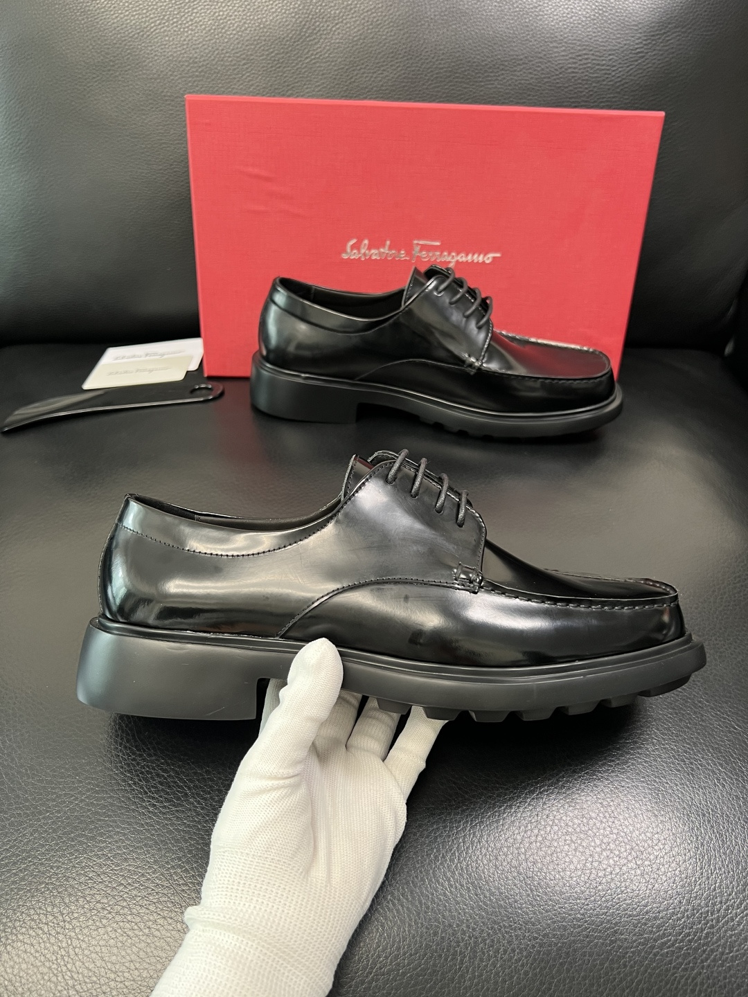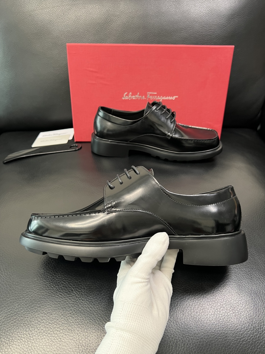 這款鞋子是AAAAA 1:1 質量(非常棒). 使用了和原版一模一樣的材料. 商標部分也保持了和菲拉格慕/Salvatore Ferragamo一樣. 圖片拍攝是實物鞋子拍攝, 您所收到的實物保證和我們圖片一模一樣.
