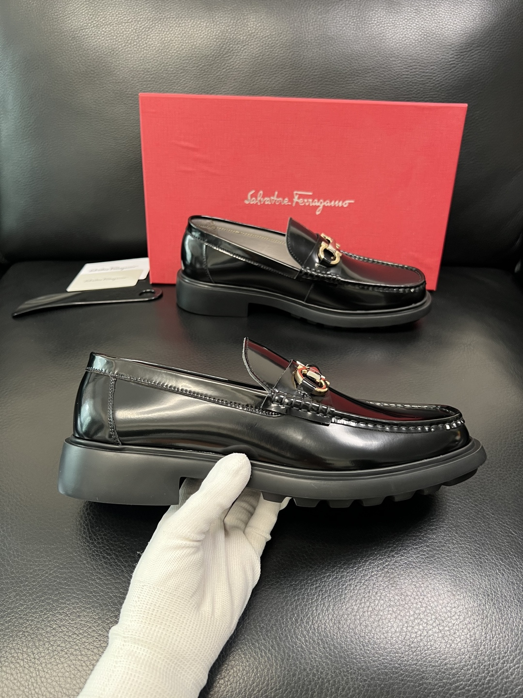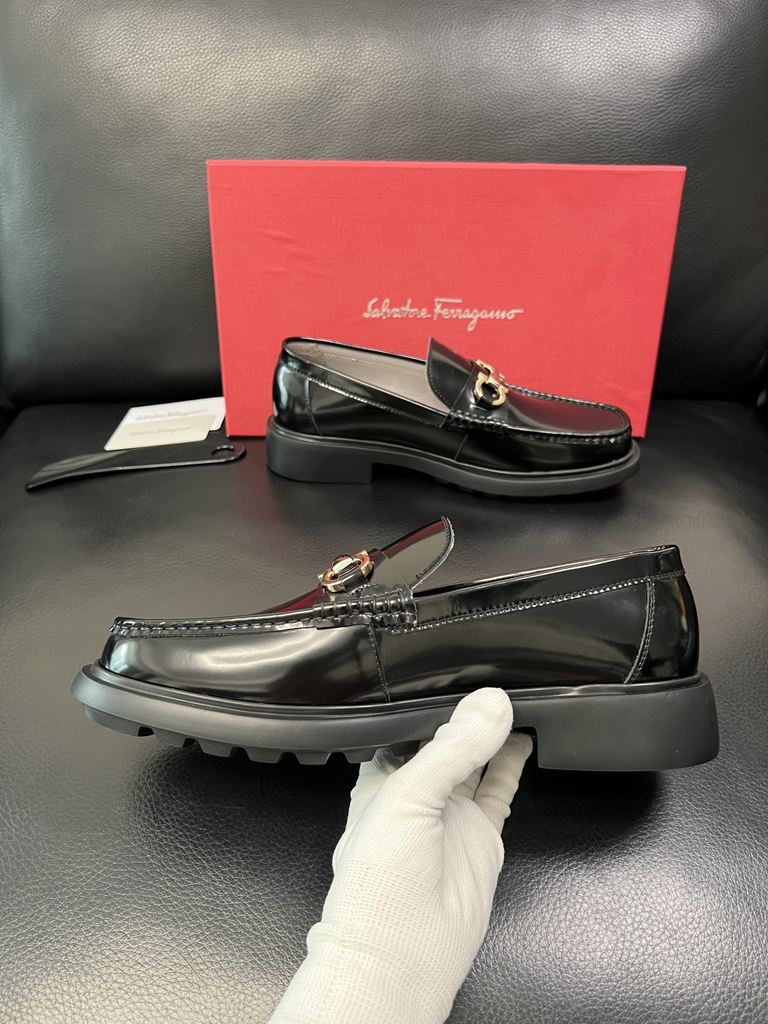 這款鞋子是AAAAA 1:1 質量(非常棒). 使用了和原版一模一樣的材料. 商標部分也保持了和菲拉格慕/Salvatore Ferragamo一樣. 圖片拍攝是實物鞋子拍攝, 您所收到的實物保證和我們圖片一模一樣.