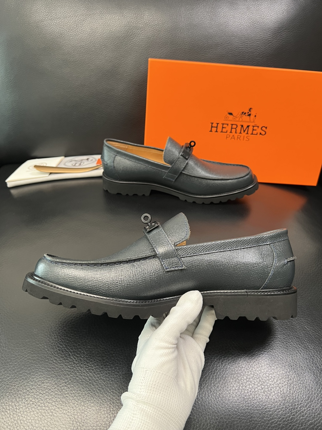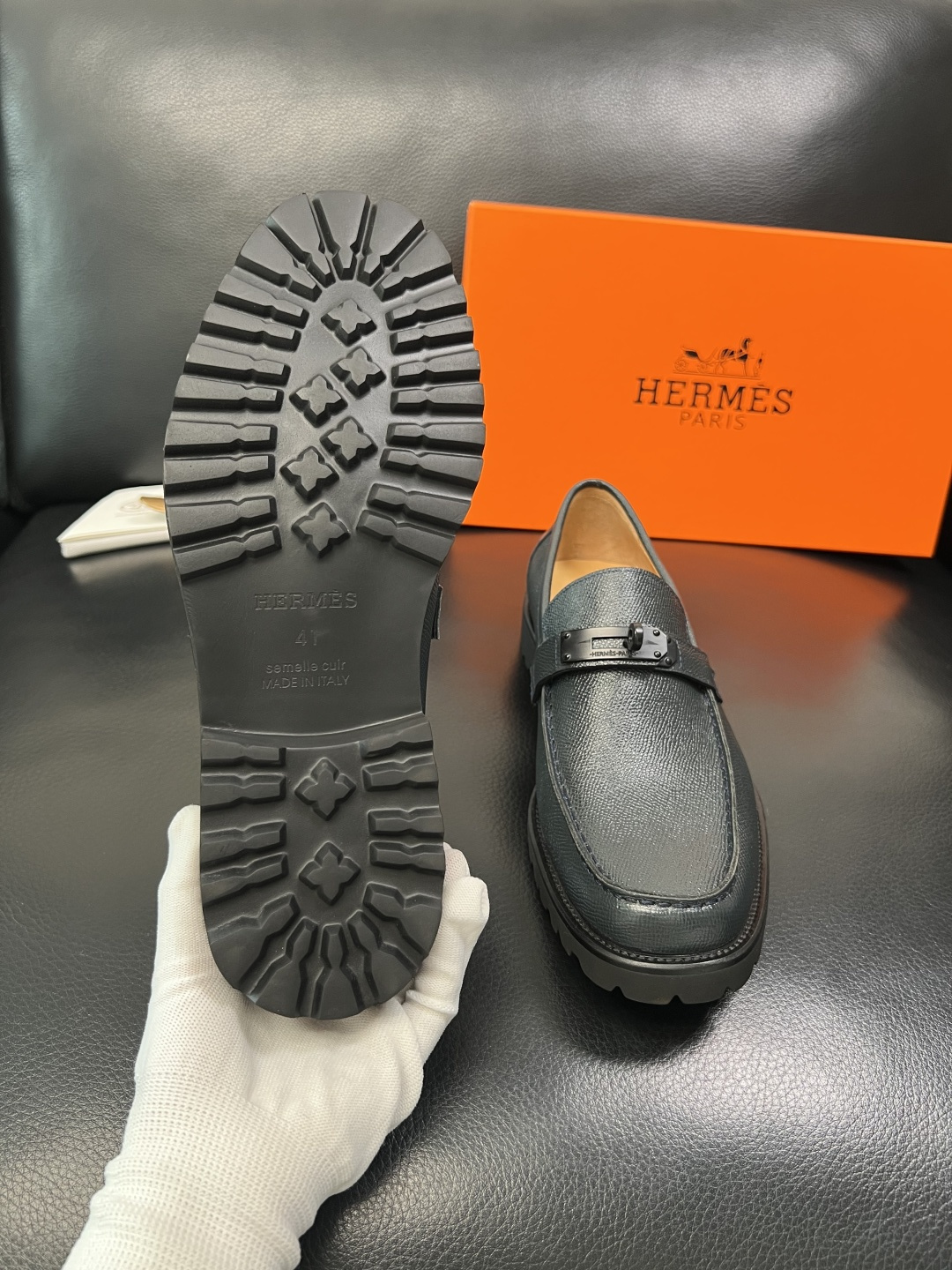 這款鞋子是AAAAA 1:1 質量(非常棒). 使用了和原版一模一樣的材料. 商標部分也保持了和愛馬仕/Hermes一樣. 圖片拍攝是實物鞋子拍攝, 您所收到的實物保證和我們圖片一模一樣.