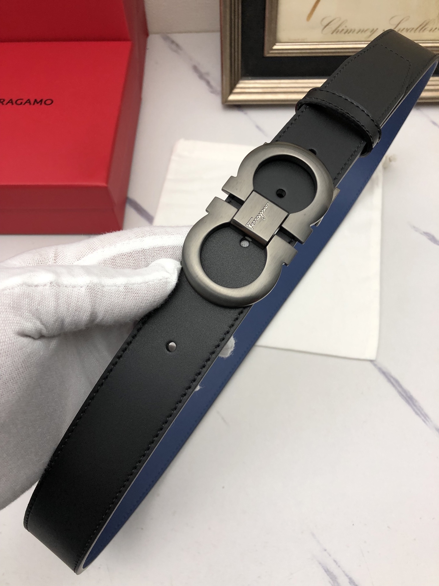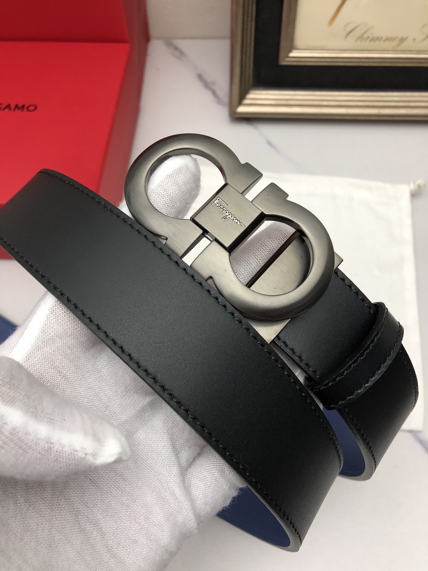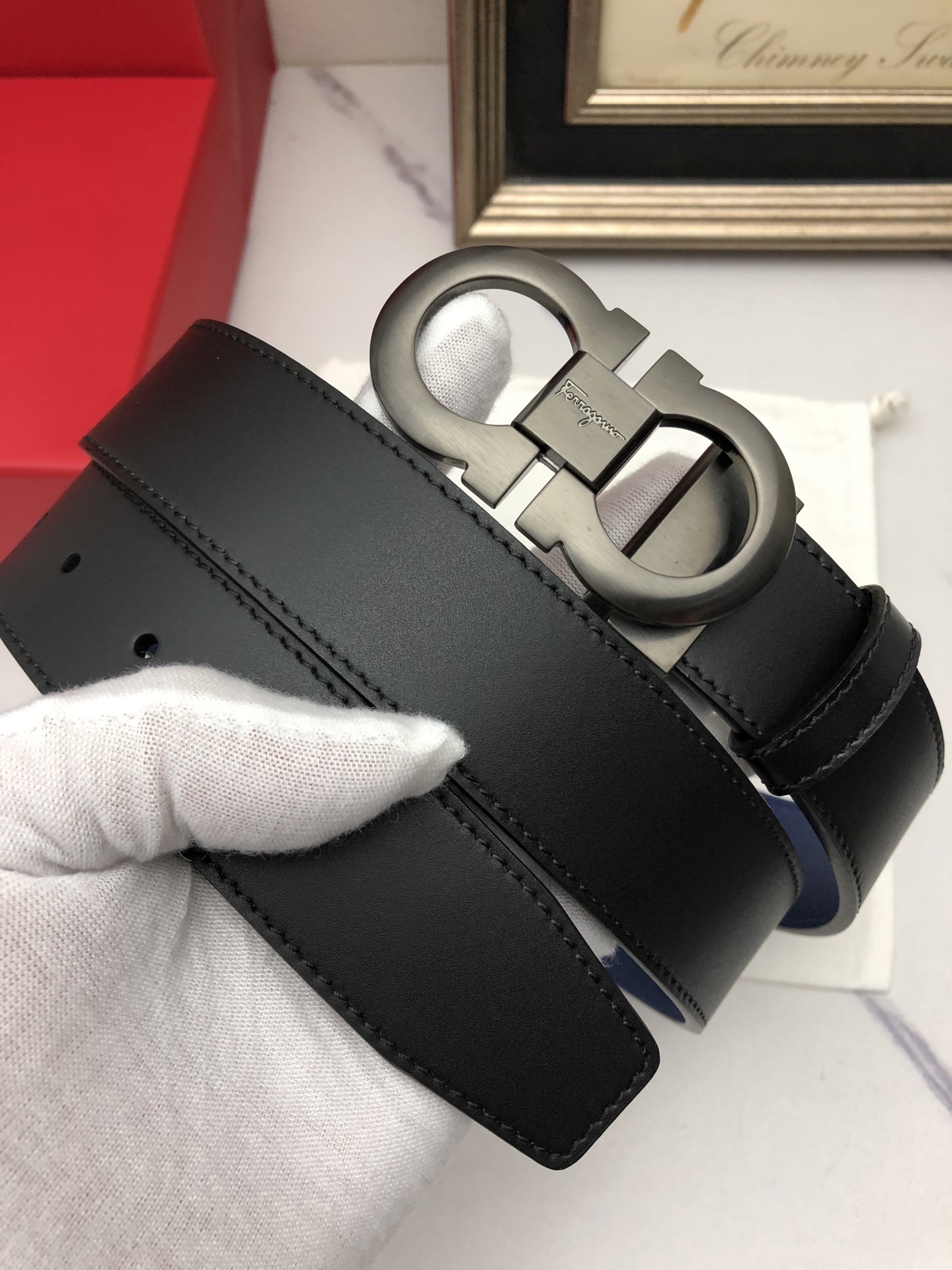 這款皮帶是AAAAA 1:1 質量(非常棒). 使用了和原版一模一樣的材料. 商標部分也保持了和一樣. 圖片拍攝是實物皮帶拍攝, 您所收到的實物保證和我們圖片一模一樣.