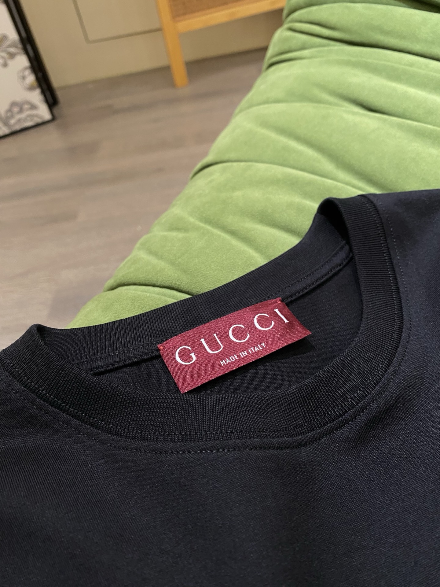 這款衣服是AAAAA 1:1 質量(非常棒). 使用了和原版一模一樣的材料. 商標部分也保持了和古奇/Gucci一樣. 圖片拍攝是實物衣服拍攝, 您所收到的實物保證和我們圖片一模一樣.