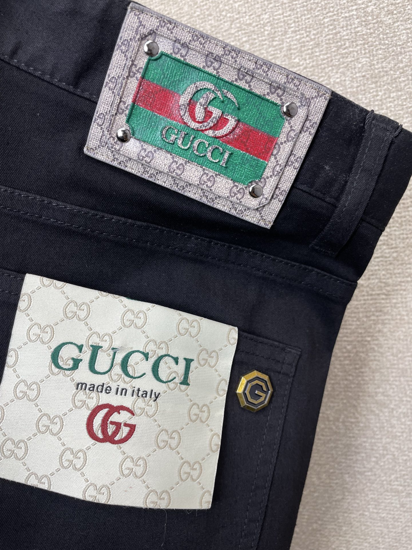 這款衣服是AAAAA 1:1 質量(非常棒). 使用了和原版一模一樣的材料. 商標部分也保持了和古奇/Gucci一樣. 圖片拍攝是實物衣服拍攝, 您所收到的實物保證和我們圖片一模一樣.