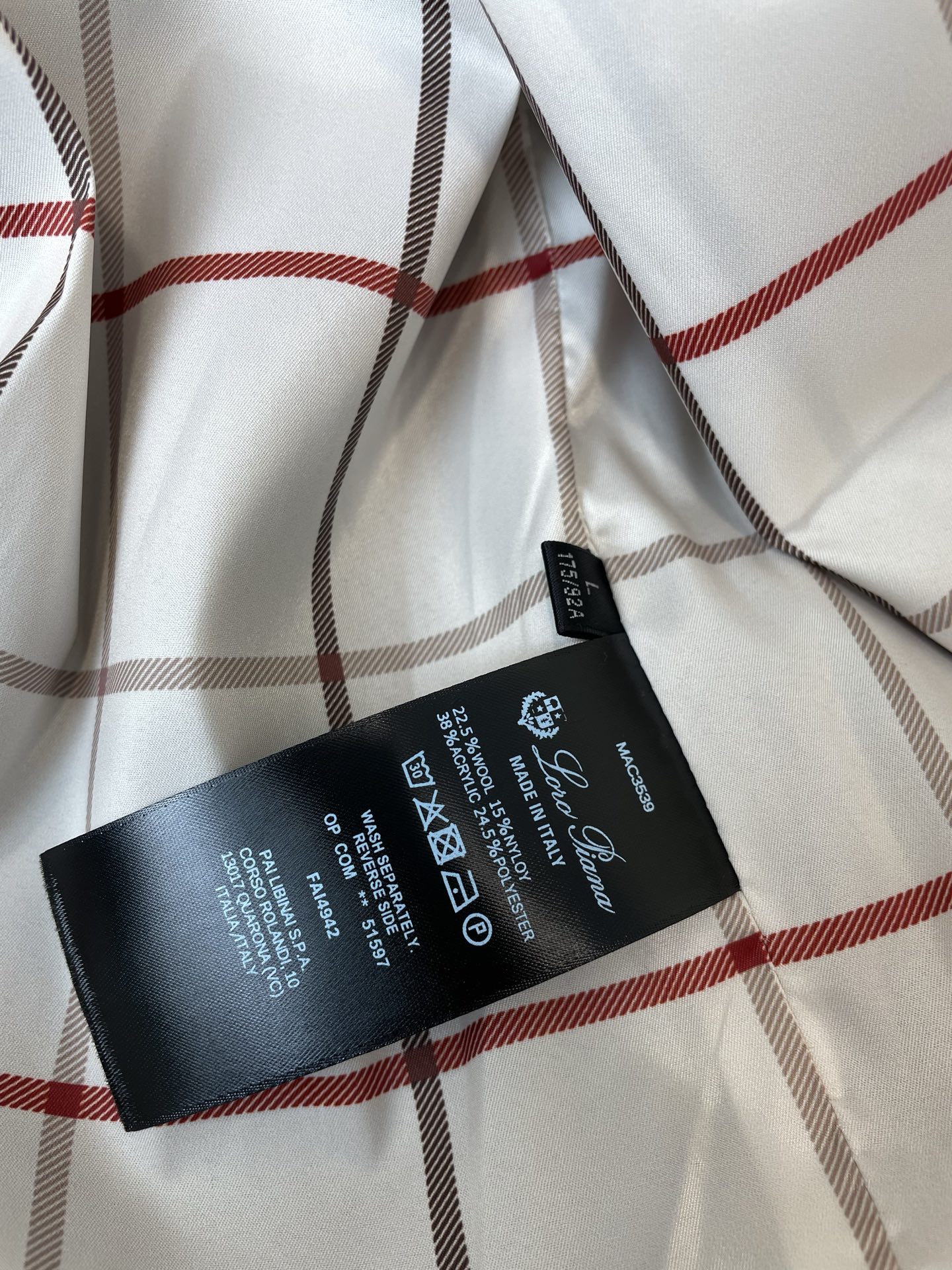 這款衣服是AAAAA 1:1 質量(非常棒). 使用了和原版一模一樣的材料. 商標部分也保持了和Loro Piana一樣. 圖片拍攝是實物衣服拍攝, 您所收到的實物保證和我們圖片一模一樣.