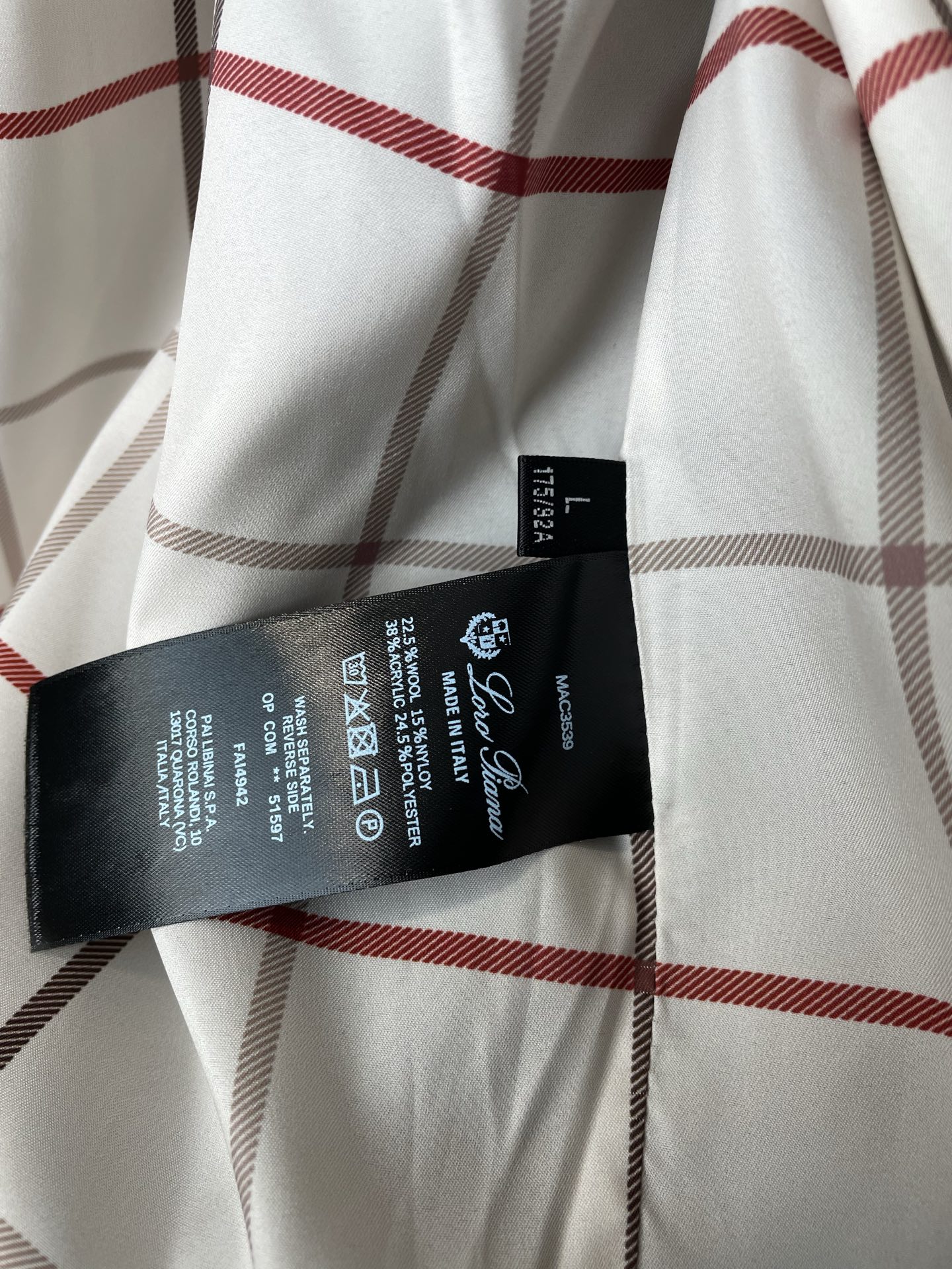 這款衣服是AAAAA 1:1 質量(非常棒). 使用了和原版一模一樣的材料. 商標部分也保持了和Loro Piana一樣. 圖片拍攝是實物衣服拍攝, 您所收到的實物保證和我們圖片一模一樣.