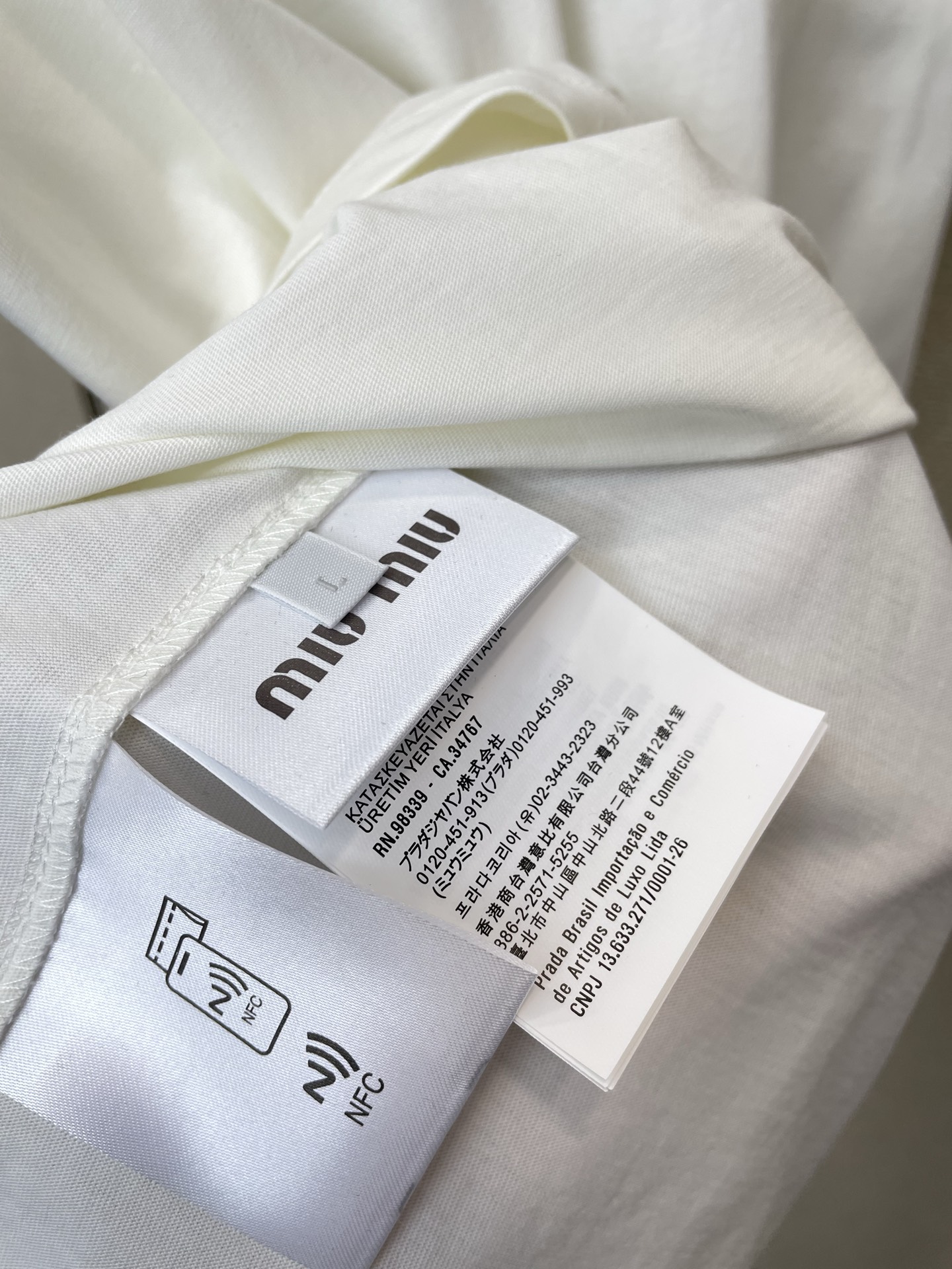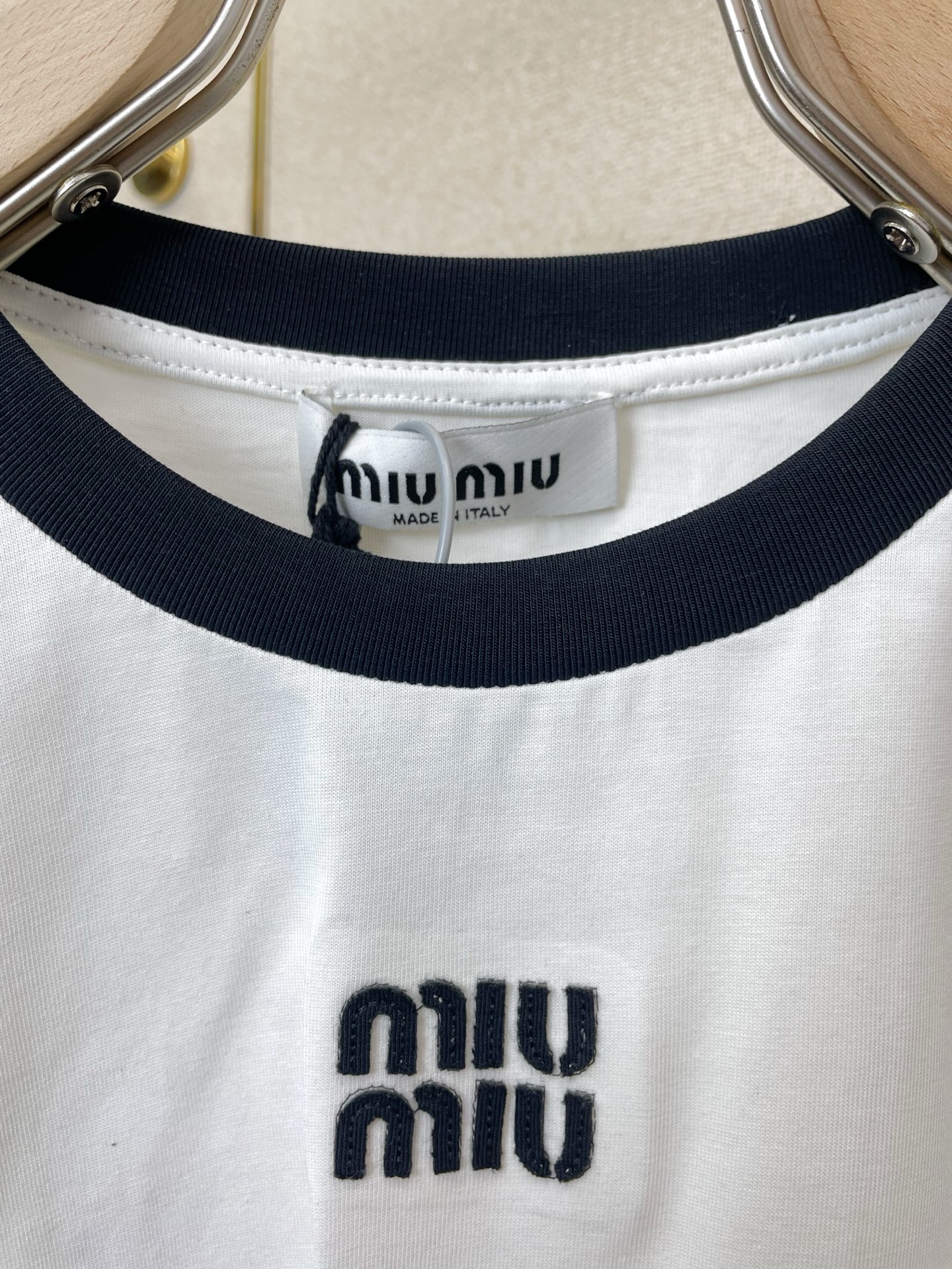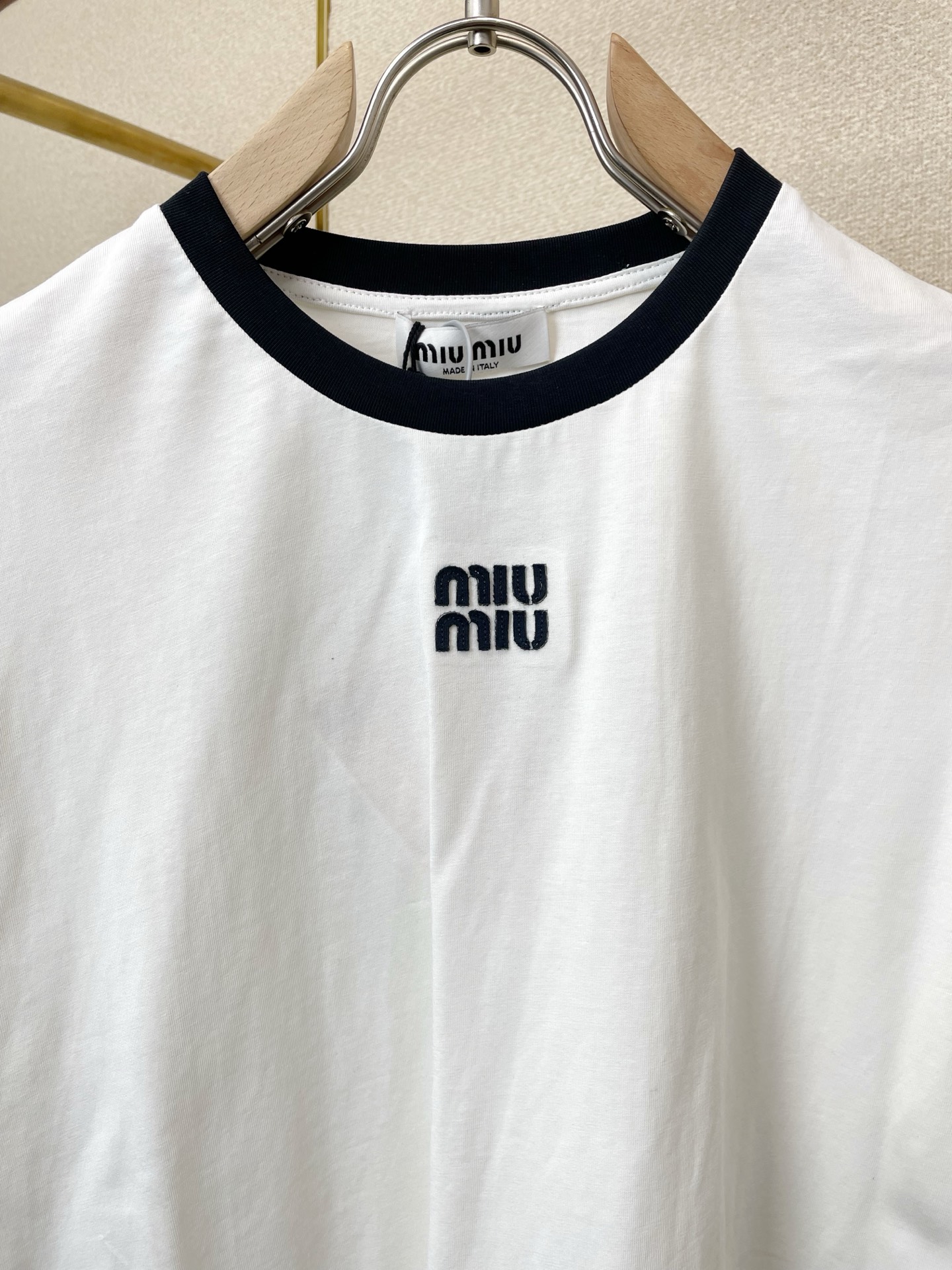 這款衣服是AAAAA 1:1 質量(非常棒). 使用了和原版一模一樣的材料. 商標部分也保持了和繆繆/Miu Miu一樣. 圖片拍攝是實物衣服拍攝, 您所收到的實物保證和我們圖片一模一樣.