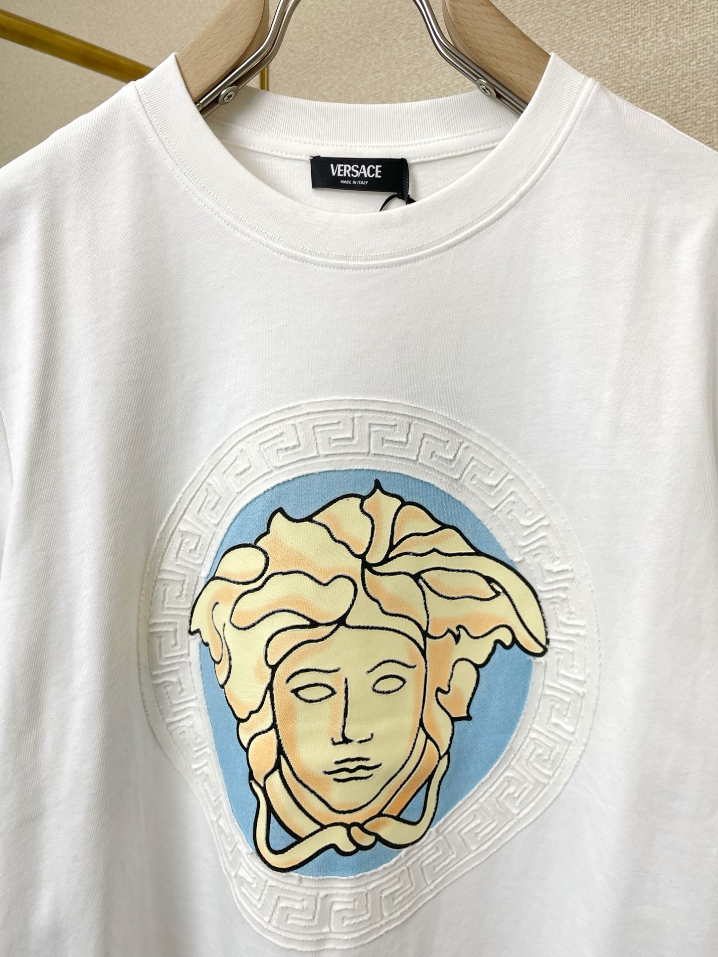 這款衣服是AAAAA 1:1 質量(非常棒). 使用了和原版一模一樣的材料. 商標部分也保持了和范思哲/Versace一樣. 圖片拍攝是實物衣服拍攝, 您所收到的實物保證和我們圖片一模一樣.