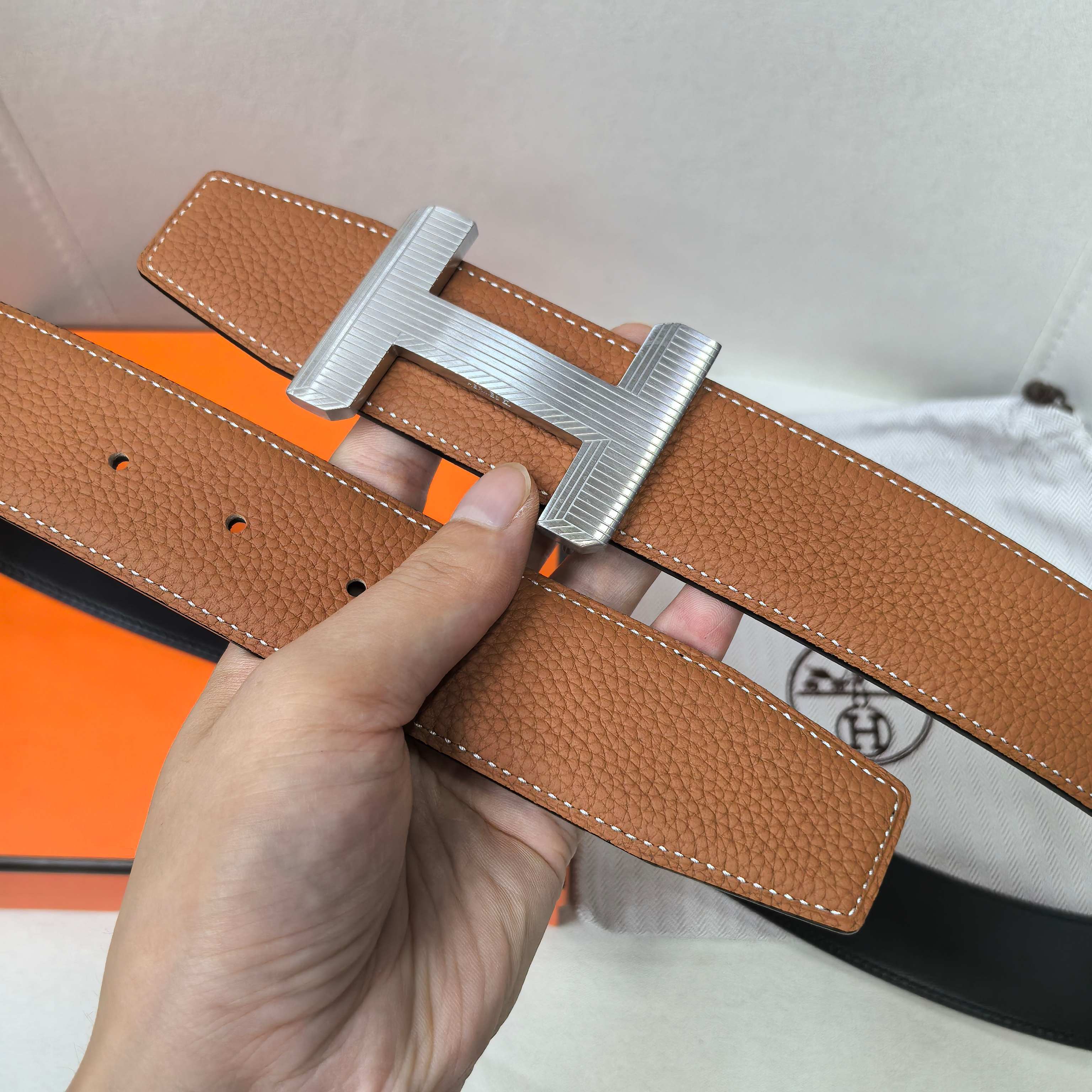 這款皮帶是AAAAA 1:1 質量(非常棒). 使用了和原版一模一樣的材料. 商標部分也保持了和愛馬仕/Hermes一樣. 圖片拍攝是實物皮帶拍攝, 您所收到的實物保證和我們圖片一模一樣.