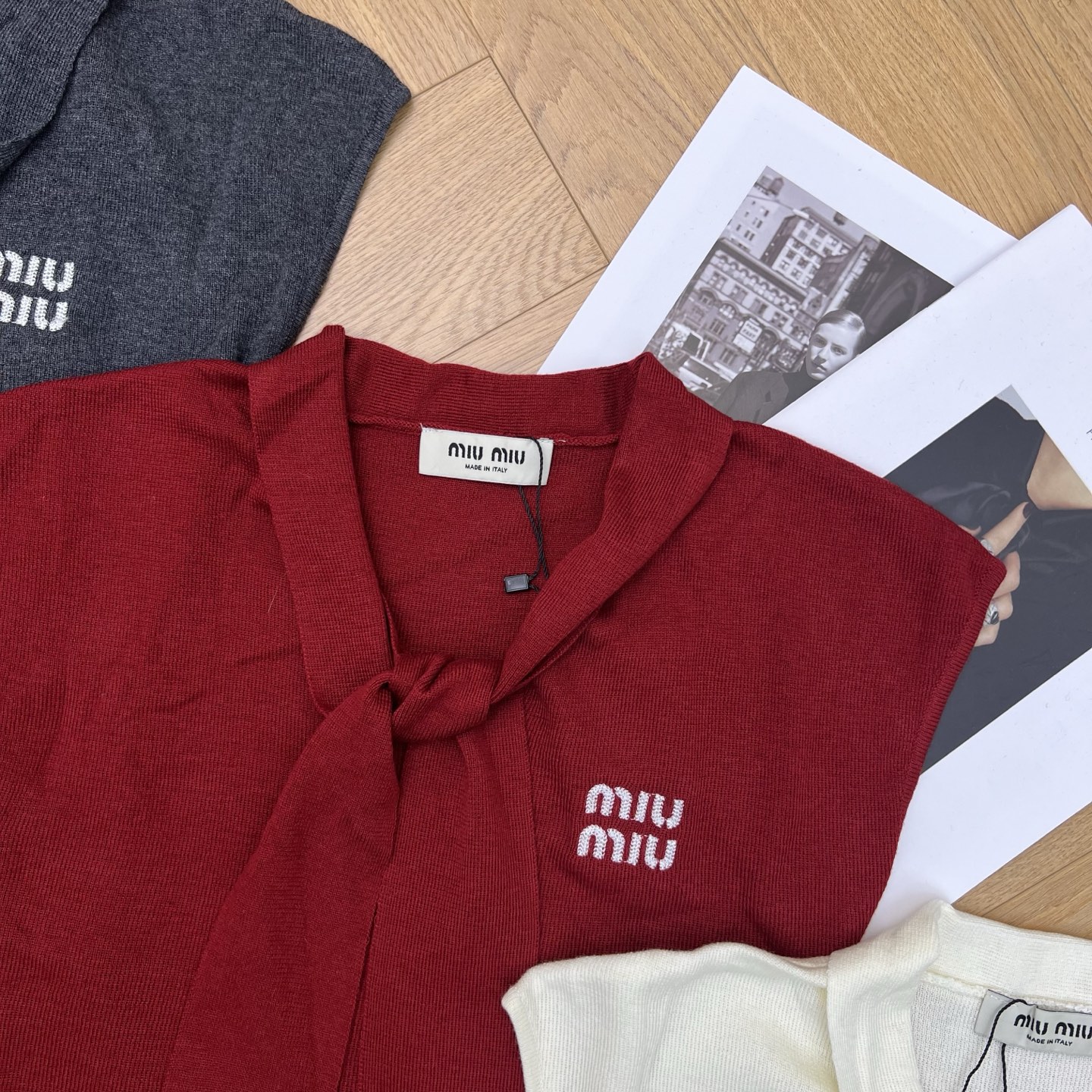 這款衣服是AAAAA 1:1 質量(非常棒). 使用了和原版一模一樣的材料. 商標部分也保持了和繆繆/Miu Miu一樣. 圖片拍攝是實物衣服拍攝, 您所收到的實物保證和我們圖片一模一樣.