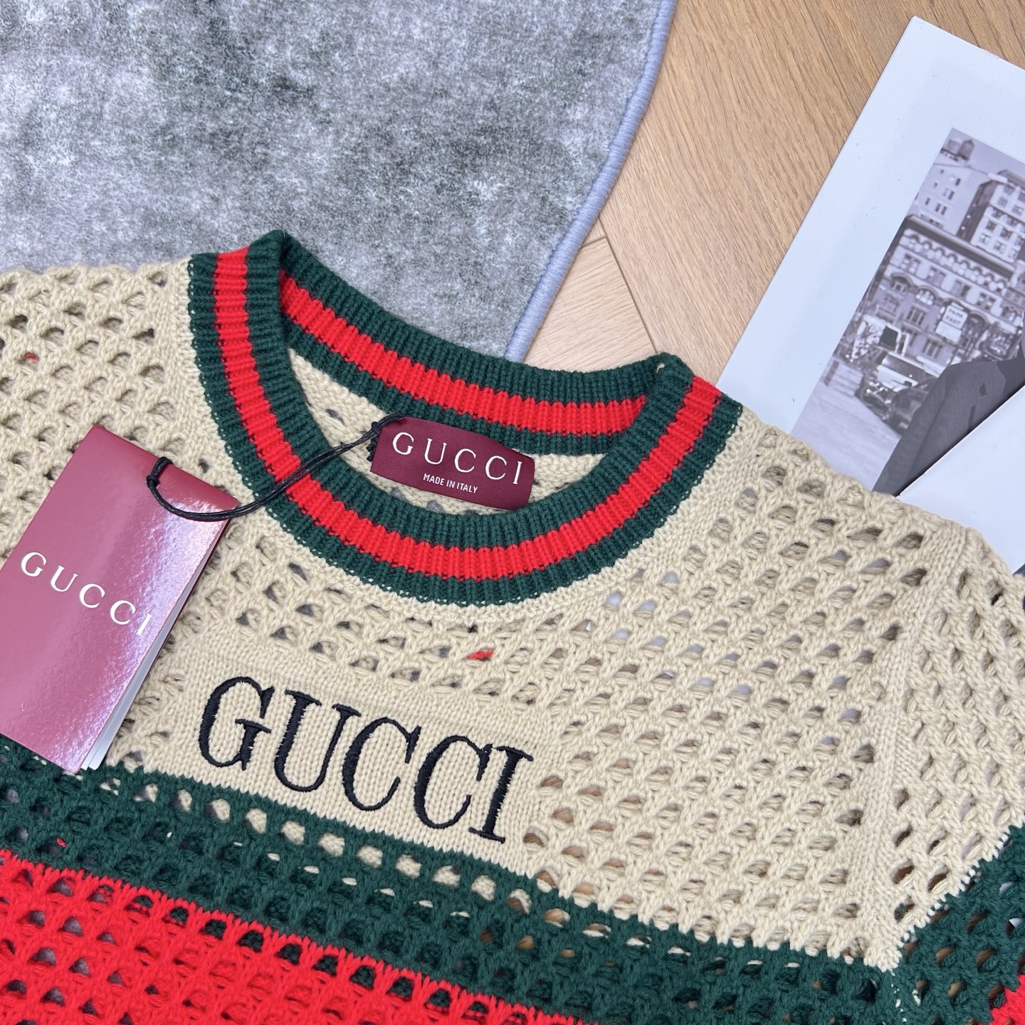 這款衣服是AAAAA 1:1 質量(非常棒). 使用了和原版一模一樣的材料. 商標部分也保持了和古奇/Gucci一樣. 圖片拍攝是實物衣服拍攝, 您所收到的實物保證和我們圖片一模一樣.
