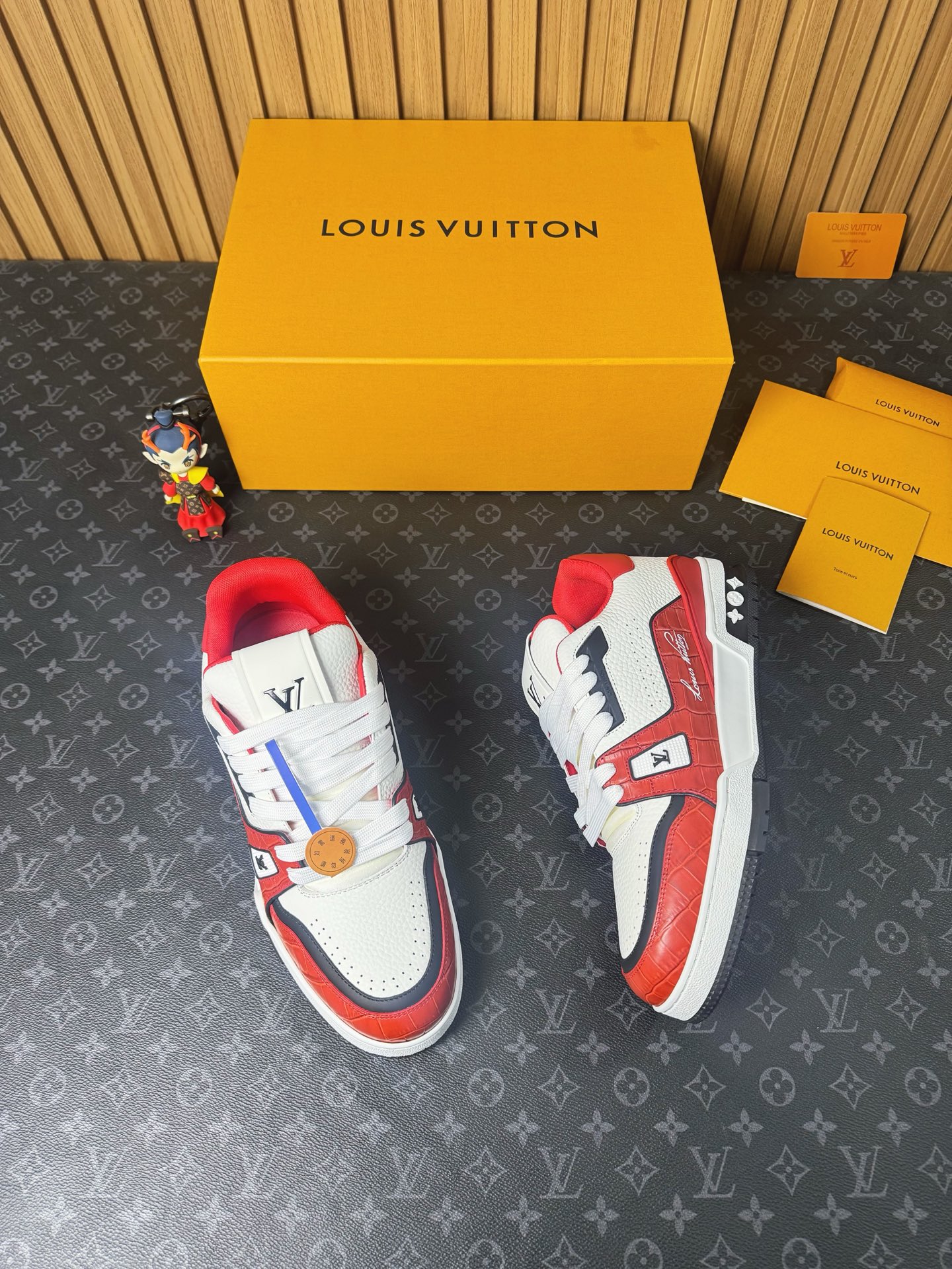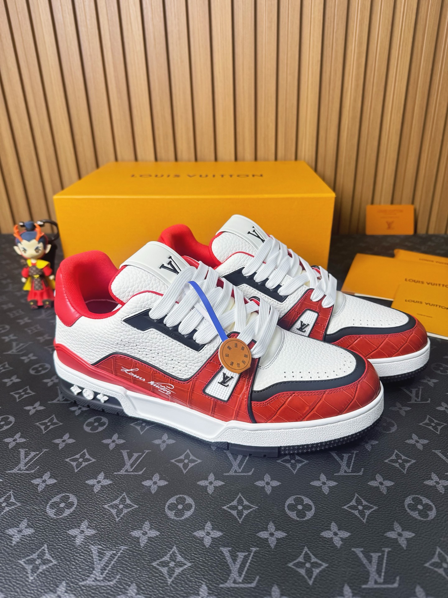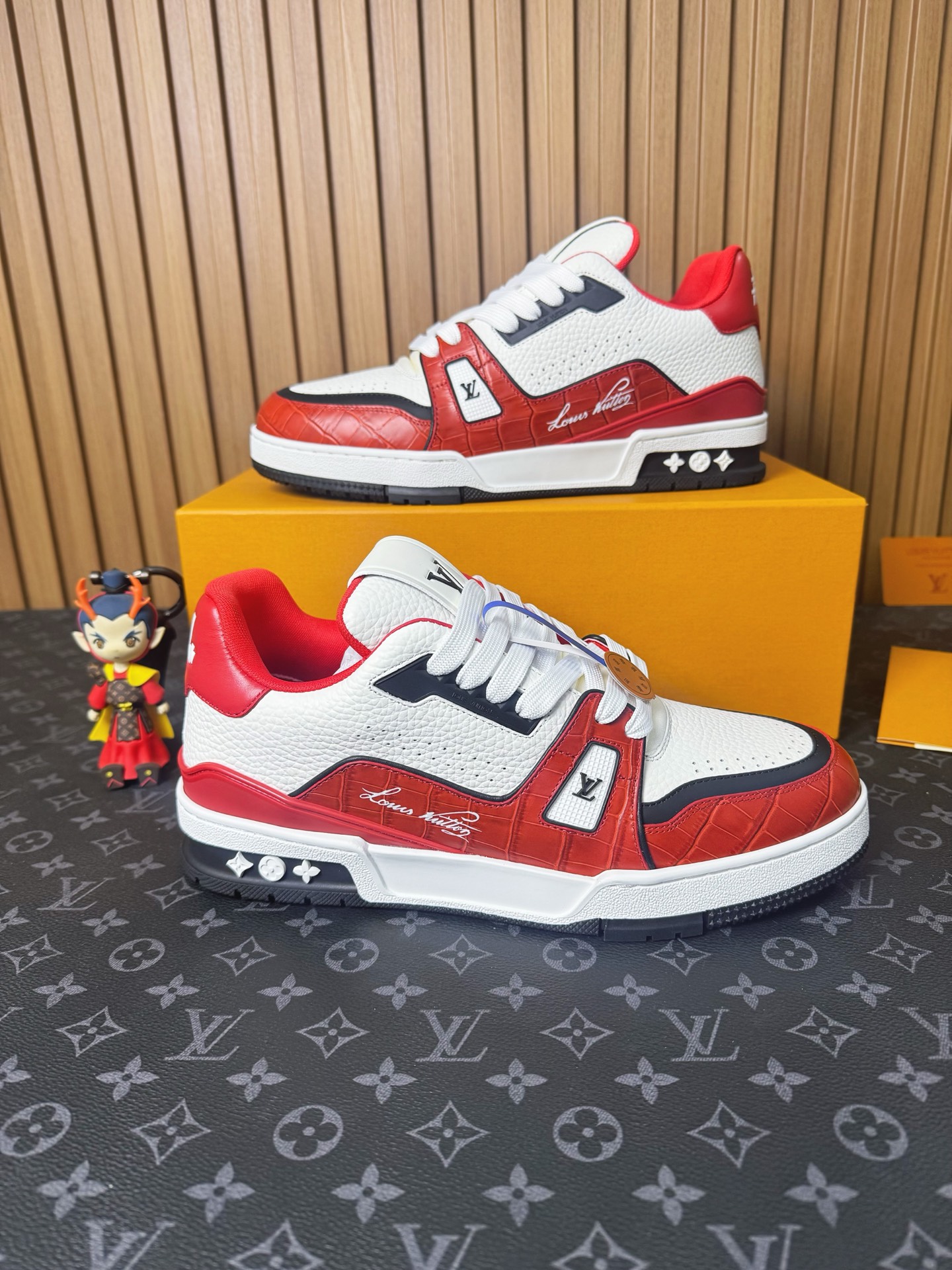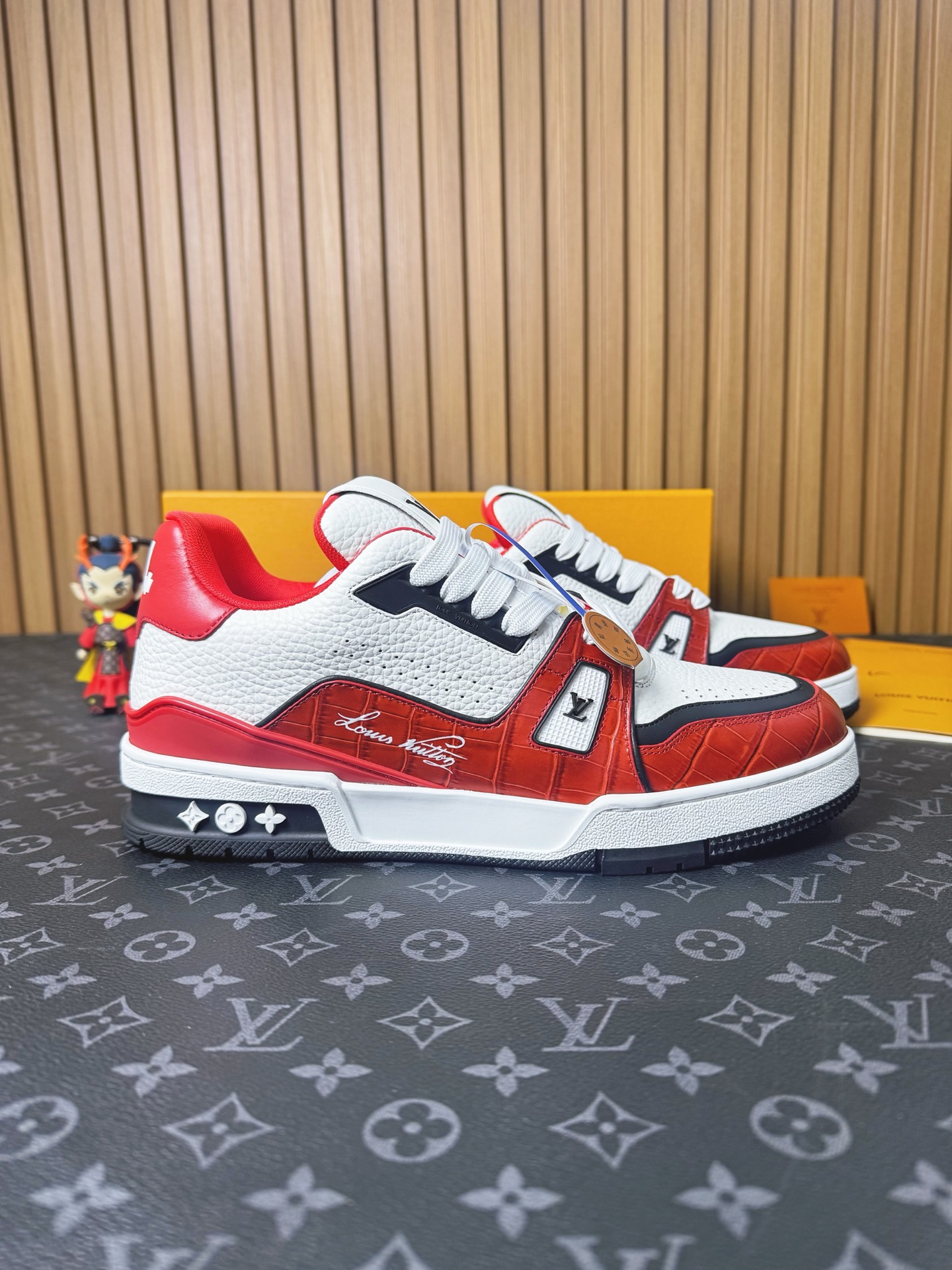 這款鞋子是AAAAA 1:1 質量(非常棒). 使用了和原版一模一樣的材料. 商標部分也保持了和路易威登/Louis Vuitton一樣. 圖片拍攝是實物鞋子拍攝, 您所收到的實物保證和我們圖片一模一樣.