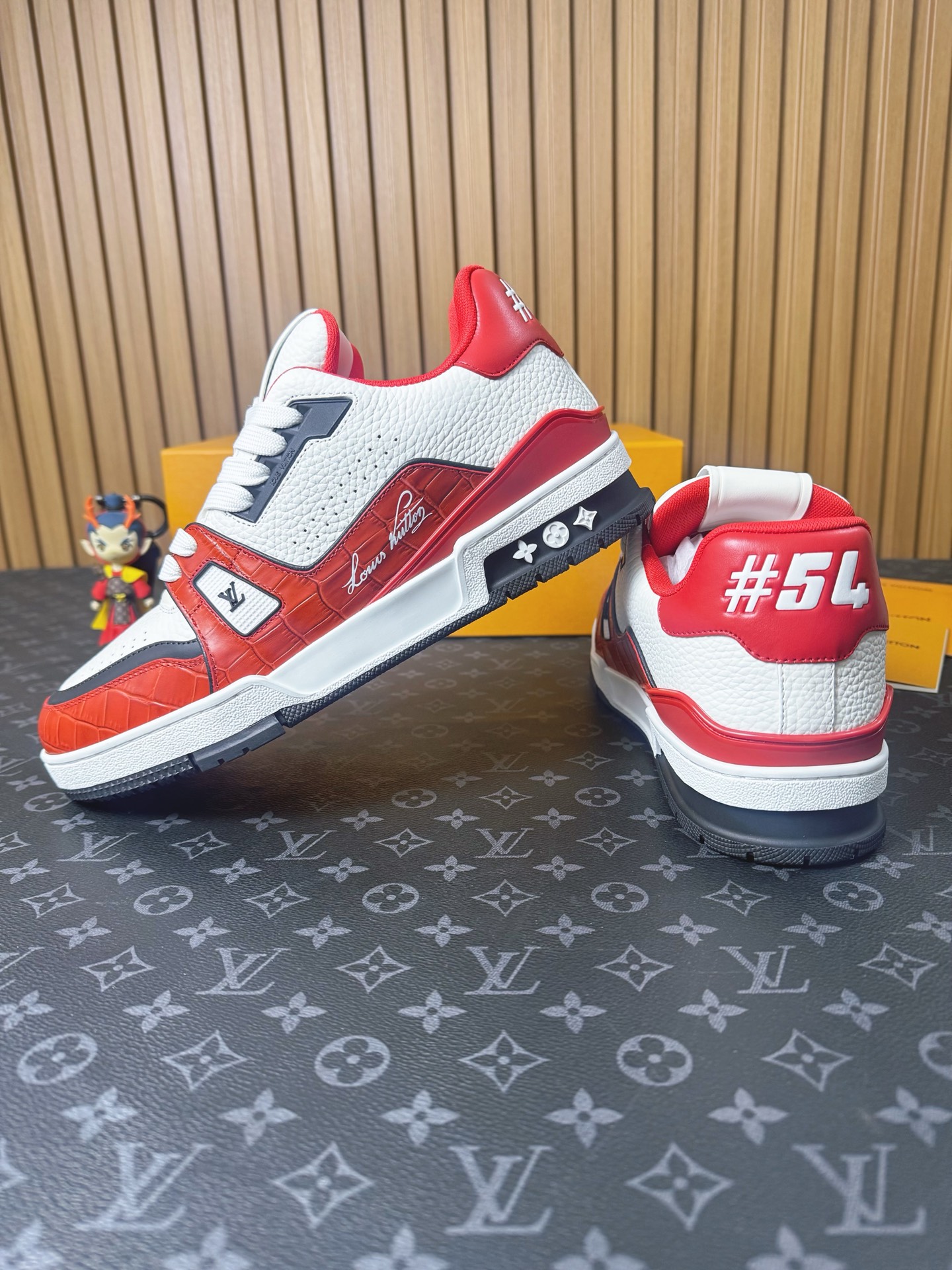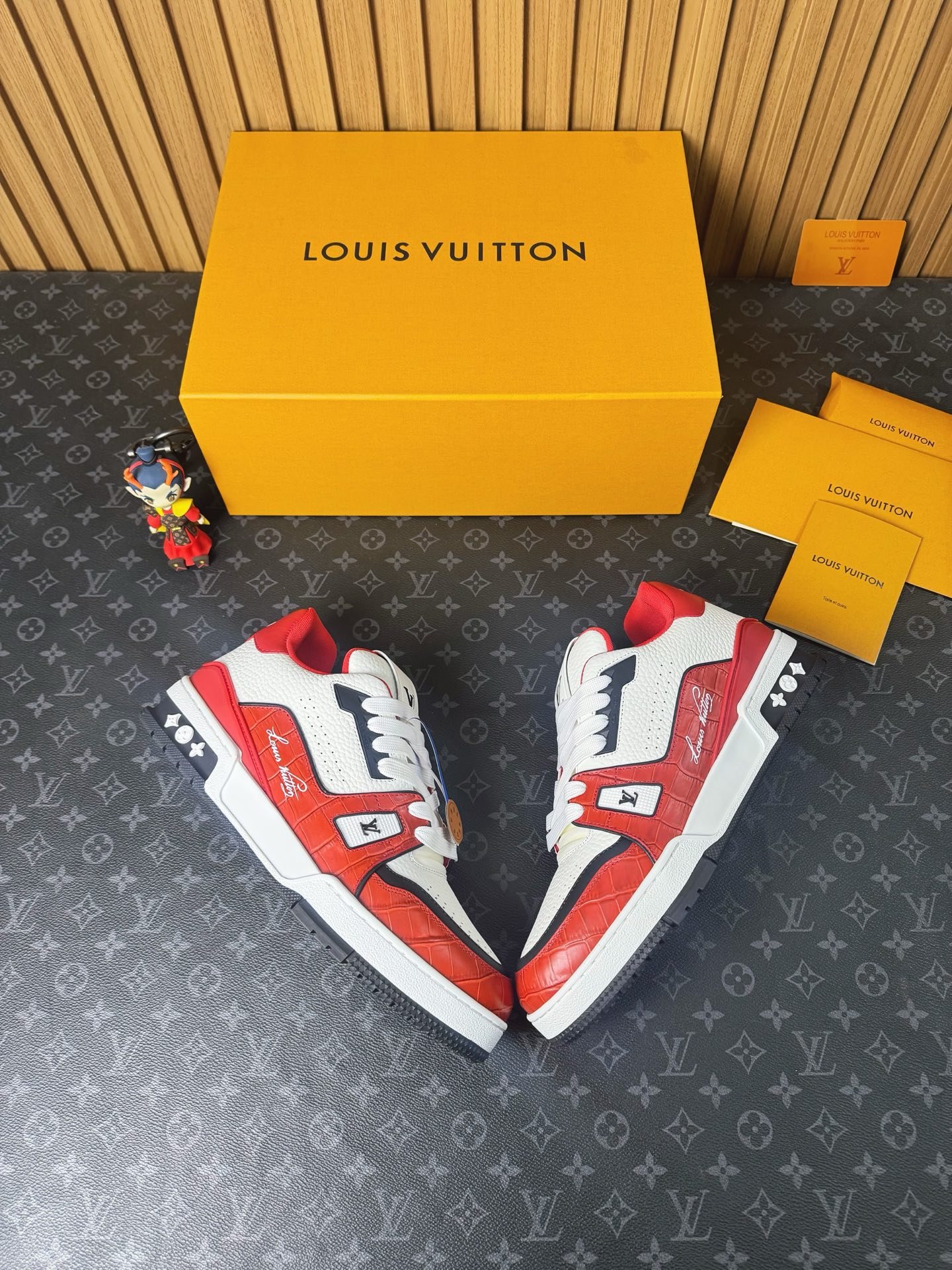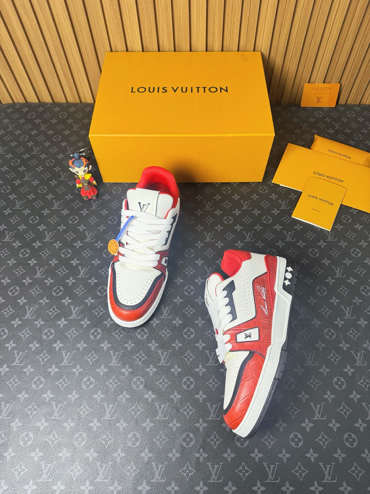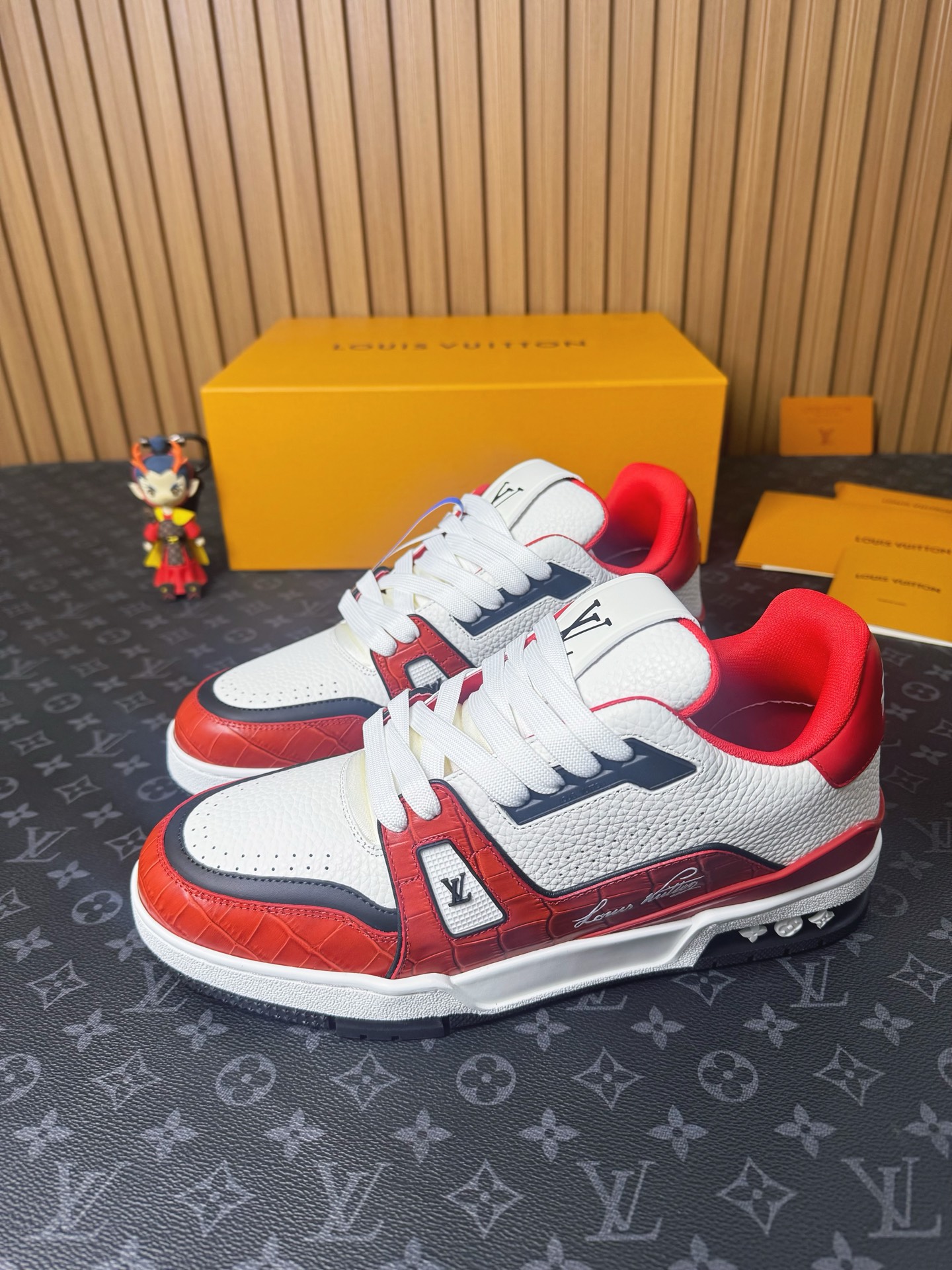 這款鞋子是AAAAA 1:1 質量(非常棒). 使用了和原版一模一樣的材料. 商標部分也保持了和路易威登/Louis Vuitton一樣. 圖片拍攝是實物鞋子拍攝, 您所收到的實物保證和我們圖片一模一樣.