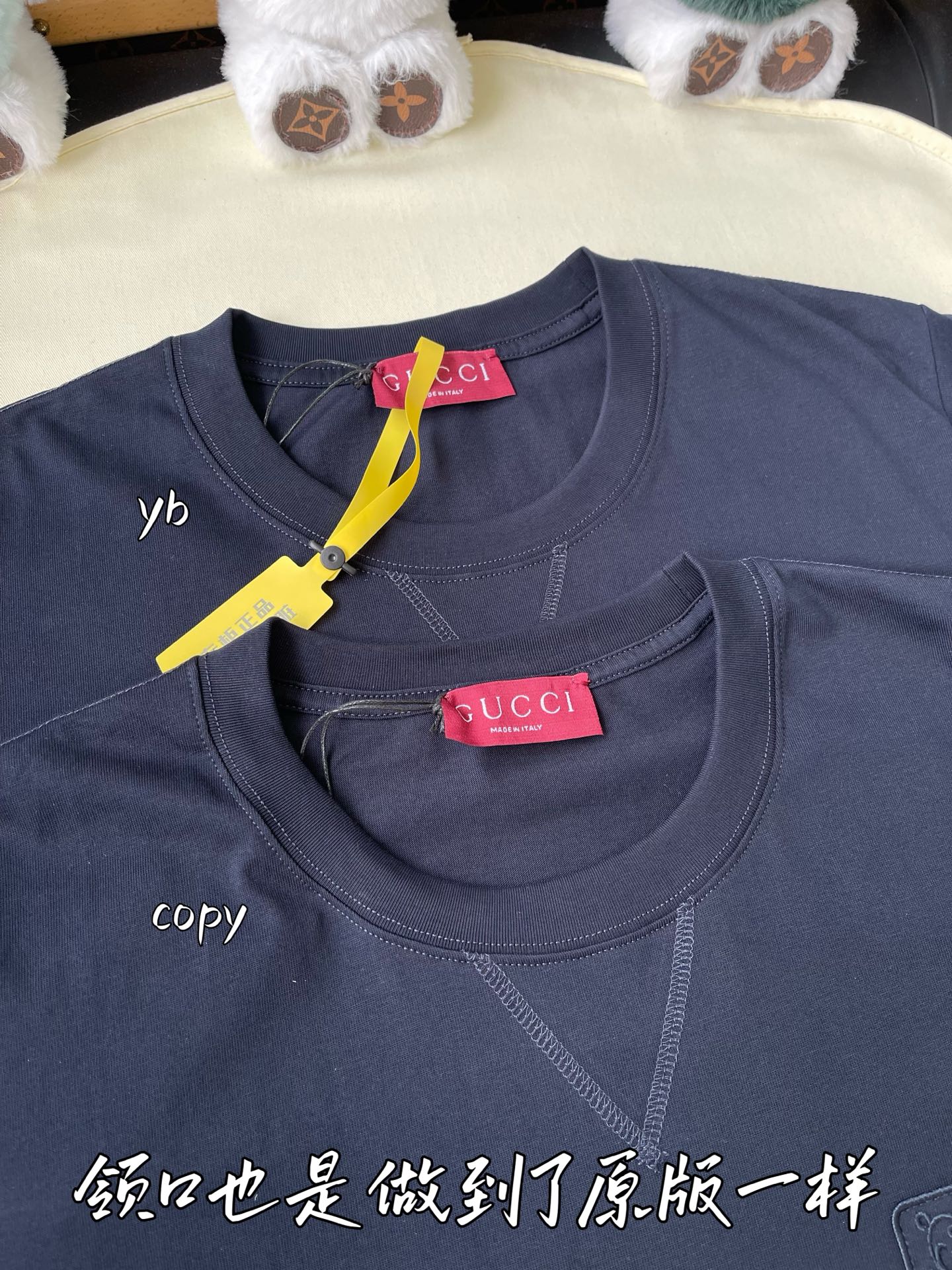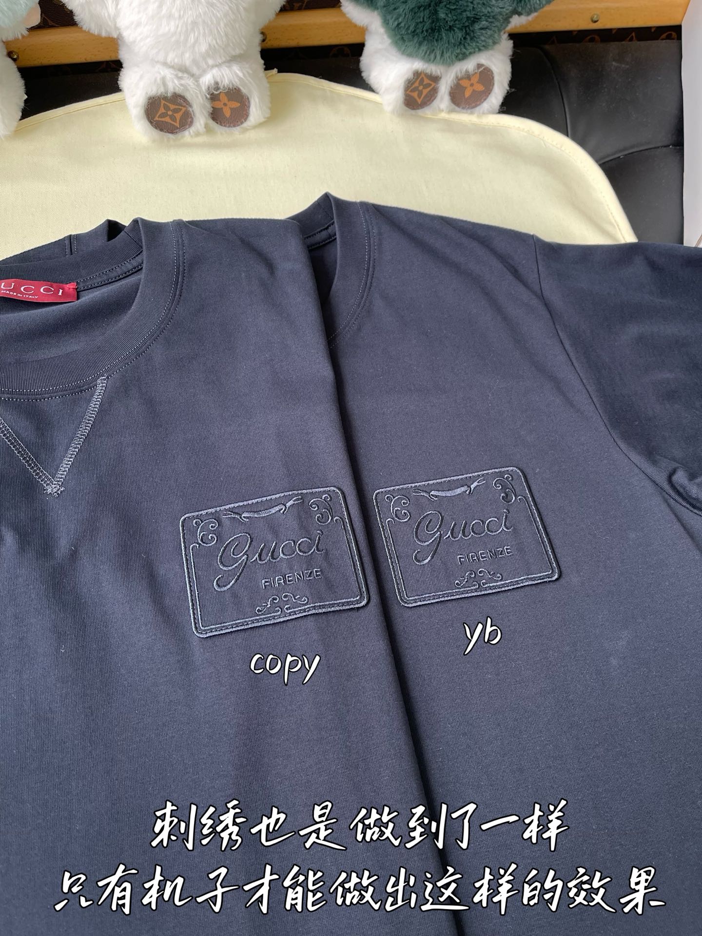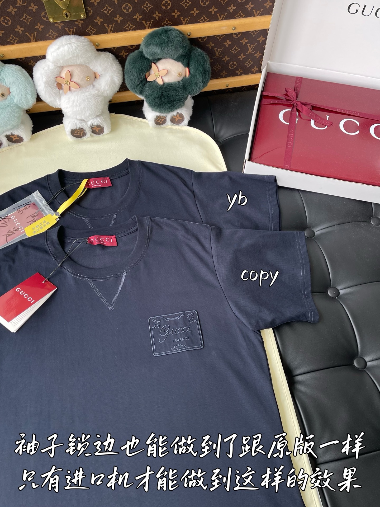 這款衣服是AAAAA 1:1 質量(非常棒). 使用了和原版一模一樣的材料. 商標部分也保持了和古奇/Gucci一樣. 圖片拍攝是實物衣服拍攝, 您所收到的實物保證和我們圖片一模一樣.