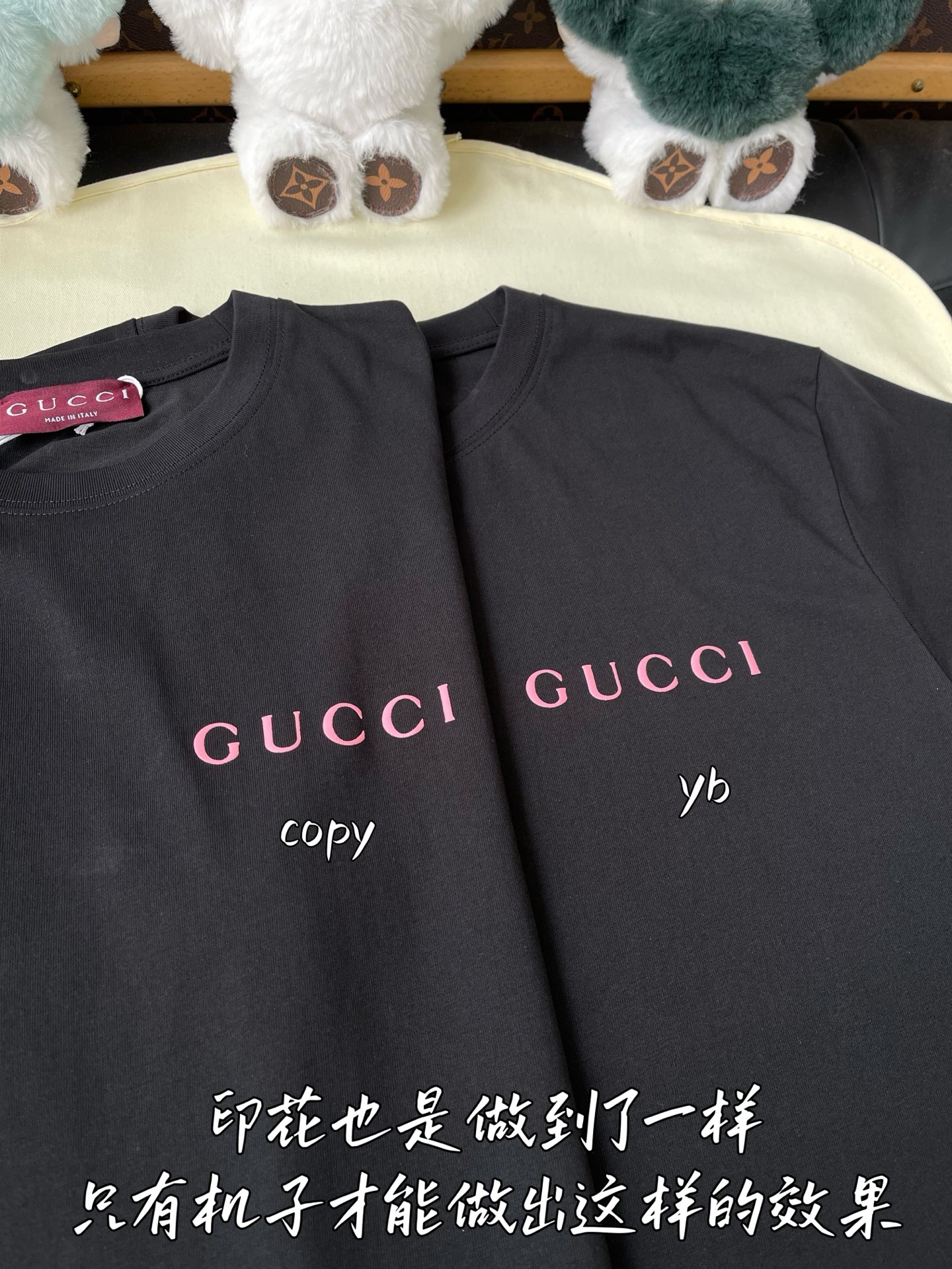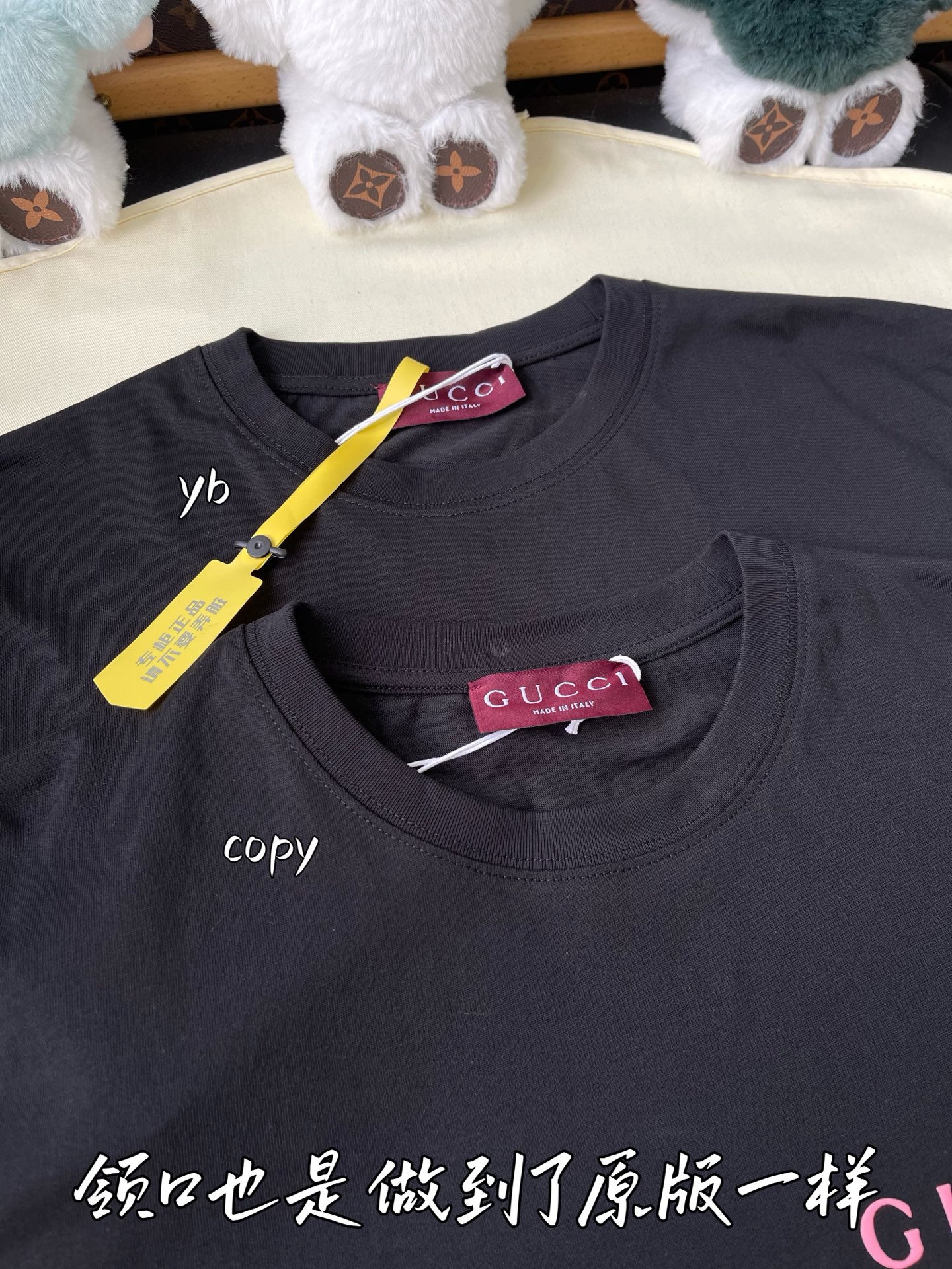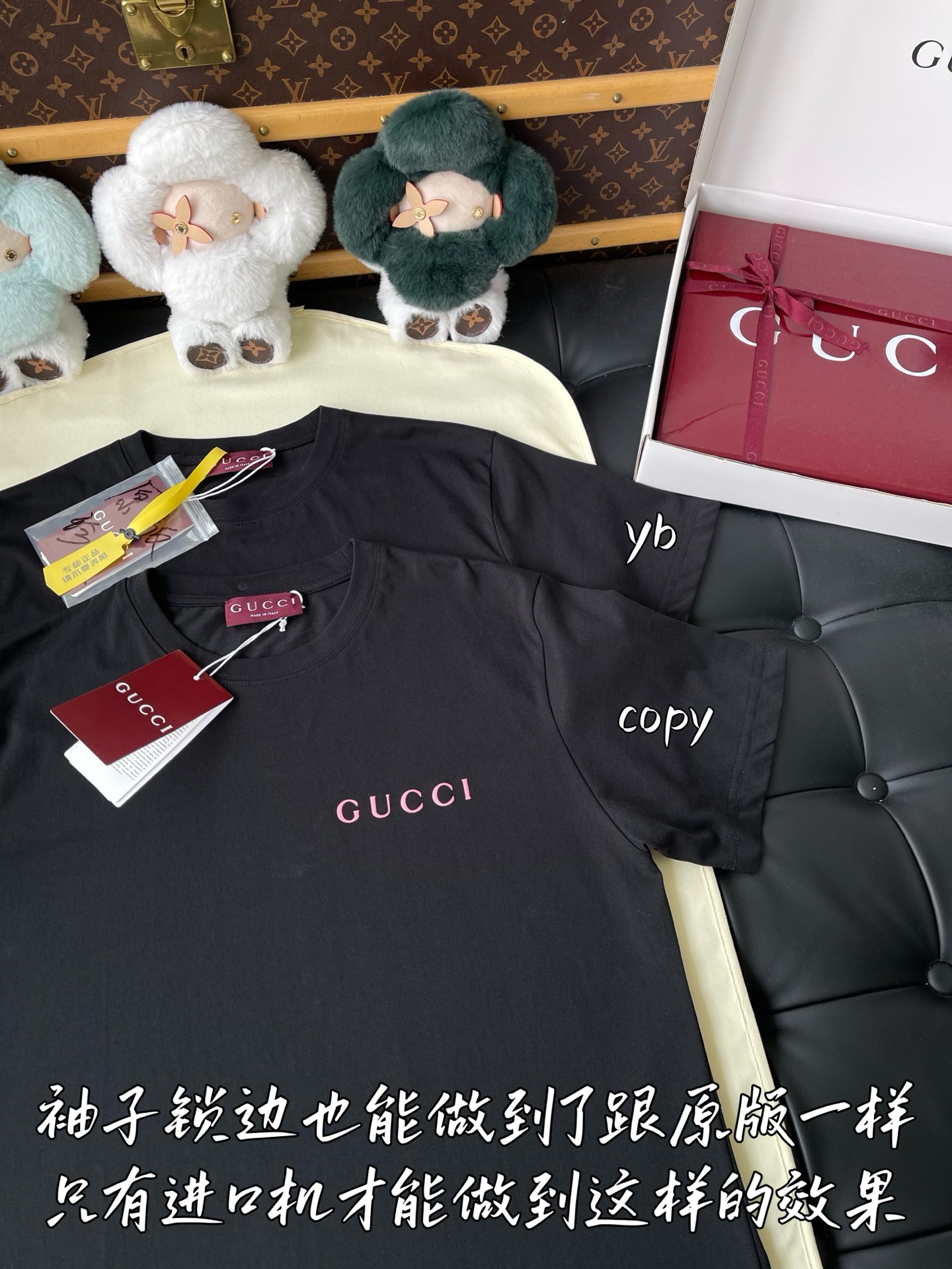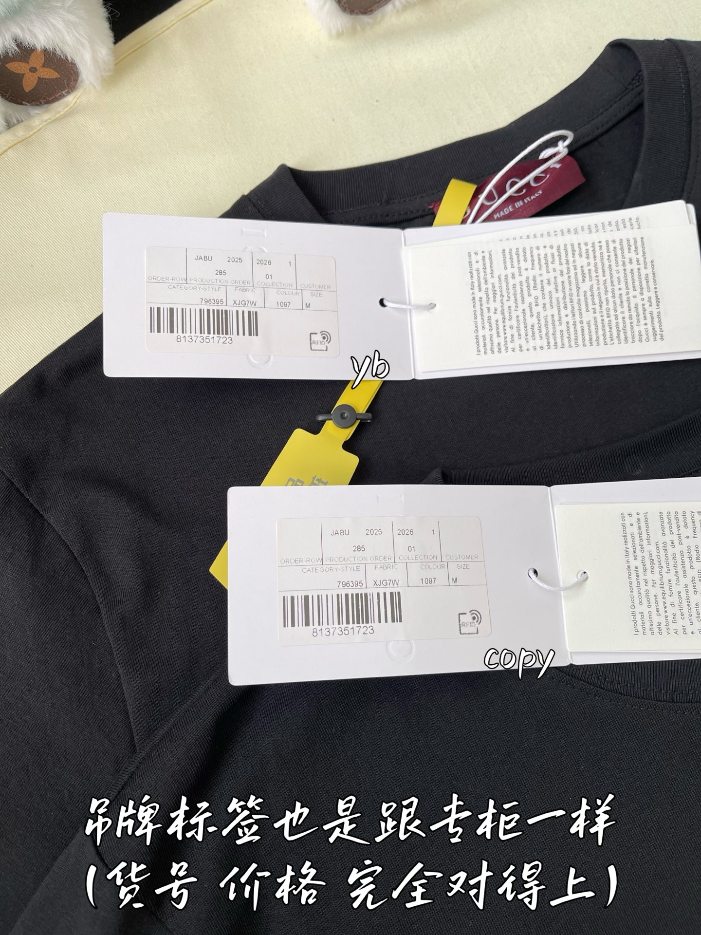 這款衣服是AAAAA 1:1 質量(非常棒). 使用了和原版一模一樣的材料. 商標部分也保持了和古奇/Gucci一樣. 圖片拍攝是實物衣服拍攝, 您所收到的實物保證和我們圖片一模一樣.