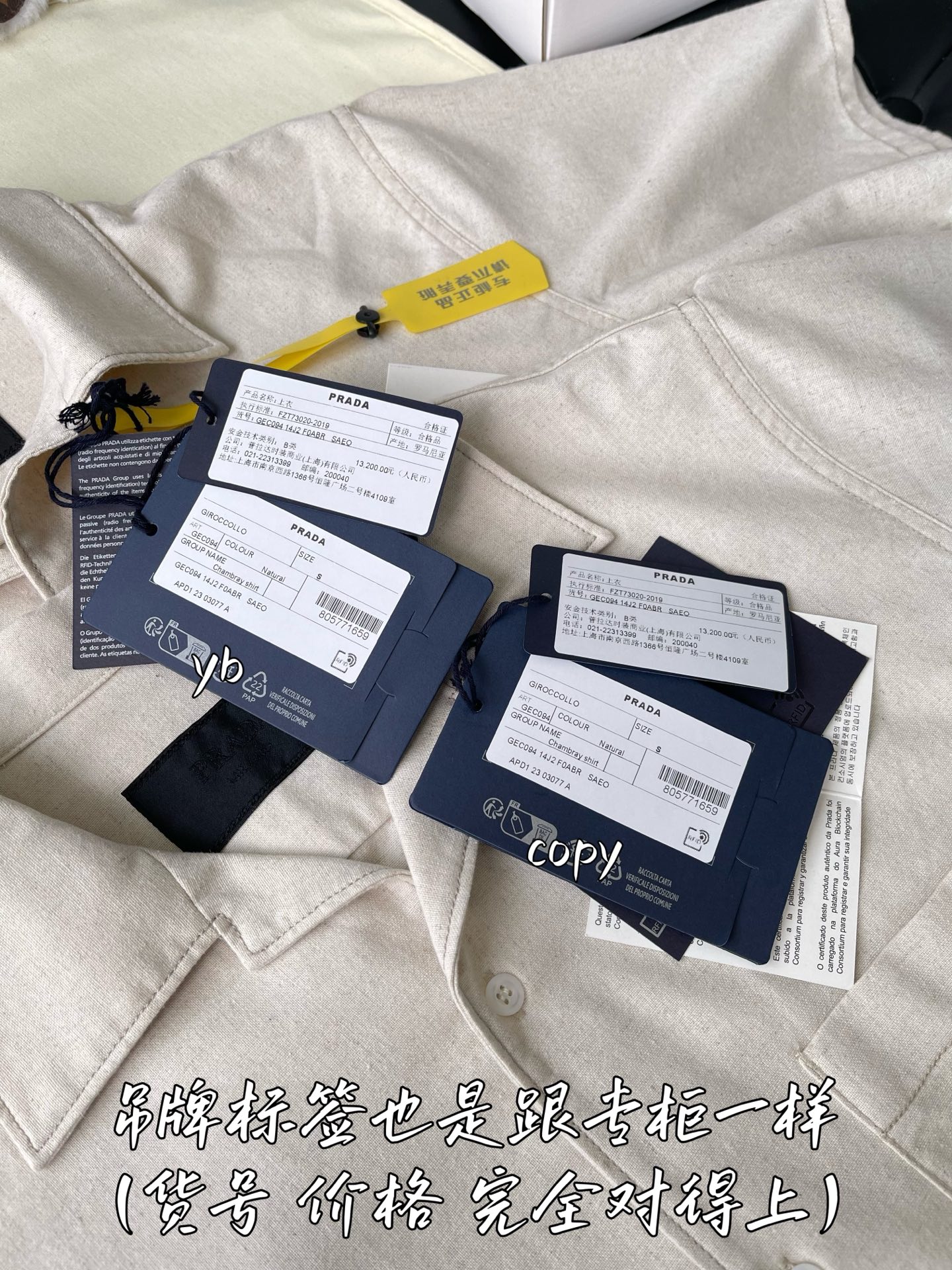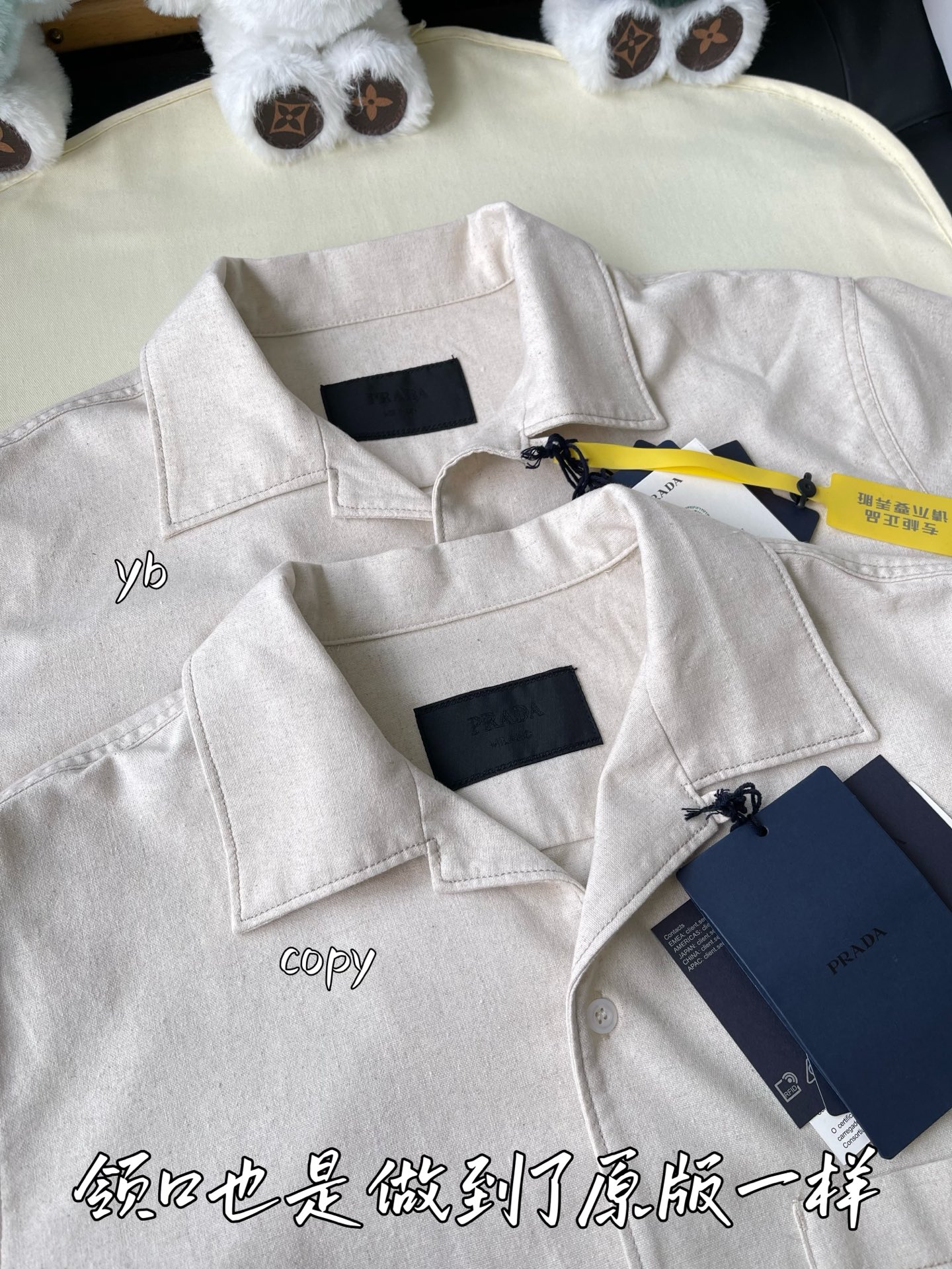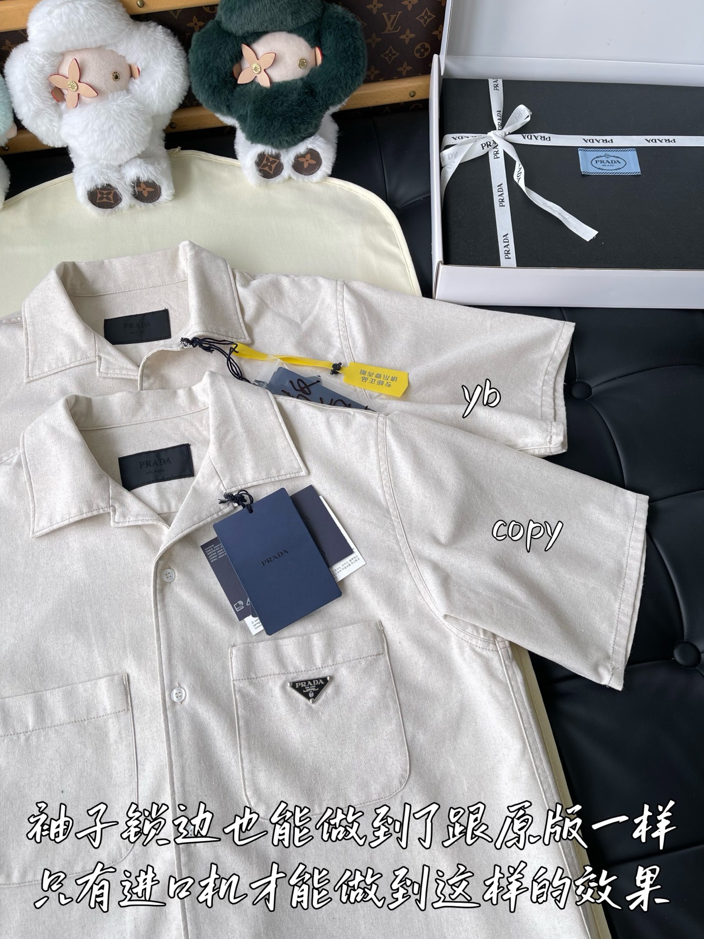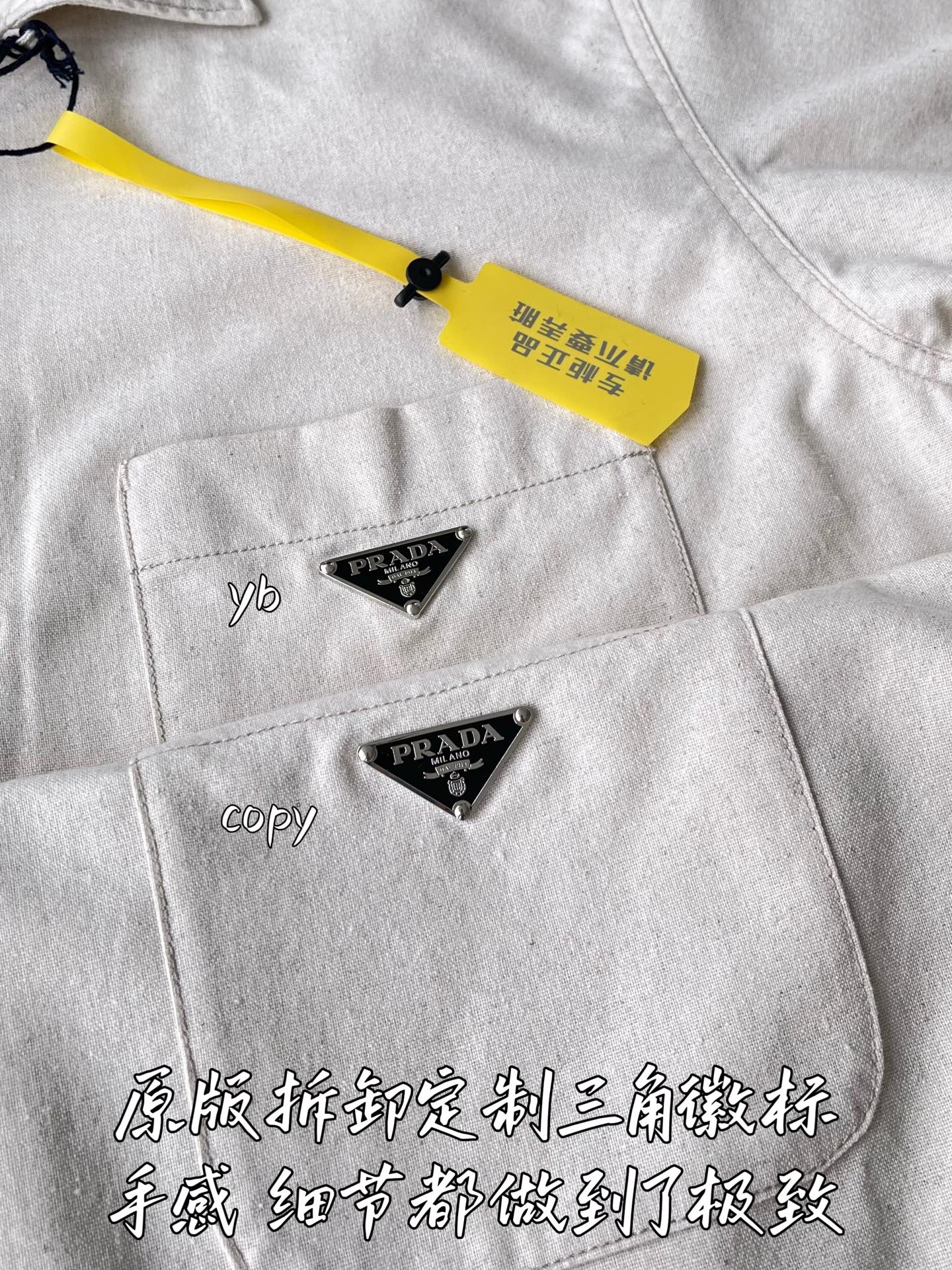這款衣服是AAAAA 1:1 質量(非常棒). 使用了和原版一模一樣的材料. 商標部分也保持了和普拉達/Prada一樣. 圖片拍攝是實物衣服拍攝, 您所收到的實物保證和我們圖片一模一樣.
