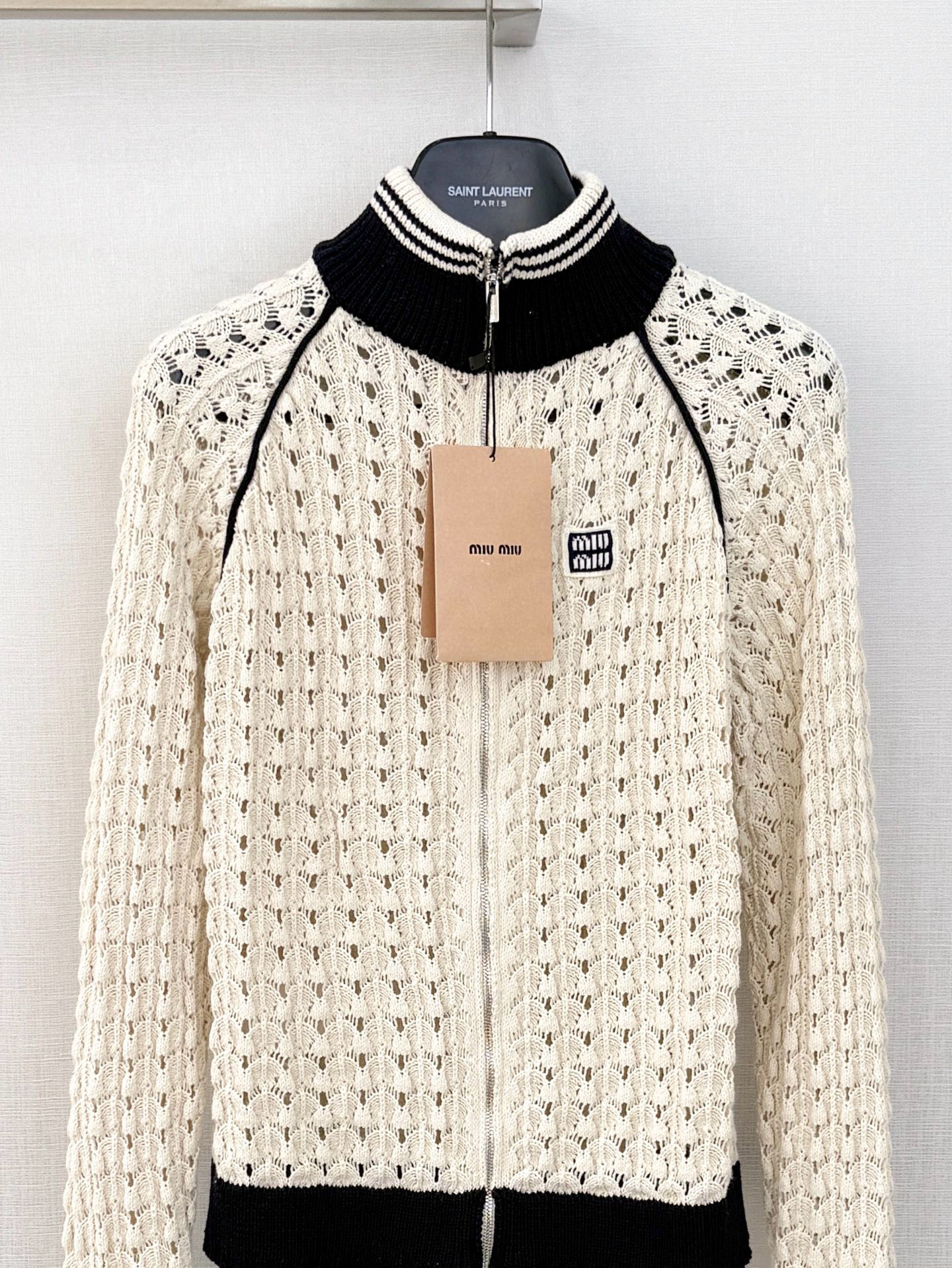 這款衣服是AAAAA 1:1 質量(非常棒). 使用了和原版一模一樣的材料. 商標部分也保持了和繆繆/Miu Miu一樣. 圖片拍攝是實物衣服拍攝, 您所收到的實物保證和我們圖片一模一樣.