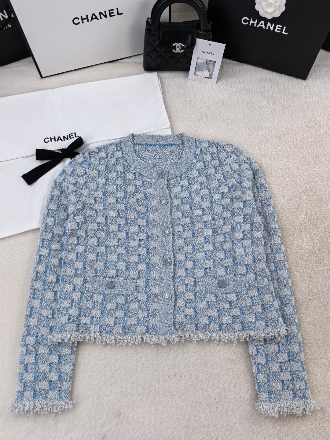 這款衣服是AAAAA 1:1 質量(非常棒). 使用了和原版一模一樣的材料. 商標部分也保持了和香奈兒/Chanel一樣. 圖片拍攝是實物衣服拍攝, 您所收到的實物保證和我們圖片一模一樣.