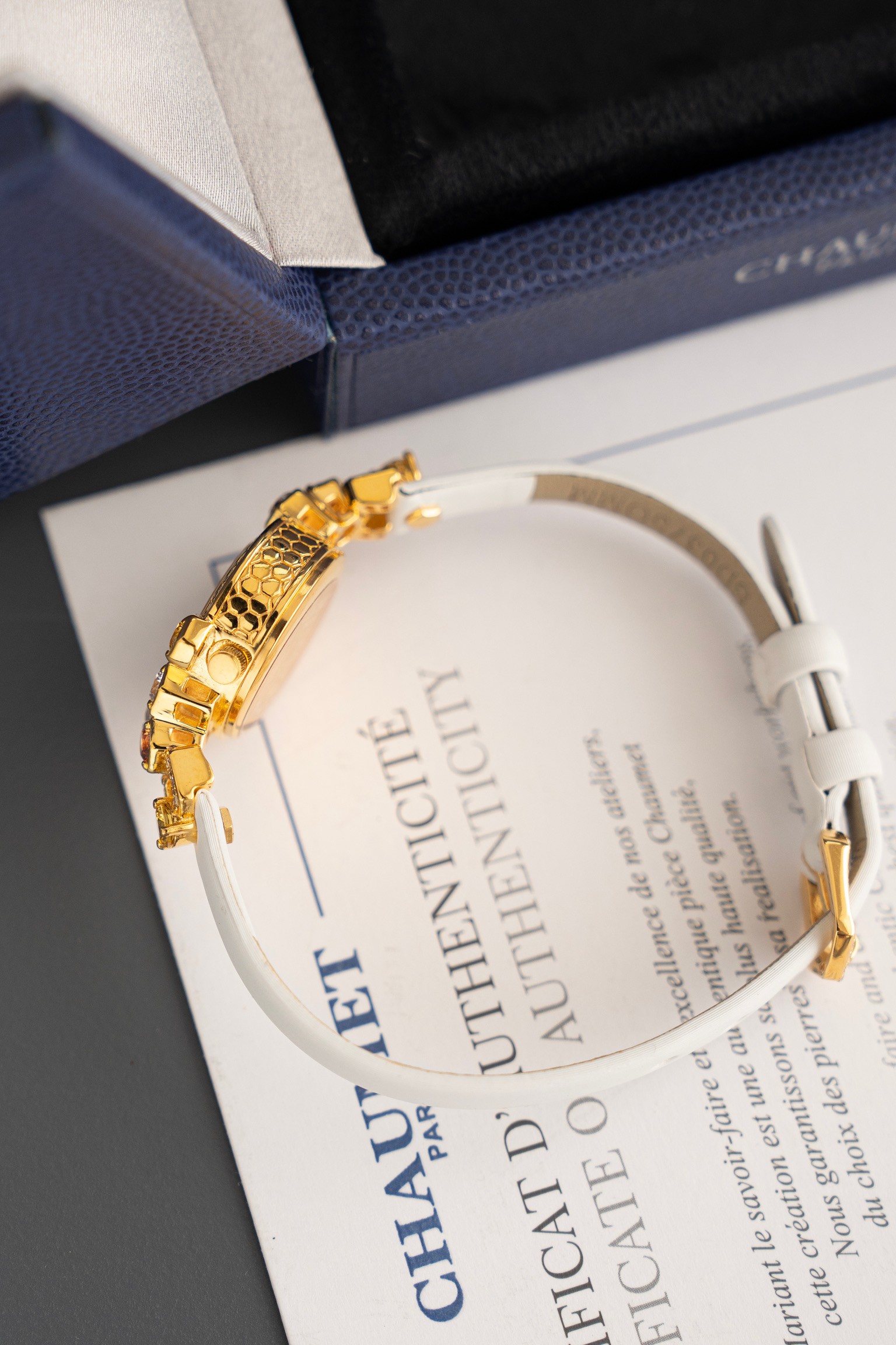 這款手錶是AAAAA 1:1 質量(非常棒). 使用了和原版一模一樣的材料. 商標部分也保持了和Chaumet一樣. 圖片拍攝是實物手錶拍攝, 您所收到的實物保證和我們圖片一模一樣.