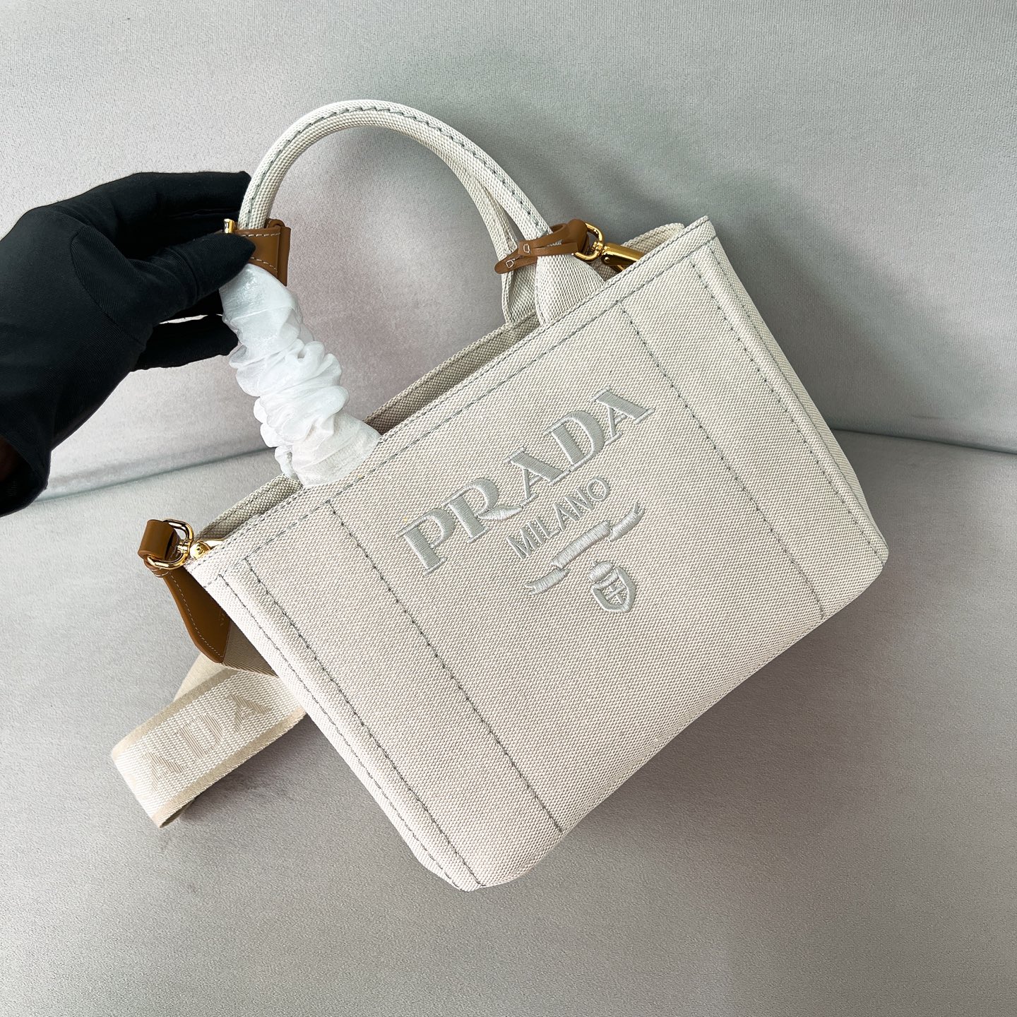 這款包包是AAAAA 1:1 質量(非常棒). 使用了和原版一模一樣的材料. 商標部分也保持了和普拉達/Prada一樣. 圖片拍攝是實物包包拍攝, 您所收到的實物保證和我們圖片一模一樣.