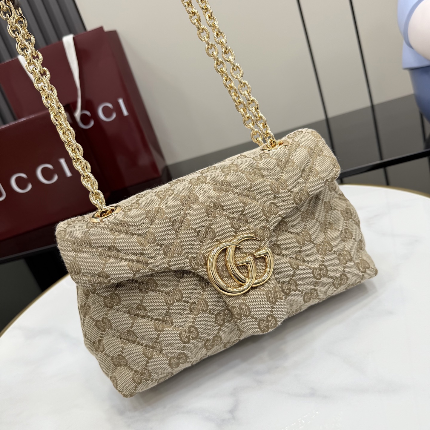 這款包包是AAAAA 1:1 質量(非常棒). 使用了和原版一模一樣的材料. 商標部分也保持了和古奇/Gucci一樣. 圖片拍攝是實物包包拍攝, 您所收到的實物保證和我們圖片一模一樣.