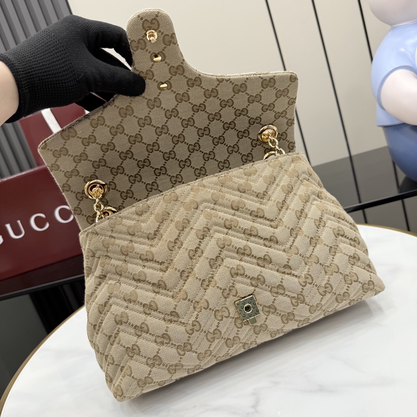 這款包包是AAAAA 1:1 質量(非常棒). 使用了和原版一模一樣的材料. 商標部分也保持了和古奇/Gucci一樣. 圖片拍攝是實物包包拍攝, 您所收到的實物保證和我們圖片一模一樣.