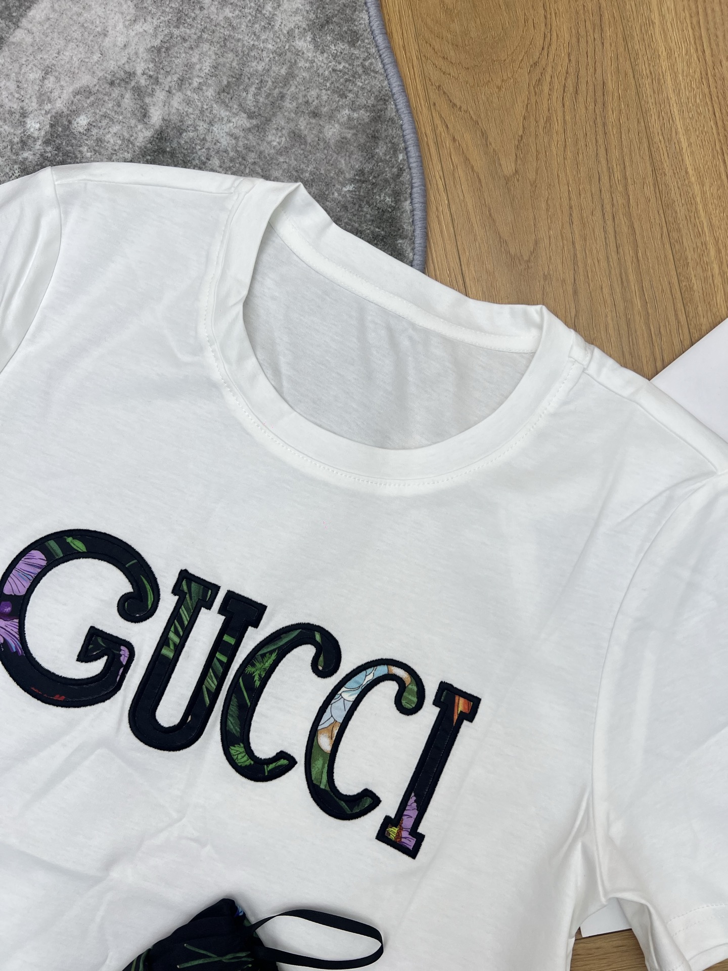 這款衣服是AAAAA 1:1 質量(非常棒). 使用了和原版一模一樣的材料. 商標部分也保持了和古奇/Gucci一樣. 圖片拍攝是實物衣服拍攝, 您所收到的實物保證和我們圖片一模一樣.
