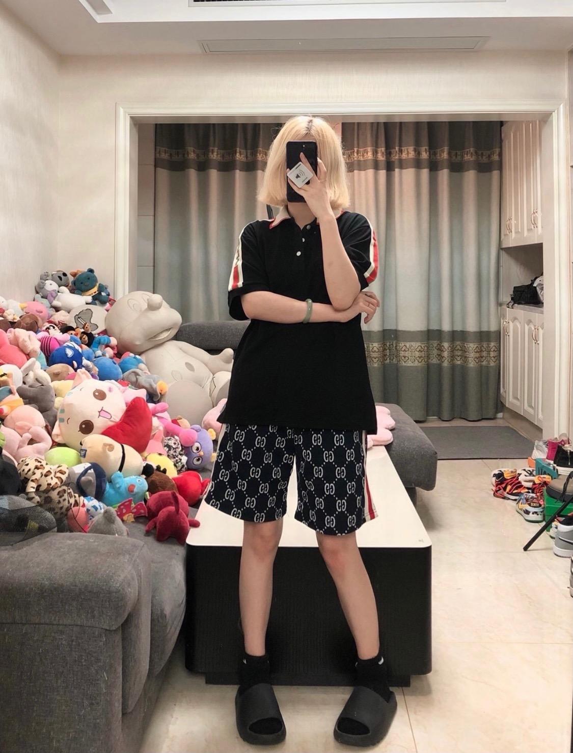 這款衣服是AAAAA 1:1 質量(非常棒). 使用了和原版一模一樣的材料. 商標部分也保持了和古奇/Gucci一樣. 圖片拍攝是實物衣服拍攝, 您所收到的實物保證和我們圖片一模一樣.
