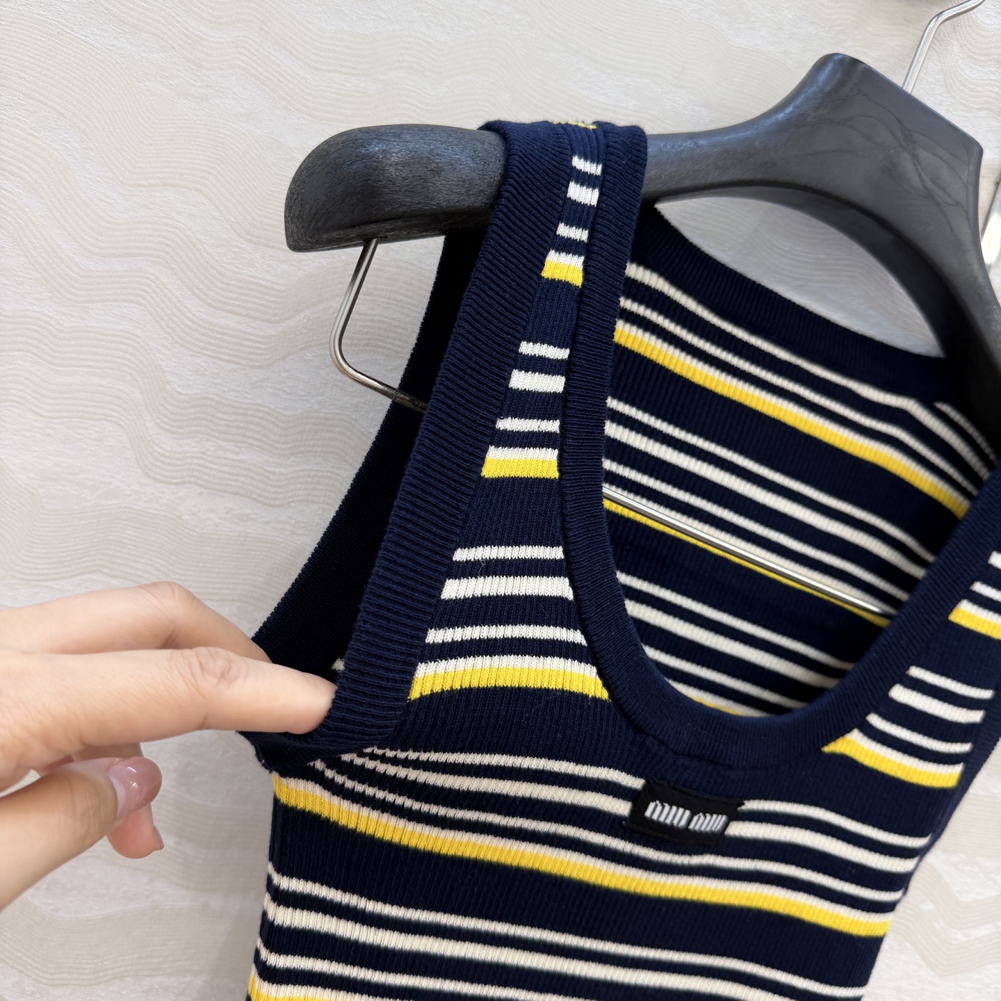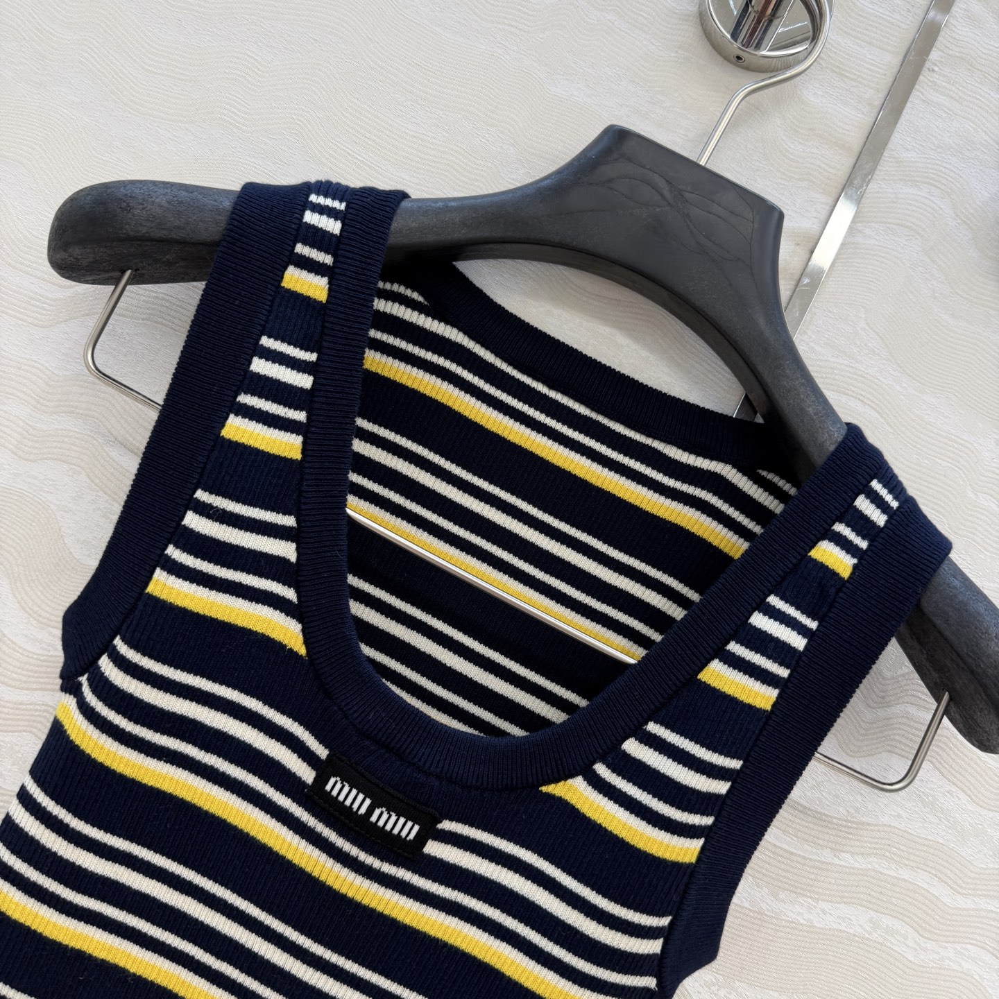 這款衣服是AAAAA 1:1 質量(非常棒). 使用了和原版一模一樣的材料. 商標部分也保持了和繆繆/Miu Miu一樣. 圖片拍攝是實物衣服拍攝, 您所收到的實物保證和我們圖片一模一樣.