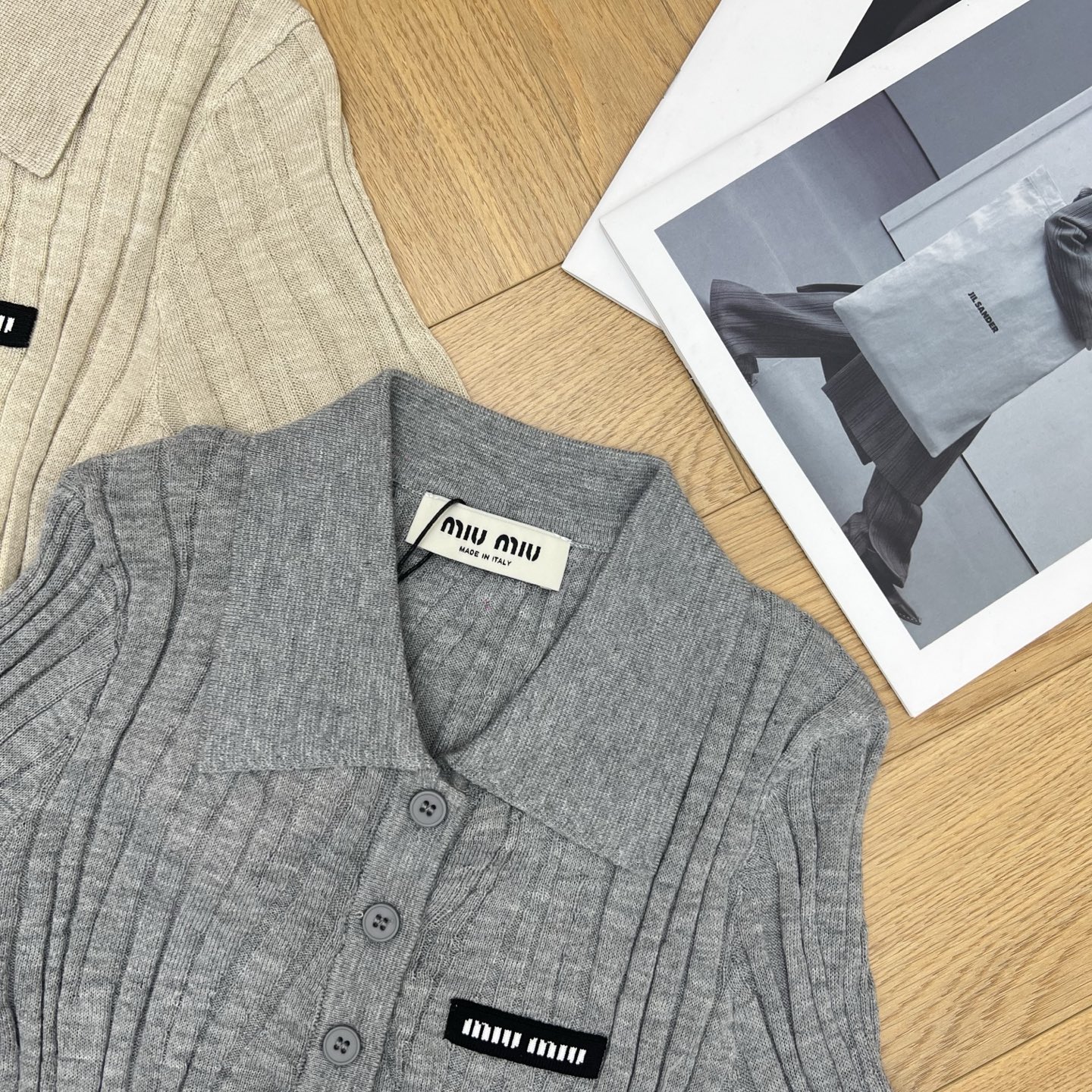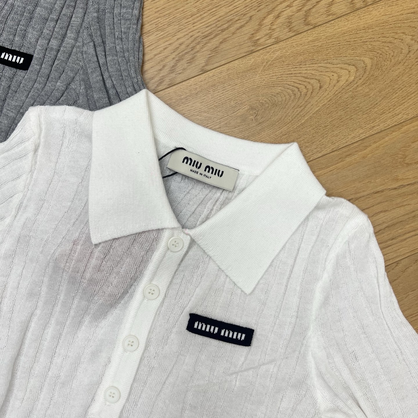 這款衣服是AAAAA 1:1 質量(非常棒). 使用了和原版一模一樣的材料. 商標部分也保持了和繆繆/Miu Miu一樣. 圖片拍攝是實物衣服拍攝, 您所收到的實物保證和我們圖片一模一樣.