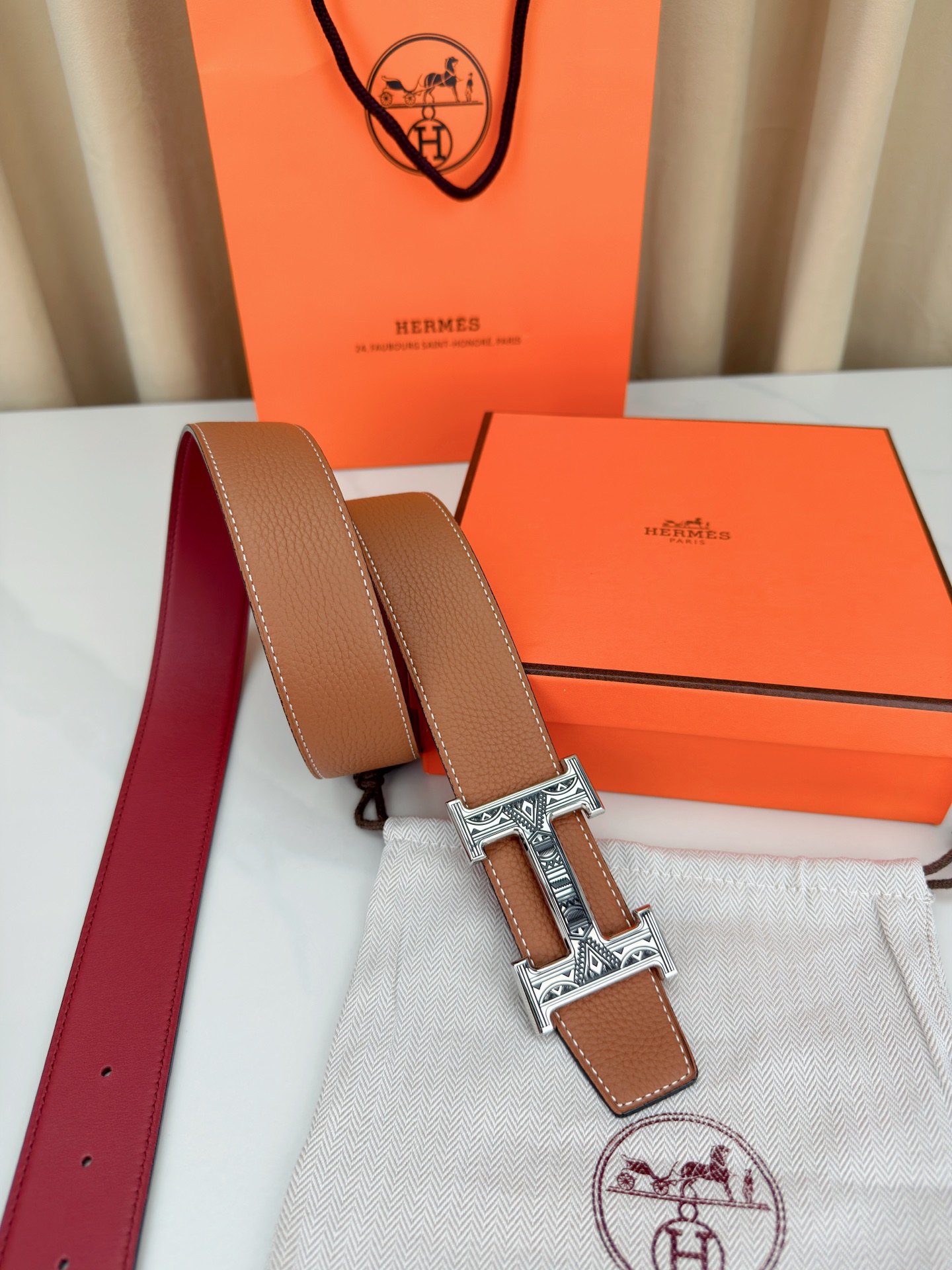 這款皮帶是AAAAA 1:1 質量(非常棒). 使用了和原版一模一樣的材料. 商標部分也保持了和愛馬仕/Hermes一樣. 圖片拍攝是實物皮帶拍攝, 您所收到的實物保證和我們圖片一模一樣.