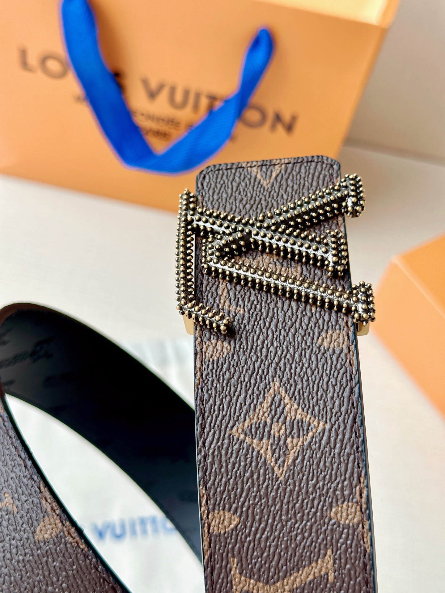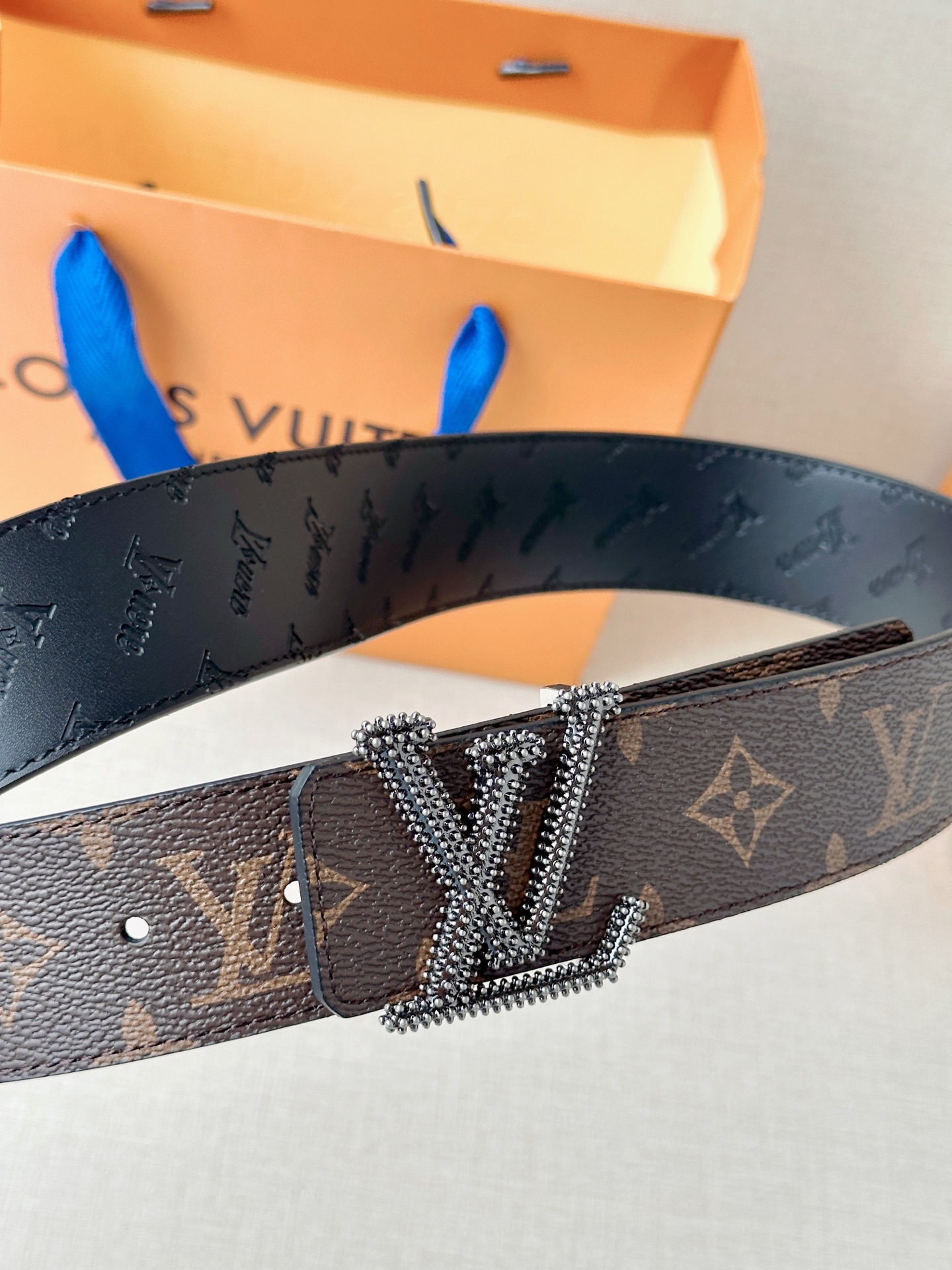 這款皮帶是AAAAA 1:1 質量(非常棒). 使用了和原版一模一樣的材料. 商標部分也保持了和路易威登/Louis Vuitton一樣. 圖片拍攝是實物皮帶拍攝, 您所收到的實物保證和我們圖片一模一樣.