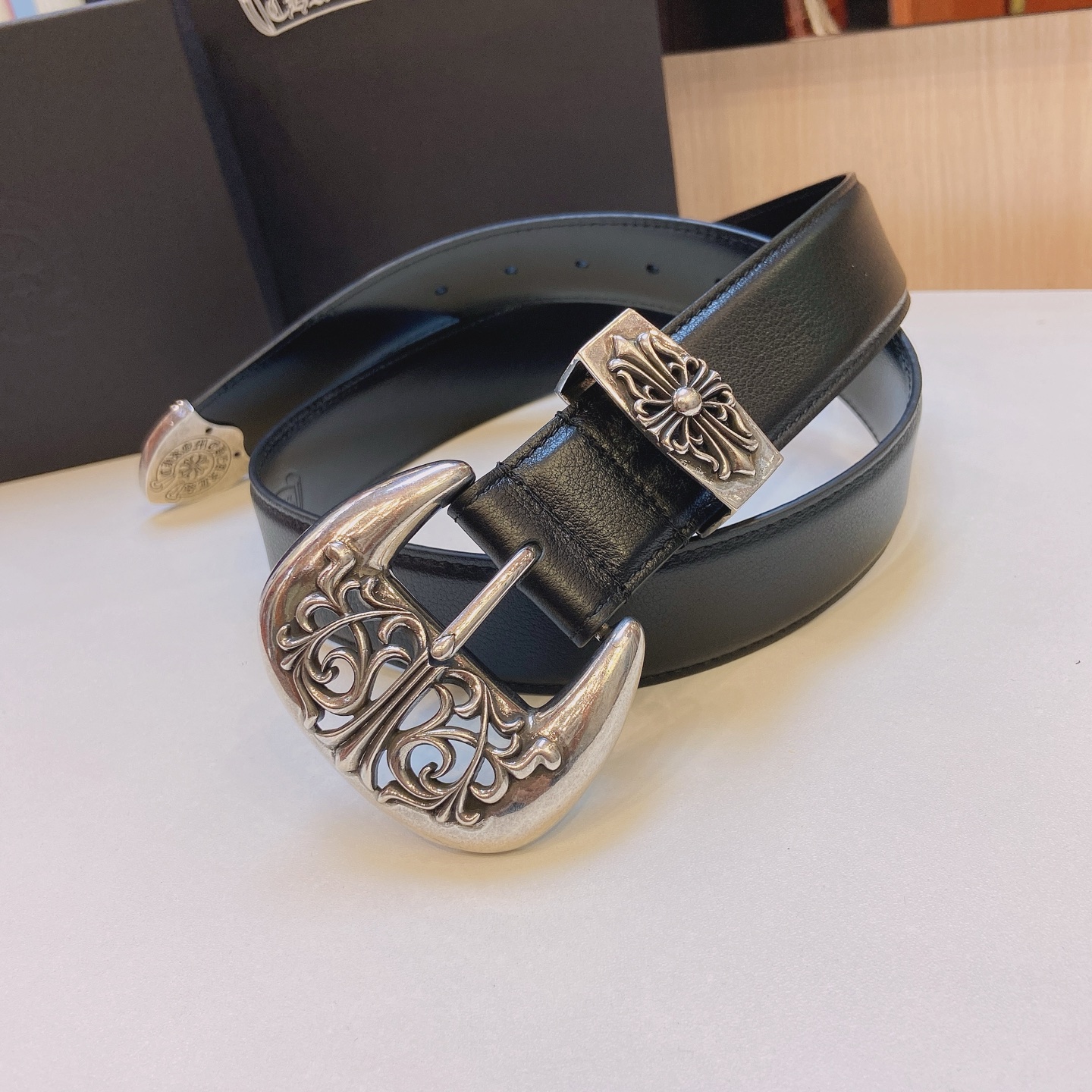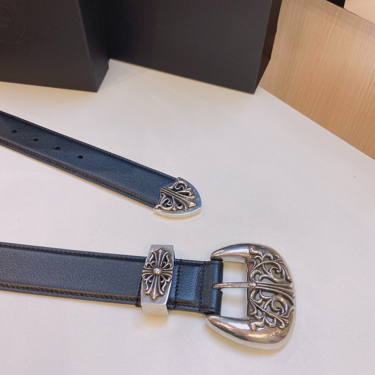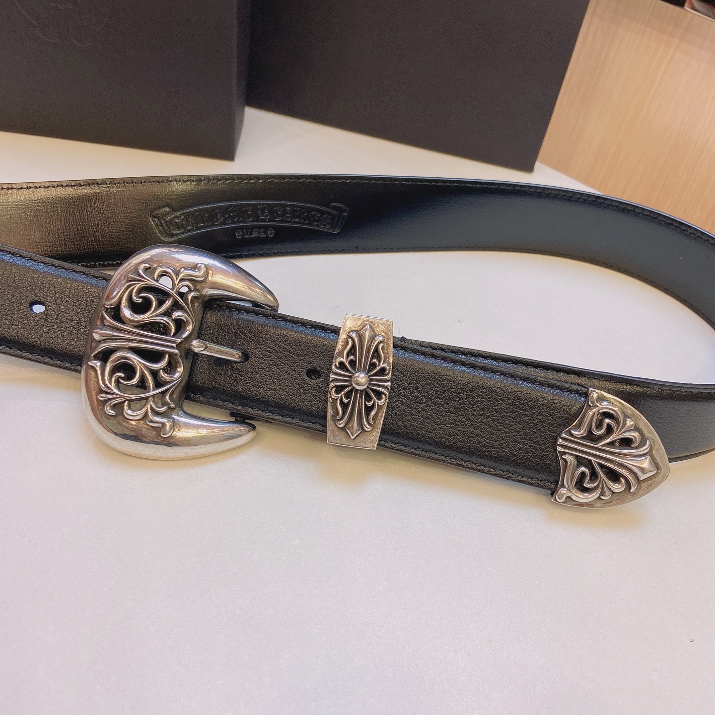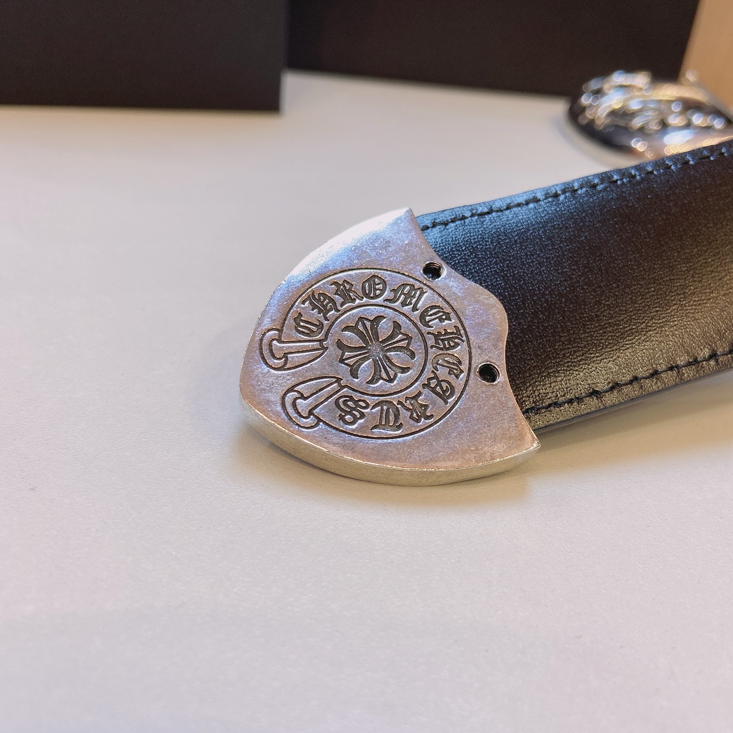 這款皮帶是AAAAA 1:1 質量(非常棒). 使用了和原版一模一樣的材料. 商標部分也保持了和鉻心/Chrome Hearts一樣. 圖片拍攝是實物皮帶拍攝, 您所收到的實物保證和我們圖片一模一樣.
