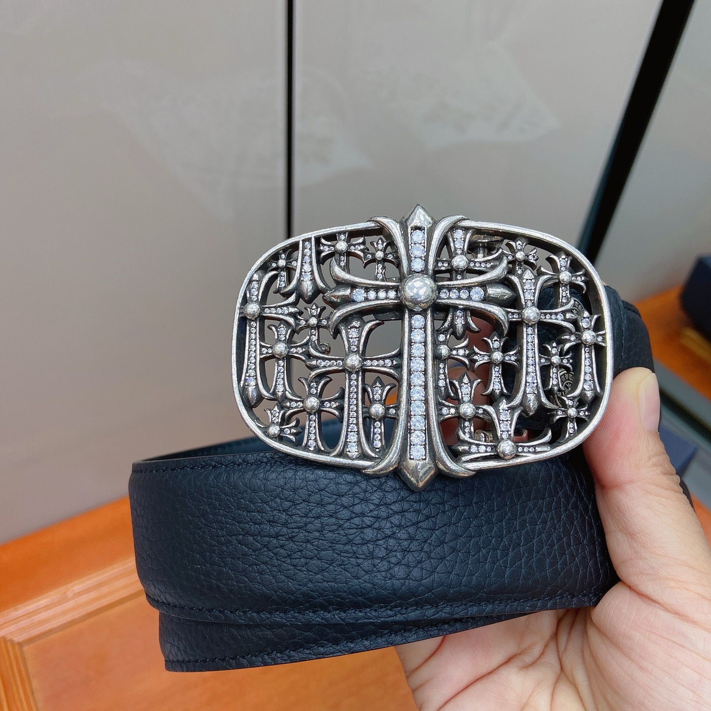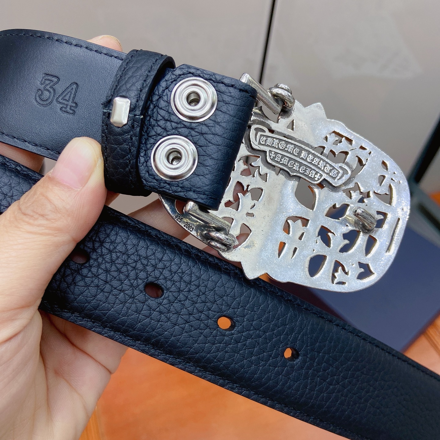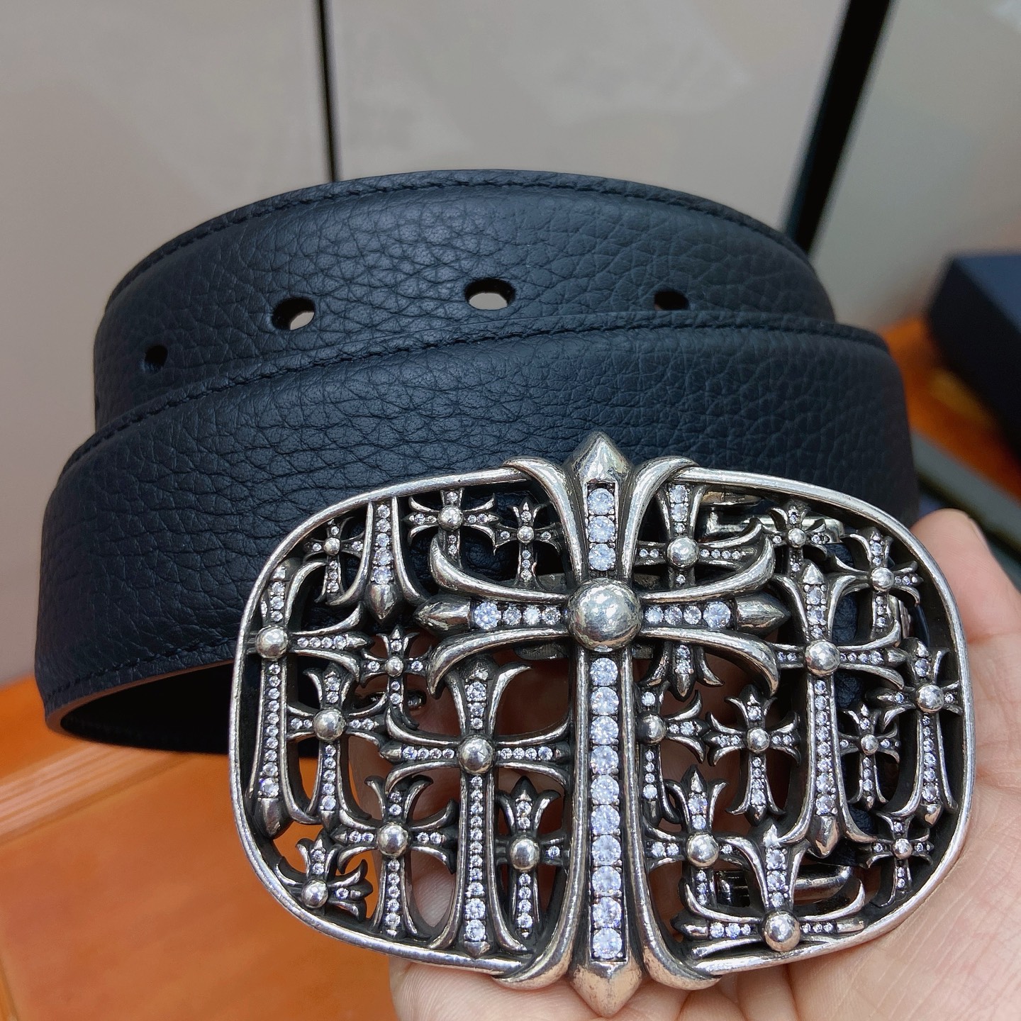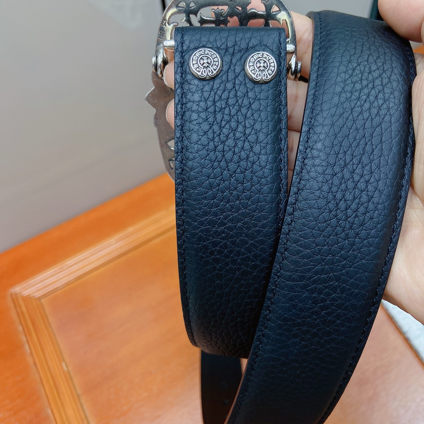 這款皮帶是AAAAA 1:1 質量(非常棒). 使用了和原版一模一樣的材料. 商標部分也保持了和鉻心/Chrome Hearts一樣. 圖片拍攝是實物皮帶拍攝, 您所收到的實物保證和我們圖片一模一樣.