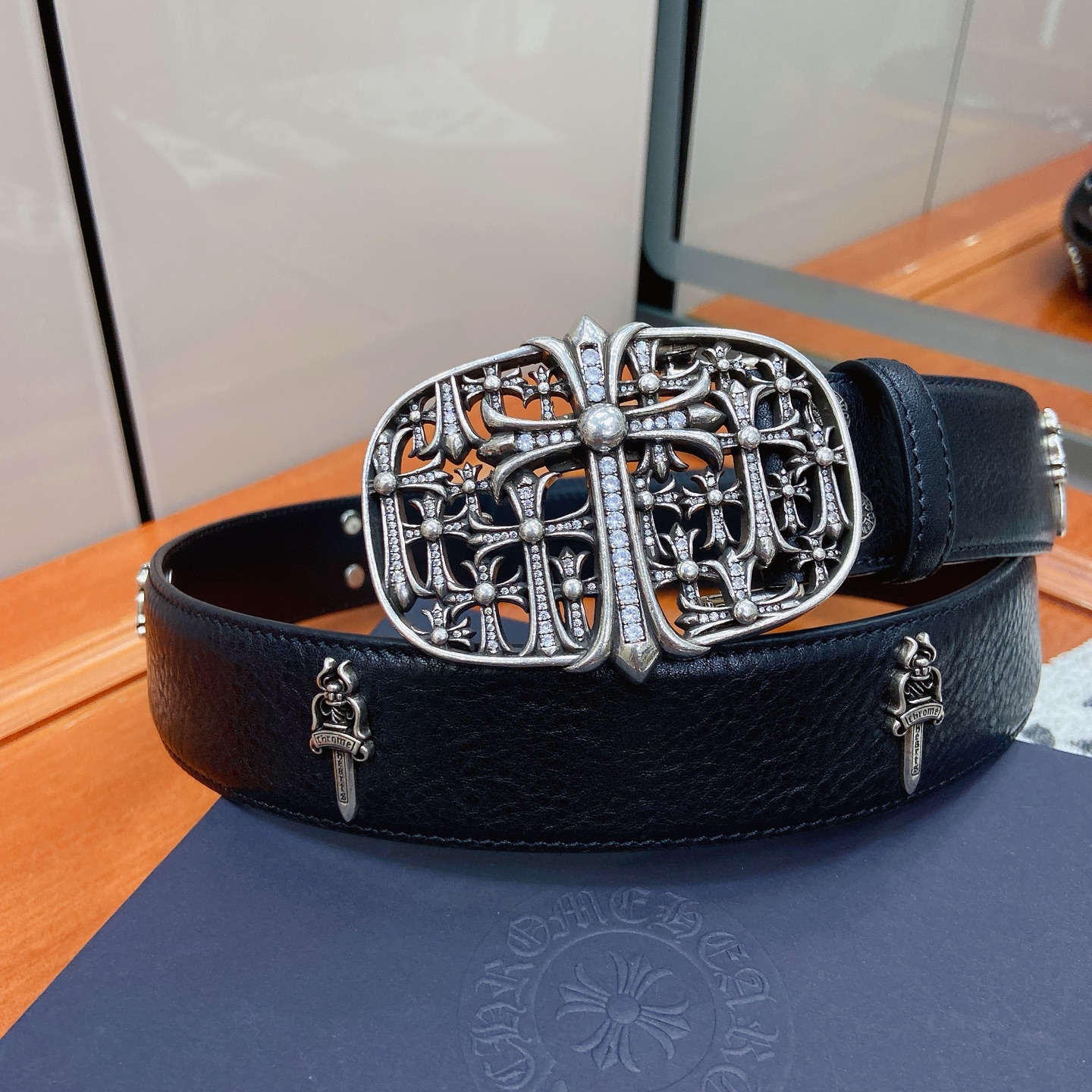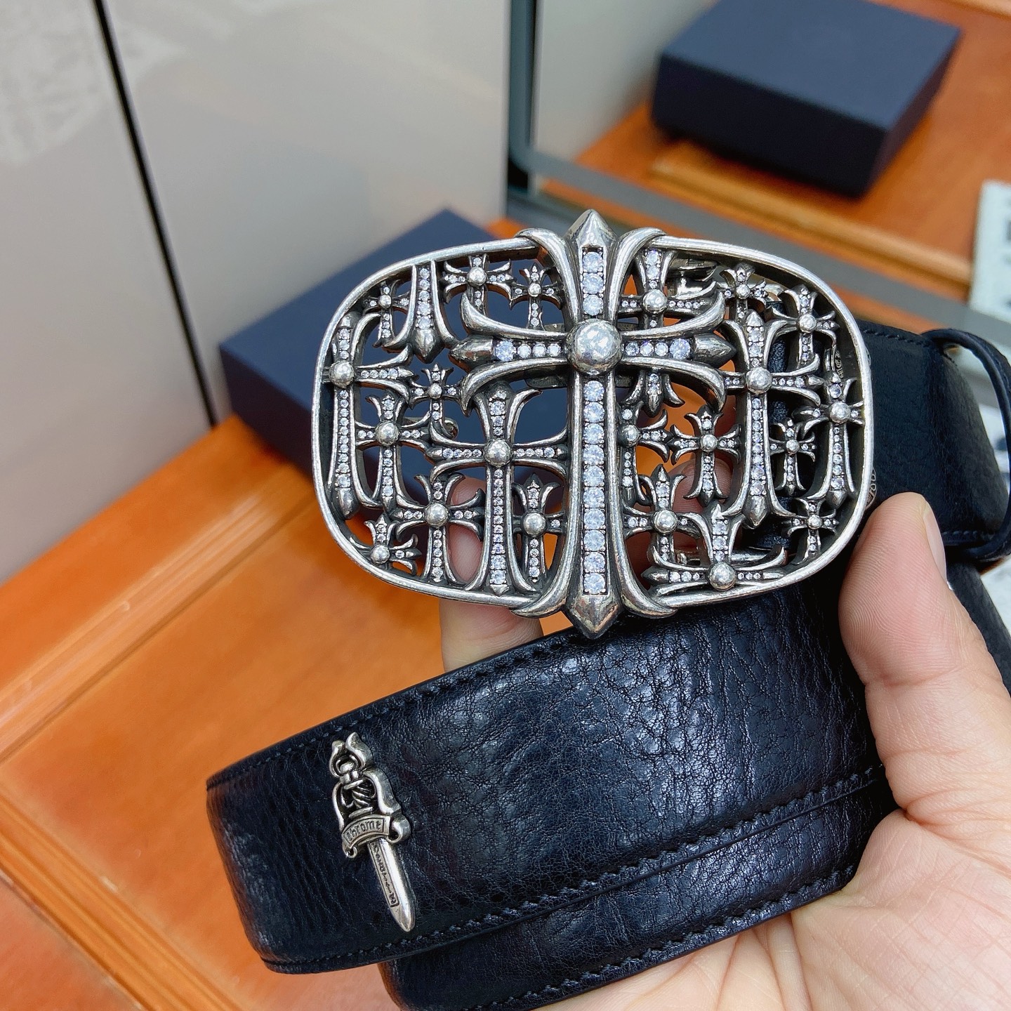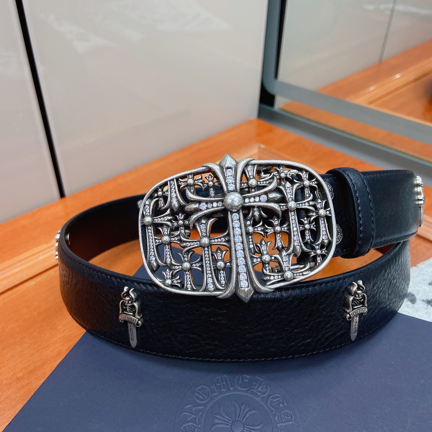 這款皮帶是AAAAA 1:1 質量(非常棒). 使用了和原版一模一樣的材料. 商標部分也保持了和鉻心/Chrome Hearts一樣. 圖片拍攝是實物皮帶拍攝, 您所收到的實物保證和我們圖片一模一樣.