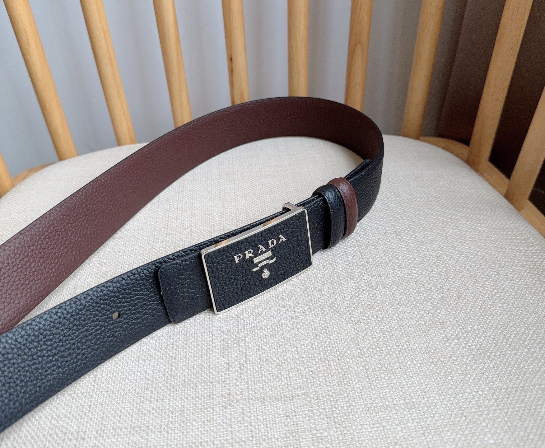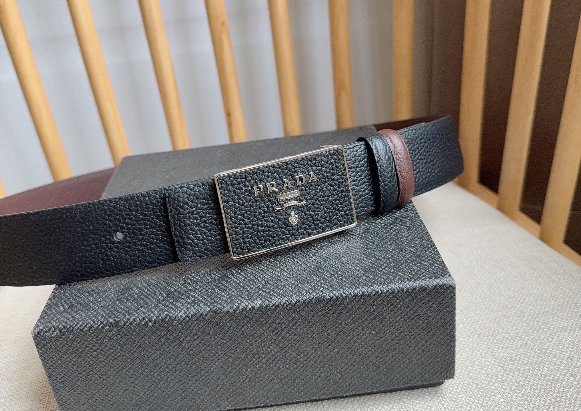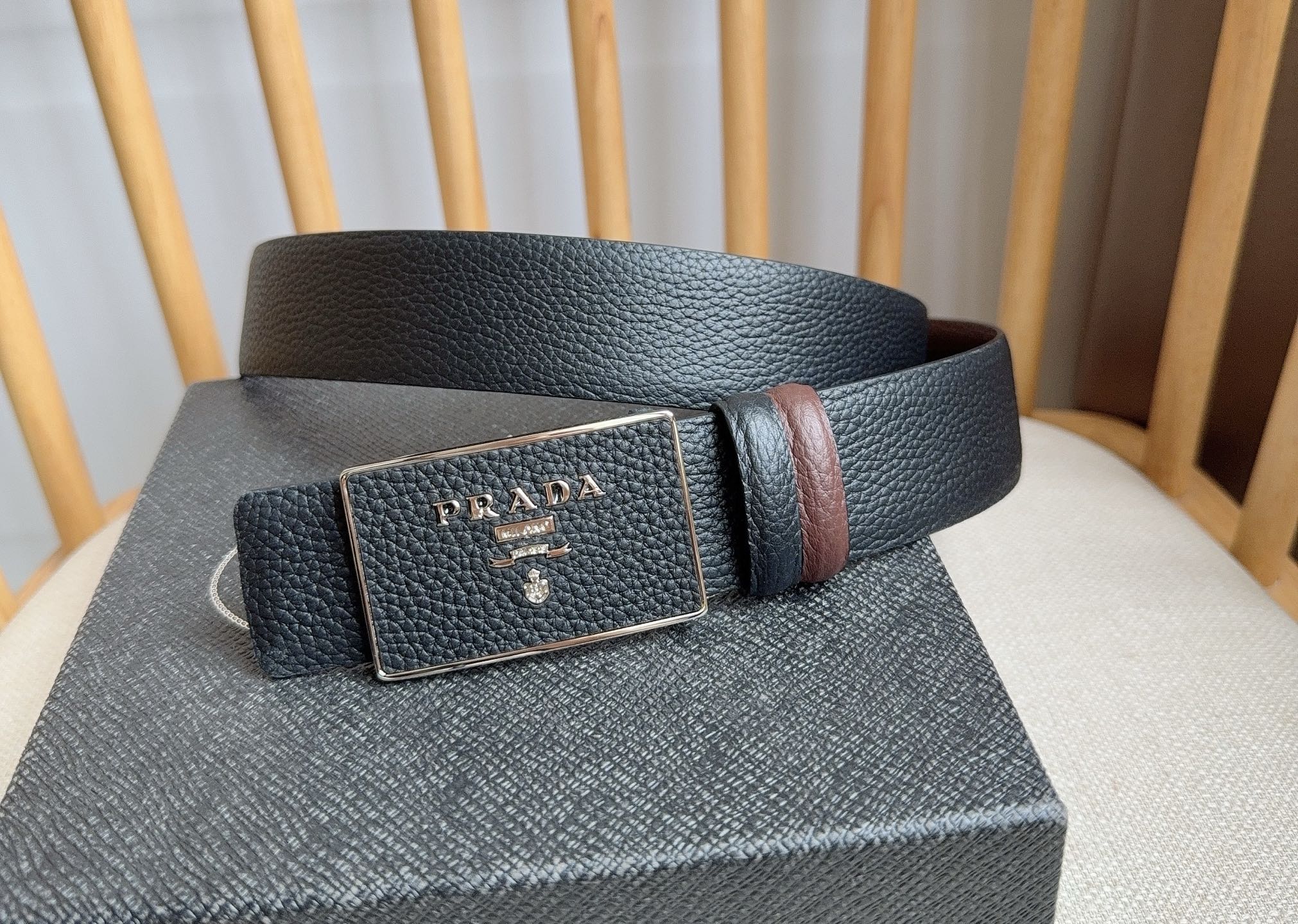 這款皮帶是AAAAA 1:1 質量(非常棒). 使用了和原版一模一樣的材料. 商標部分也保持了和普拉達/Prada一樣. 圖片拍攝是實物皮帶拍攝, 您所收到的實物保證和我們圖片一模一樣.