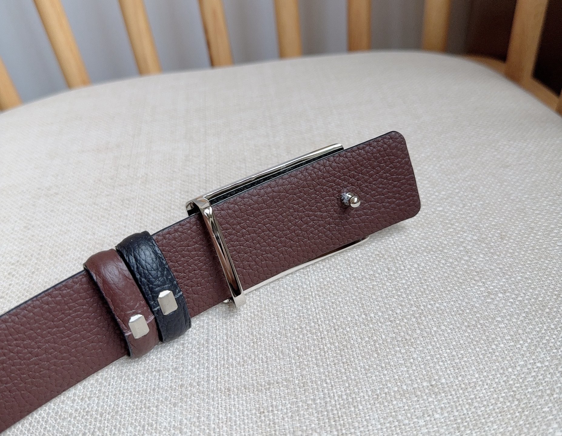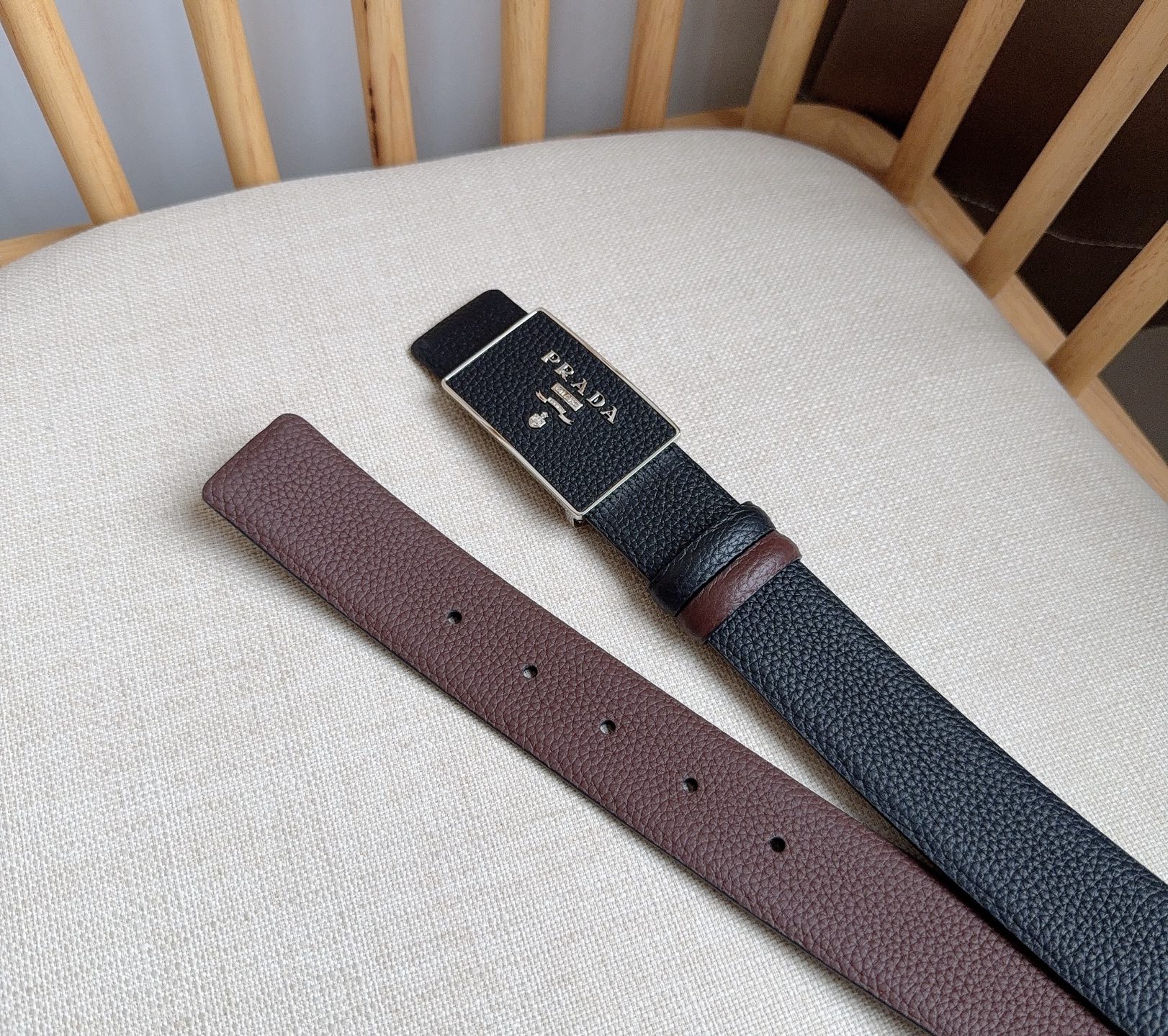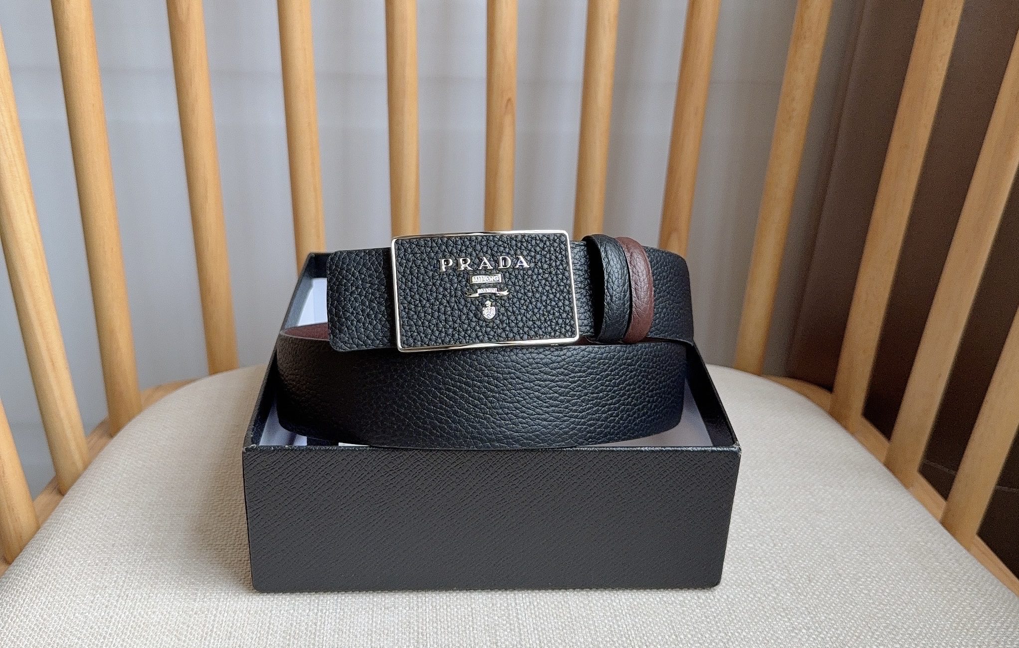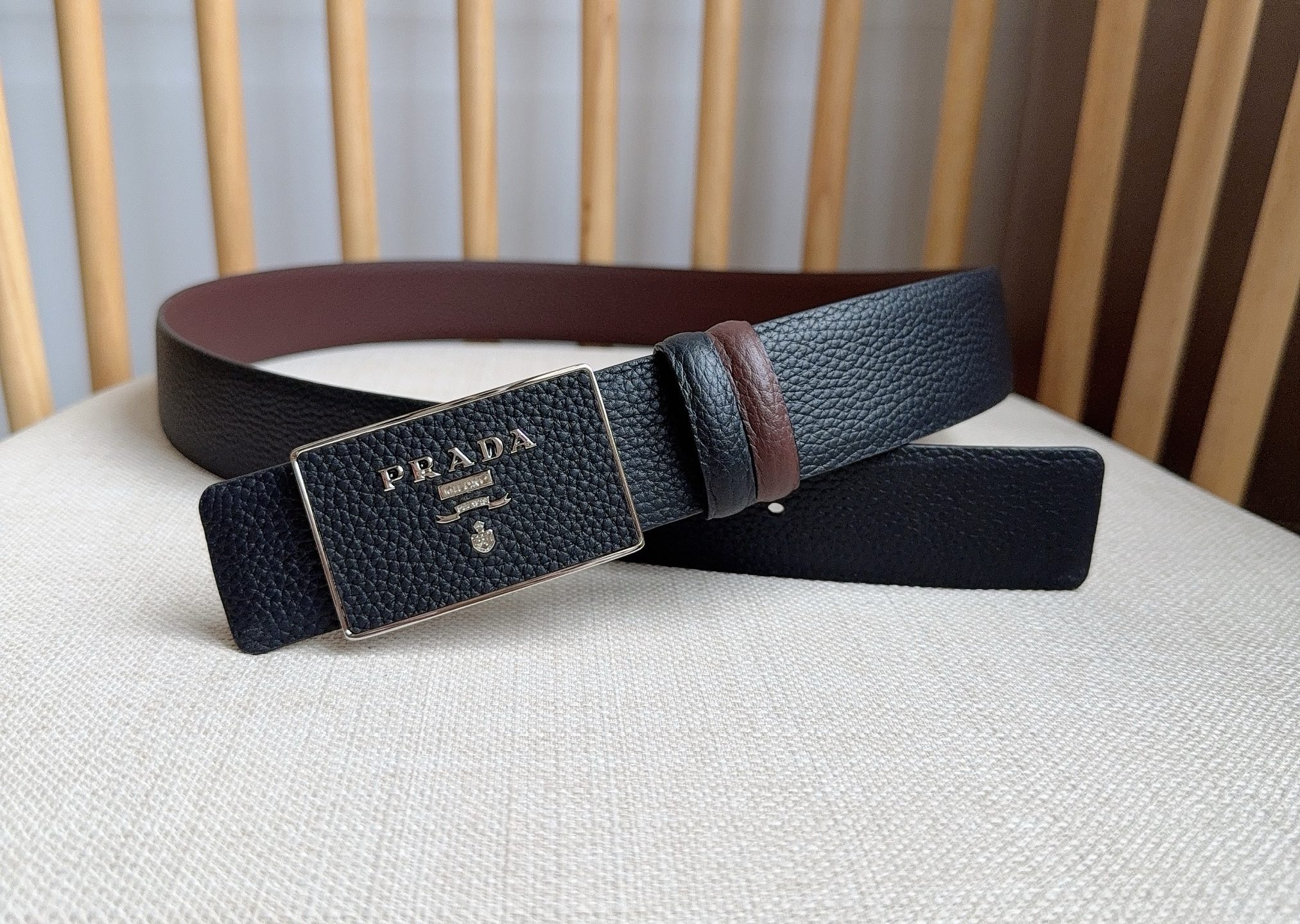 這款皮帶是AAAAA 1:1 質量(非常棒). 使用了和原版一模一樣的材料. 商標部分也保持了和普拉達/Prada一樣. 圖片拍攝是實物皮帶拍攝, 您所收到的實物保證和我們圖片一模一樣.
