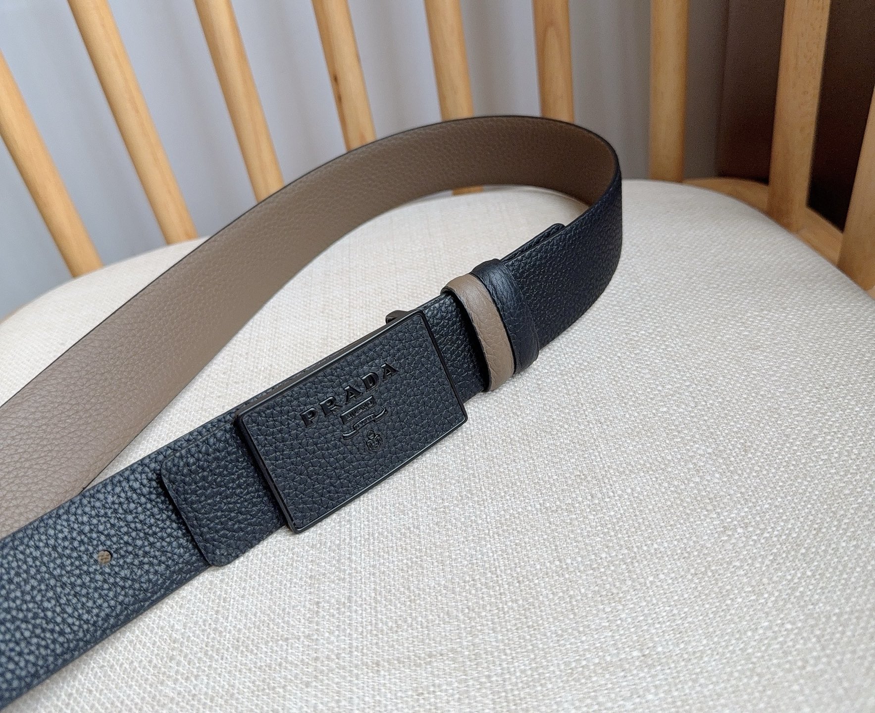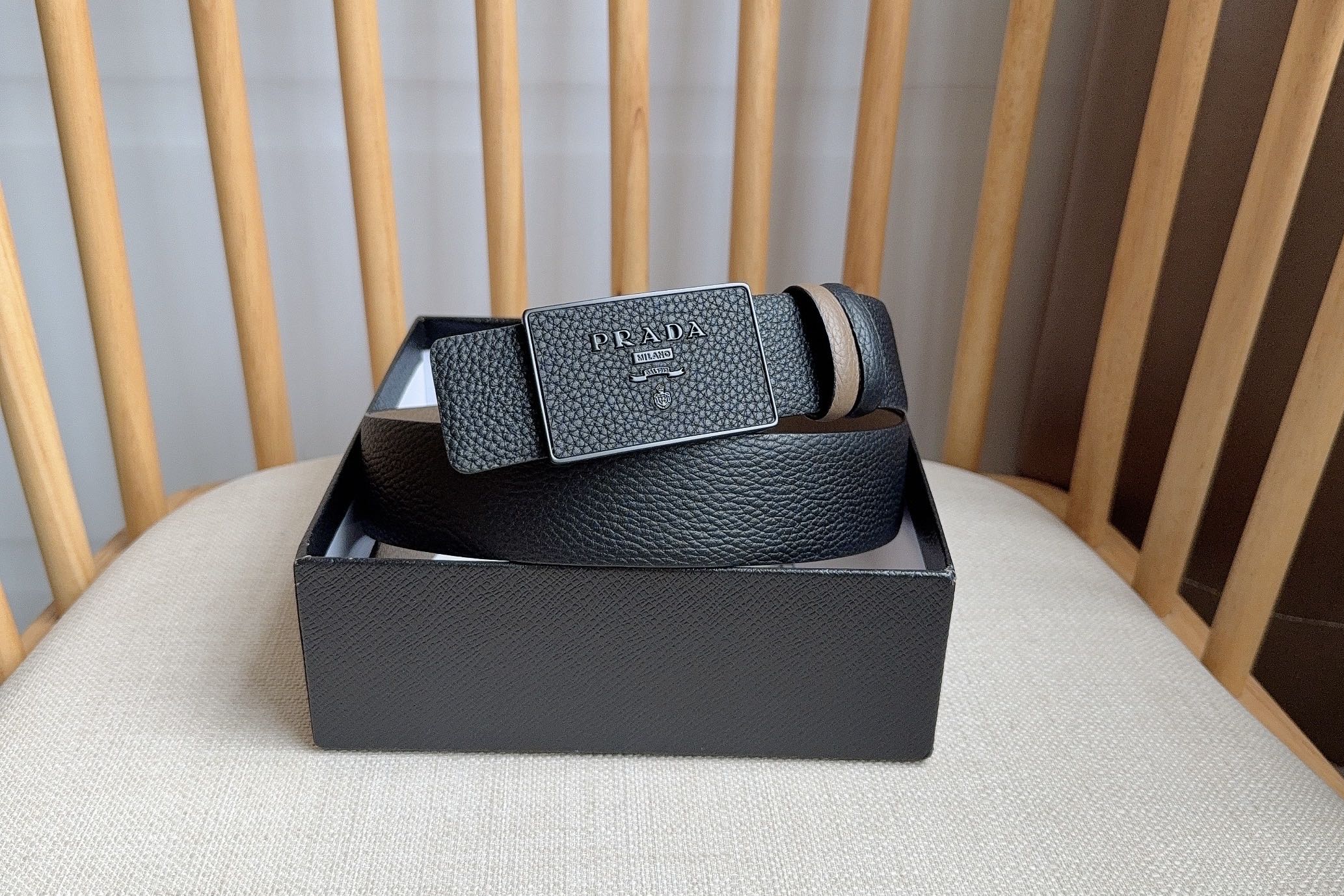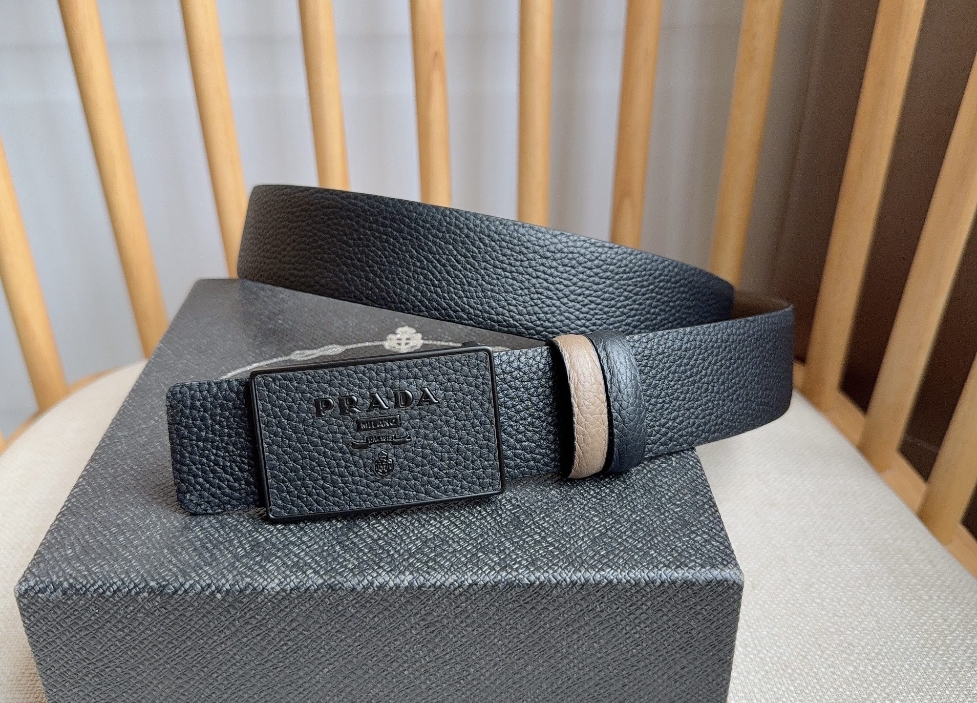 這款皮帶是AAAAA 1:1 質量(非常棒). 使用了和原版一模一樣的材料. 商標部分也保持了和普拉達/Prada一樣. 圖片拍攝是實物皮帶拍攝, 您所收到的實物保證和我們圖片一模一樣.