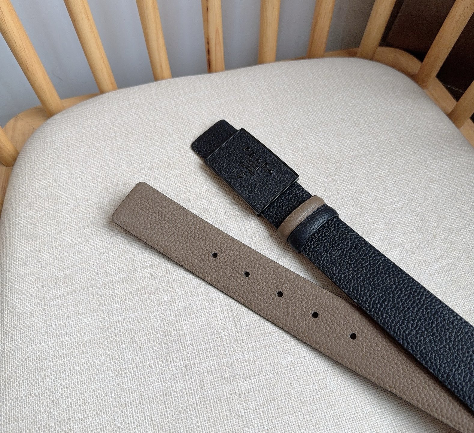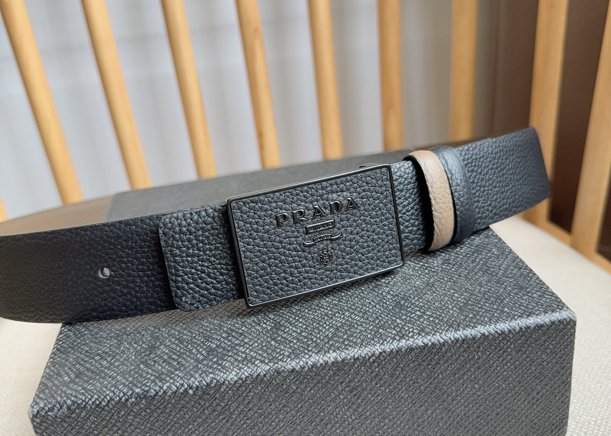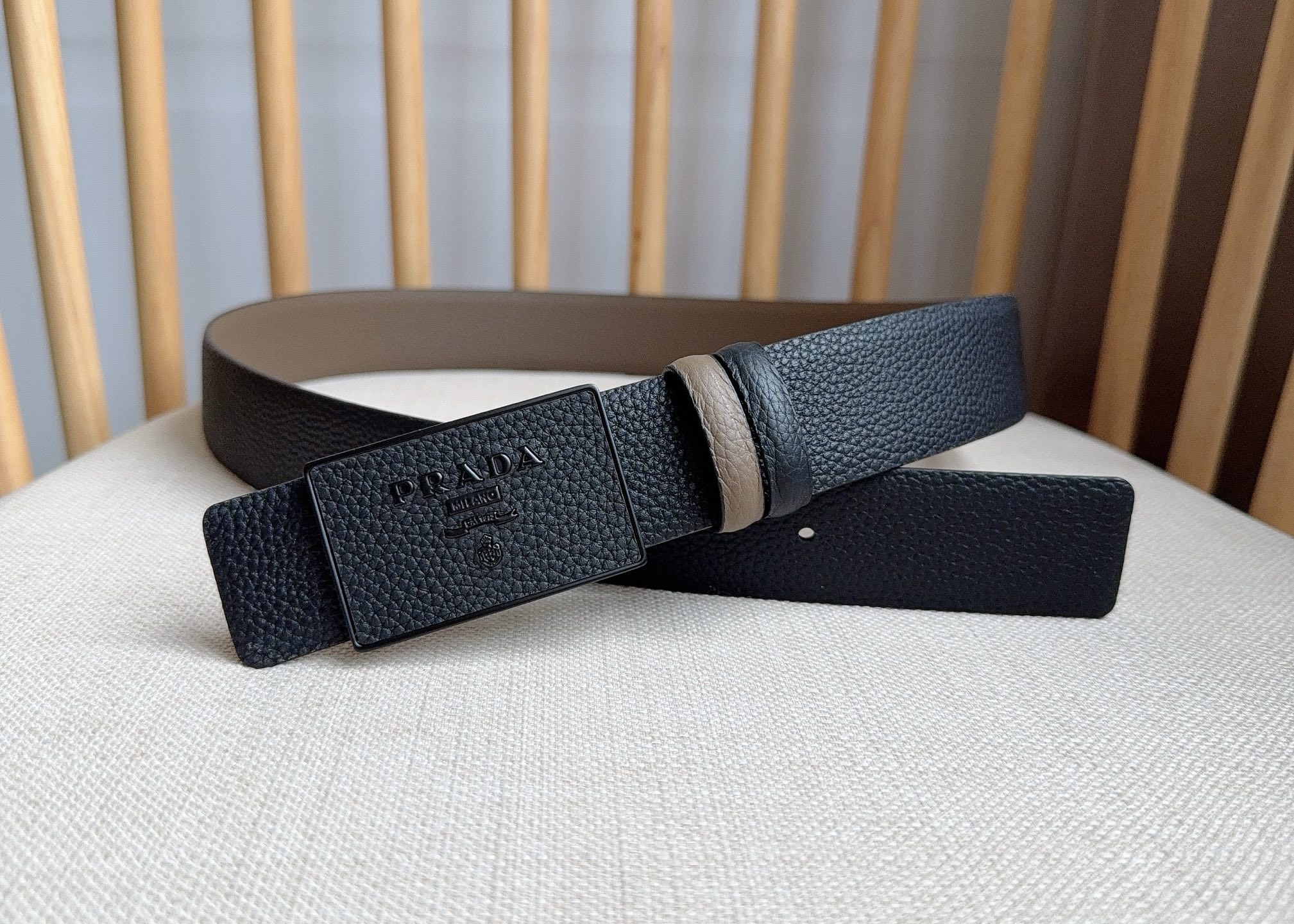 這款皮帶是AAAAA 1:1 質量(非常棒). 使用了和原版一模一樣的材料. 商標部分也保持了和普拉達/Prada一樣. 圖片拍攝是實物皮帶拍攝, 您所收到的實物保證和我們圖片一模一樣.