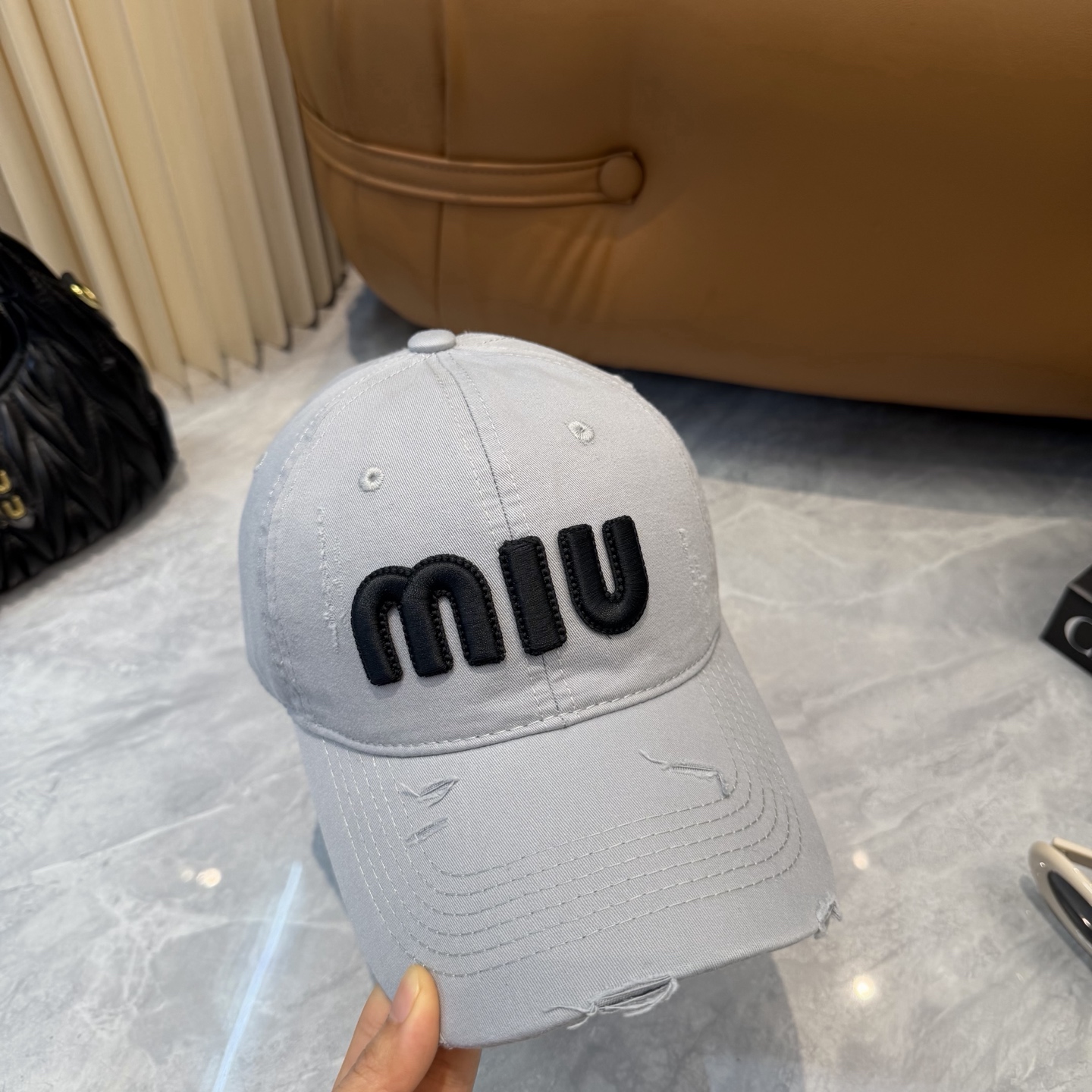 這款帽子是AAAAA 1:1 質量(非常棒). 使用了和原版一模一樣的材料. 商標部分也保持了和繆繆/Miu Miu一樣. 圖片拍攝是實物帽子拍攝, 您所收到的實物保證和我們圖片一模一樣.