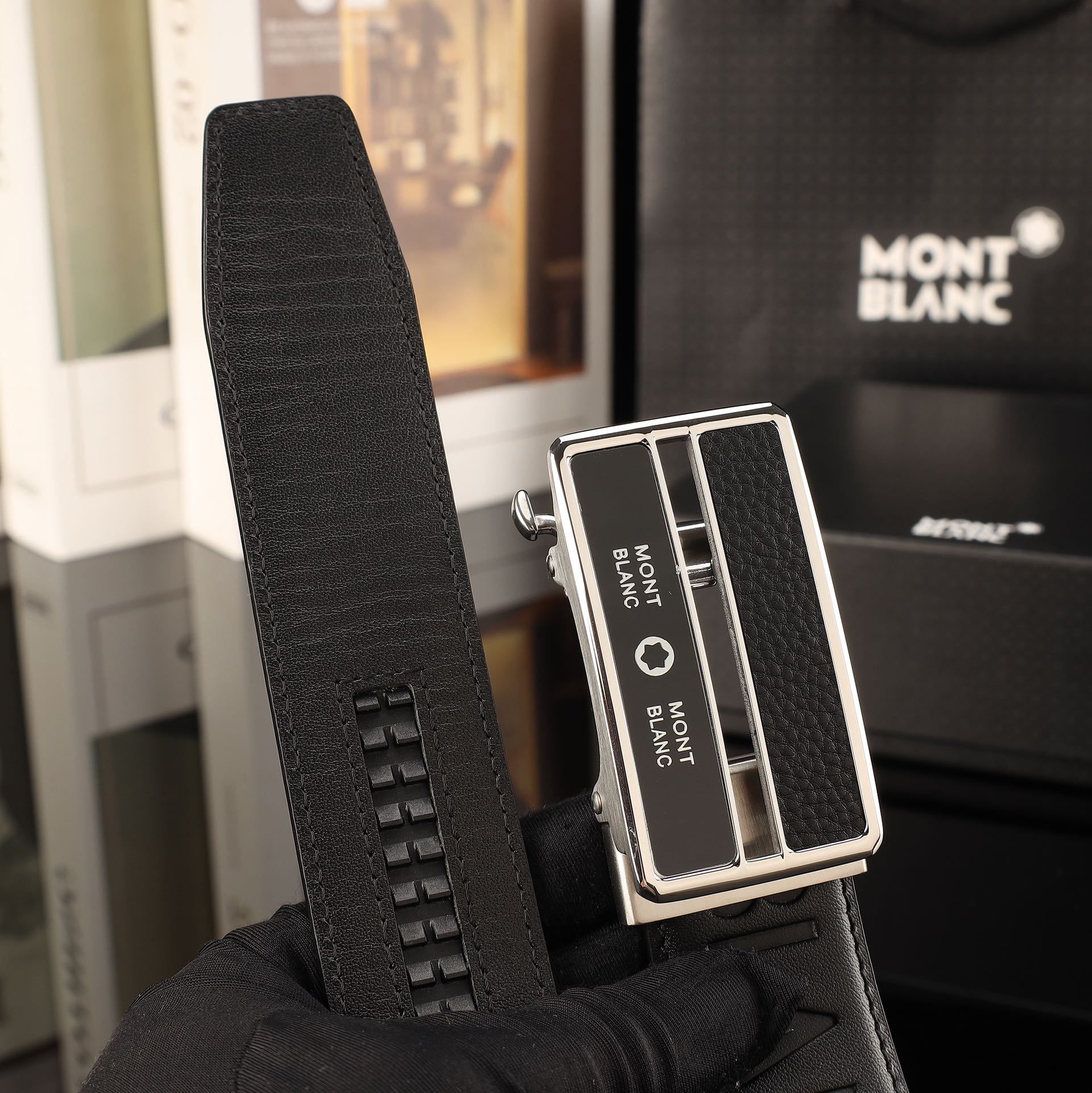 這款皮帶是AAAAA 1:1 質量(非常棒). 使用了和原版一模一樣的材料. 商標部分也保持了和萬寶龍/Montblanc一樣. 圖片拍攝是實物皮帶拍攝, 您所收到的實物保證和我們圖片一模一樣.