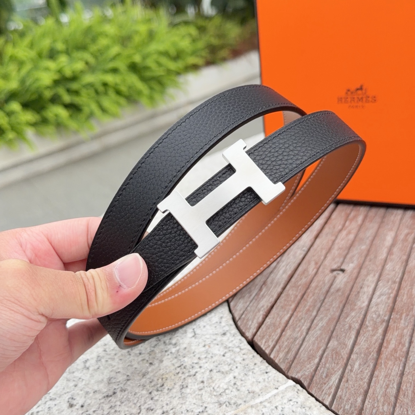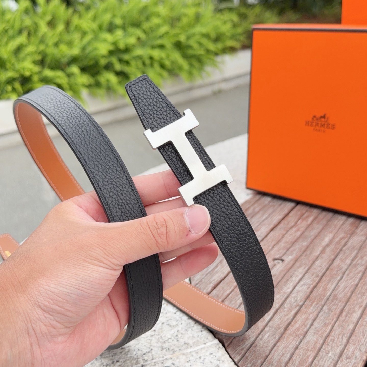 這款皮帶是AAAAA 1:1 質量(非常棒). 使用了和原版一模一樣的材料. 商標部分也保持了和愛馬仕/Hermes一樣. 圖片拍攝是實物皮帶拍攝, 您所收到的實物保證和我們圖片一模一樣.