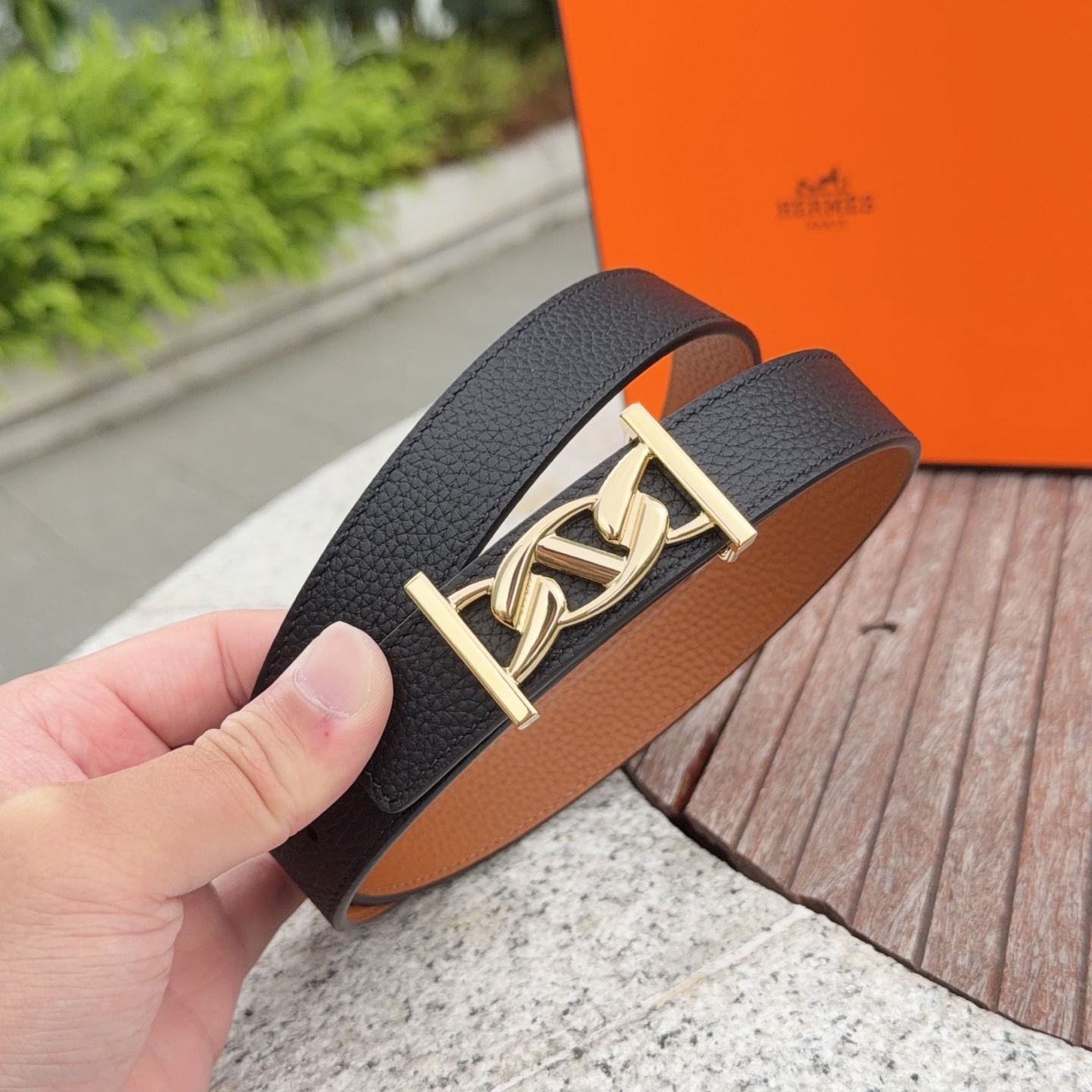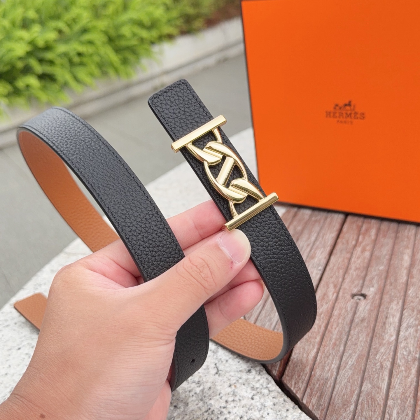 這款皮帶是AAAAA 1:1 質量(非常棒). 使用了和原版一模一樣的材料. 商標部分也保持了和愛馬仕/Hermes一樣. 圖片拍攝是實物皮帶拍攝, 您所收到的實物保證和我們圖片一模一樣.