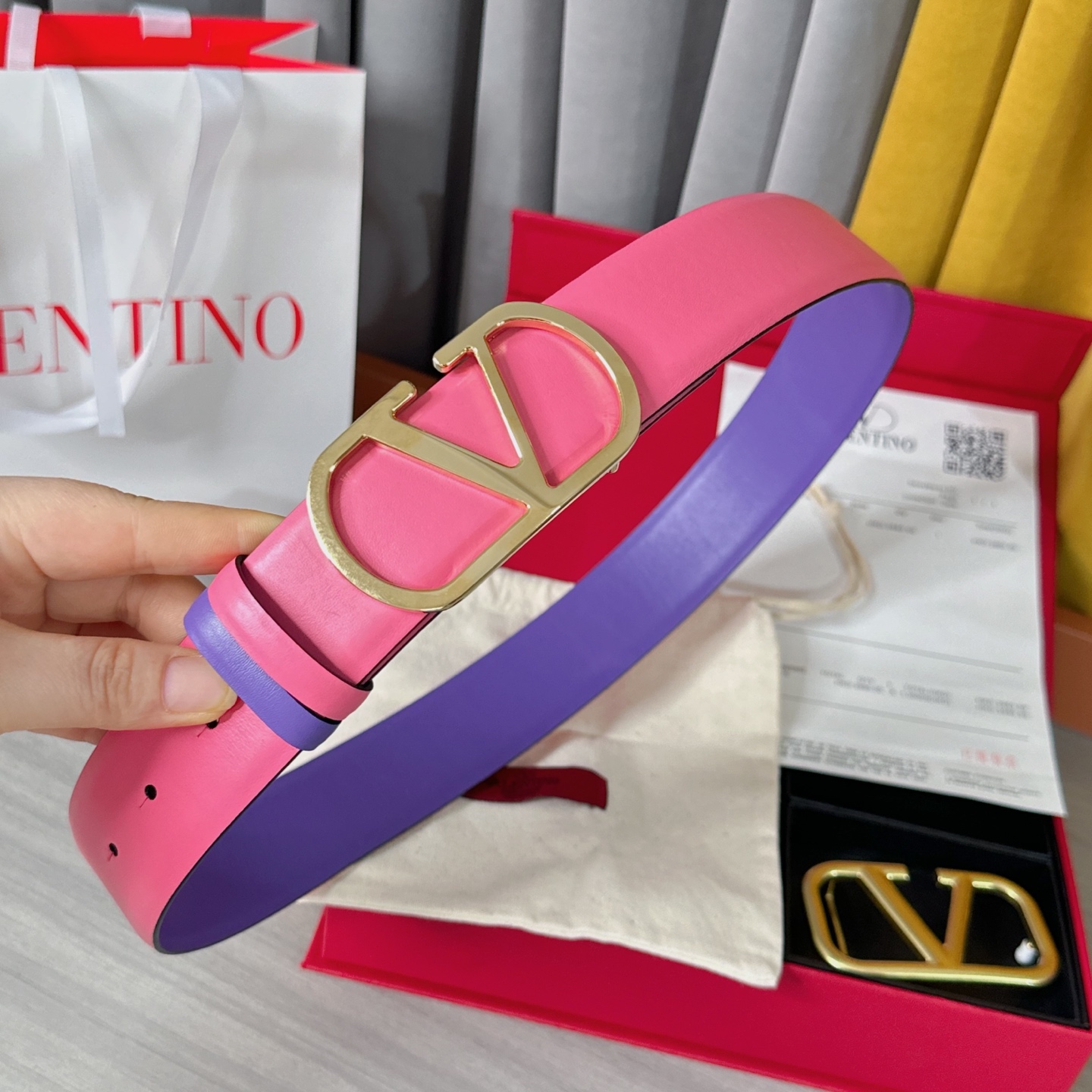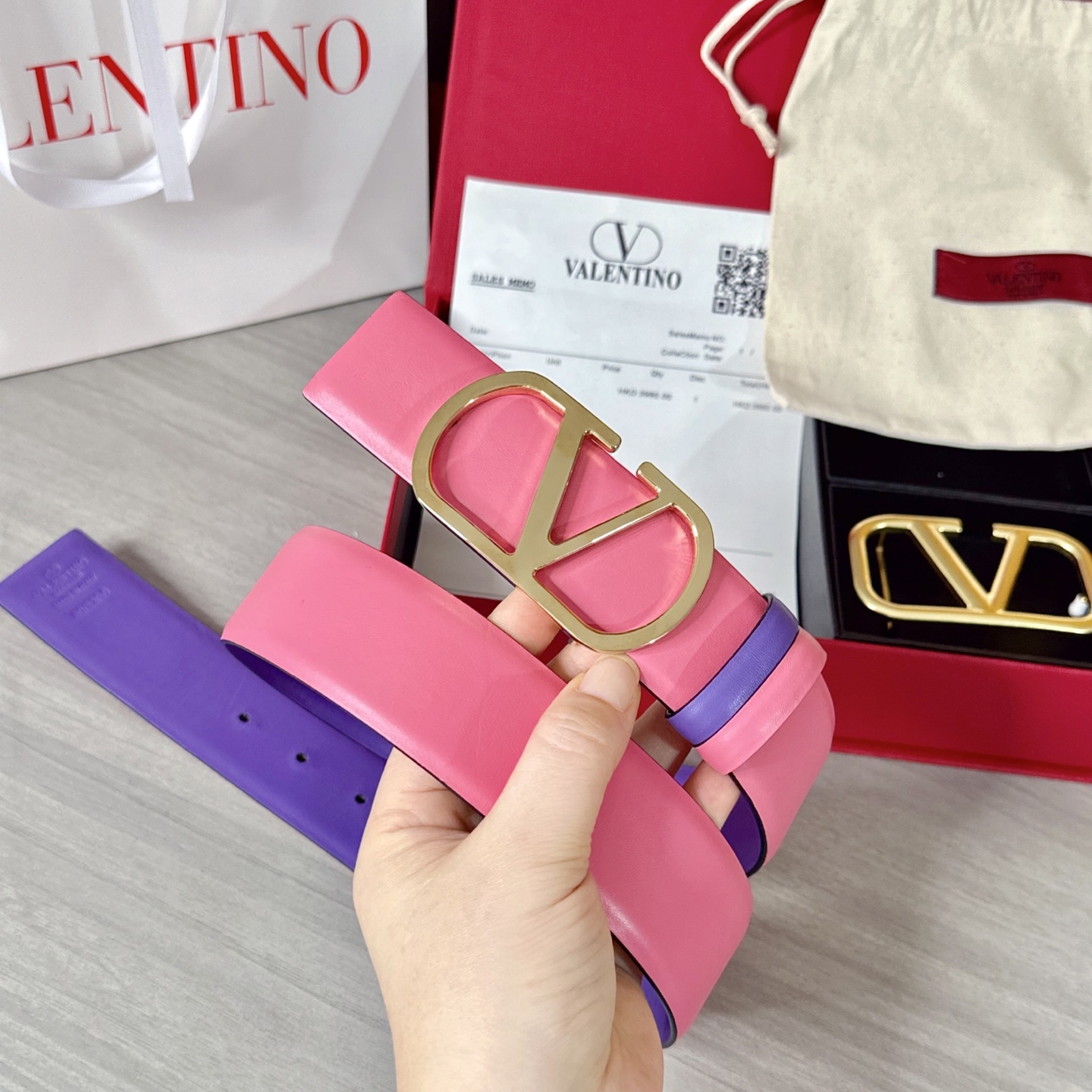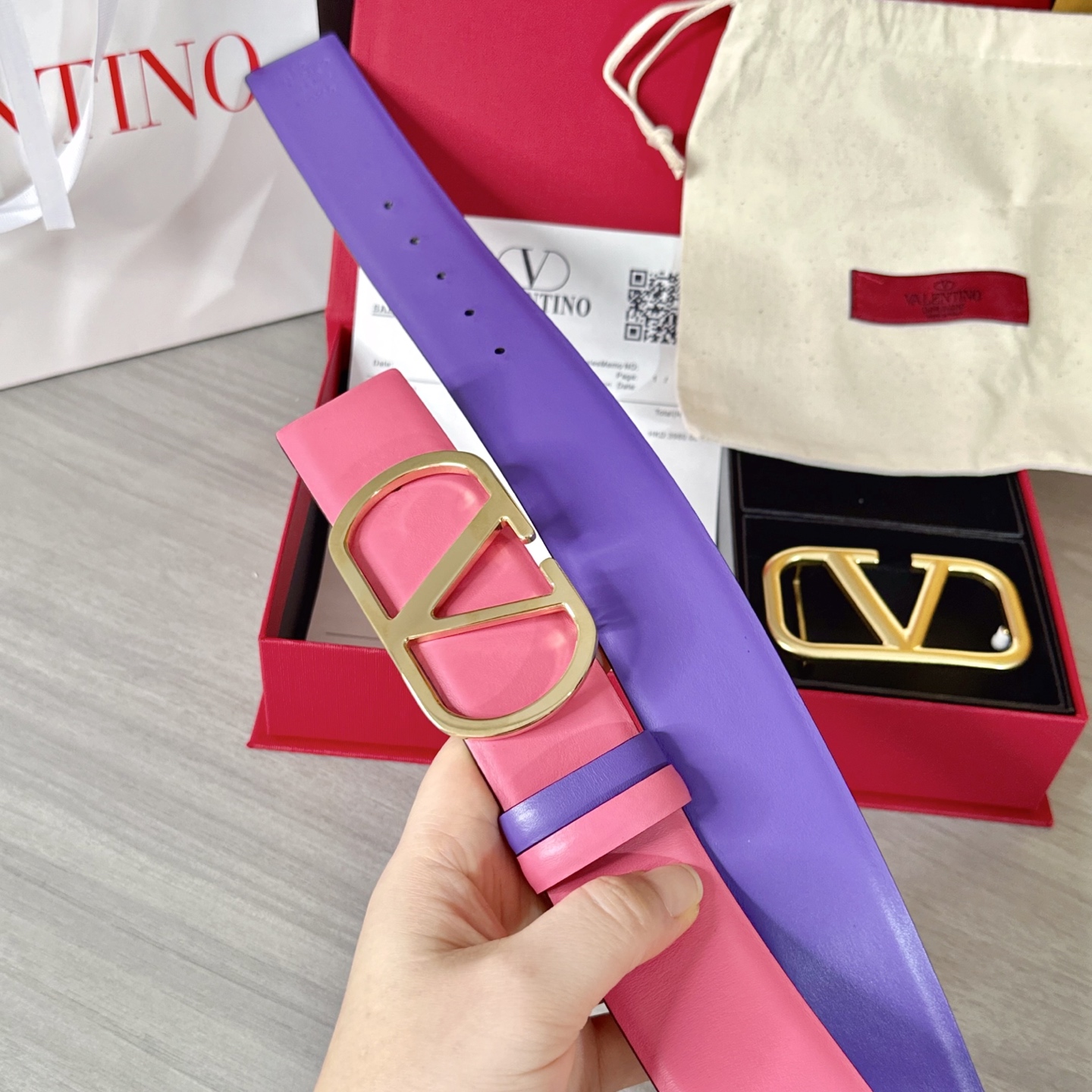 這款皮帶是AAAAA 1:1 質量(非常棒). 使用了和原版一模一樣的材料. 商標部分也保持了和瓦倫蒂諾/Valentino一樣. 圖片拍攝是實物皮帶拍攝, 您所收到的實物保證和我們圖片一模一樣.