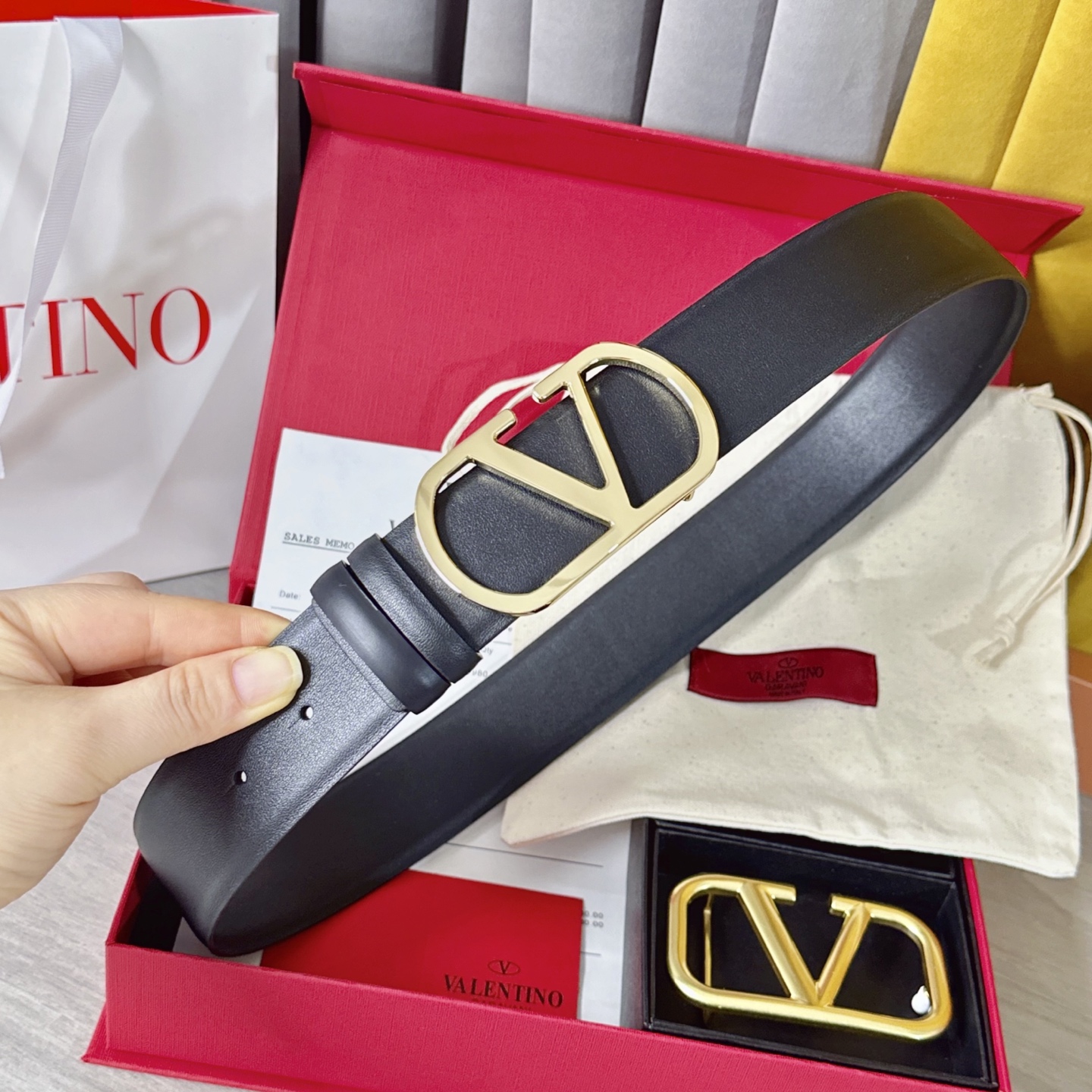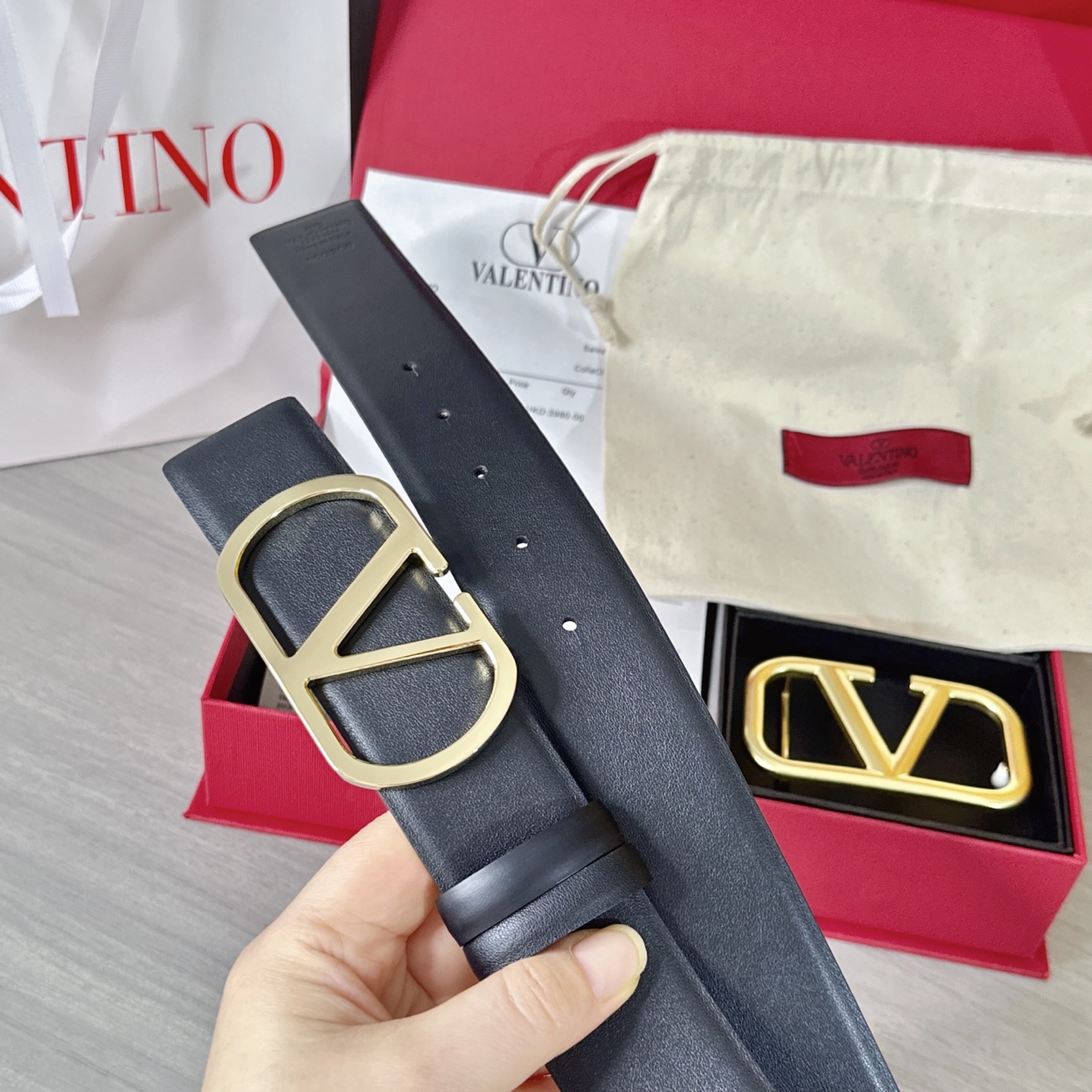 這款皮帶是AAAAA 1:1 質量(非常棒). 使用了和原版一模一樣的材料. 商標部分也保持了和瓦倫蒂諾/Valentino一樣. 圖片拍攝是實物皮帶拍攝, 您所收到的實物保證和我們圖片一模一樣.